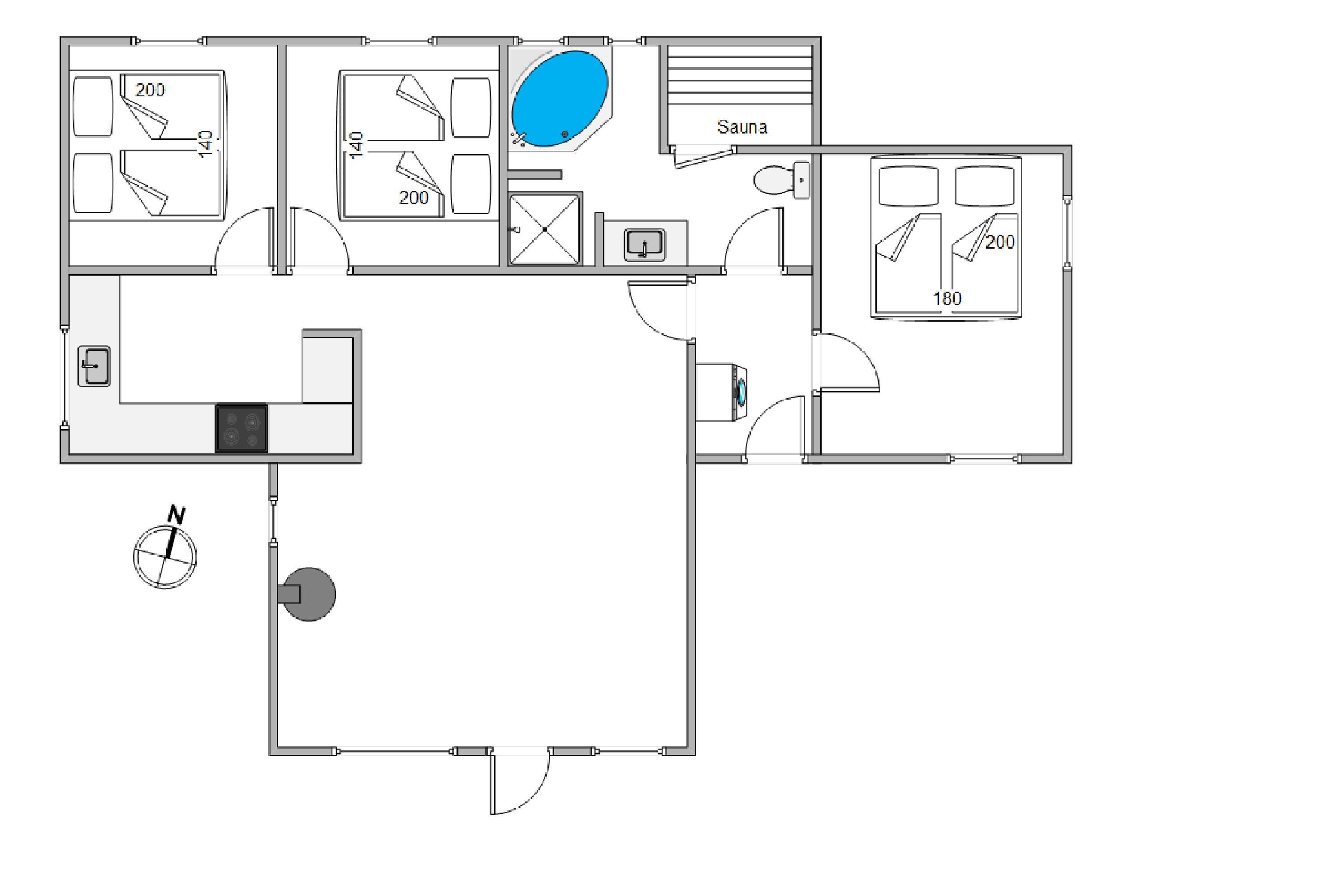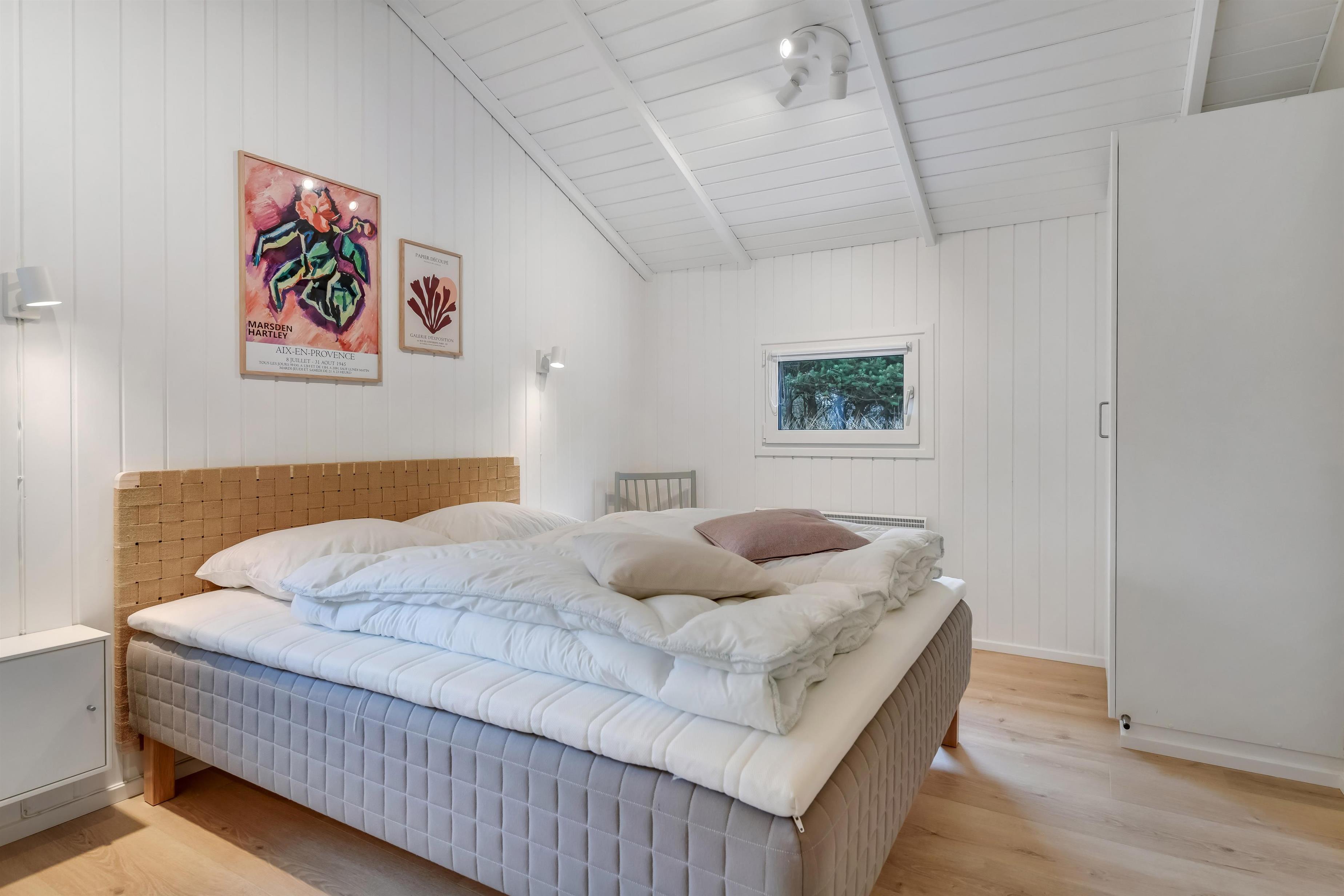 Sommerhuset rummer plads til op til 6 personer, der kan fordele sig på de 3 gode soveværelser, der alle er indrettet med en dobbeltseng hver. Derudover er der 1 badeværelse i sommerhuset, som endda er udstyret med gulvvarme, så I ikke fryser tæerne fra morgenstunden. Den kombinerede vaskemaskine/tørretumbler står også til jeres rådighed.