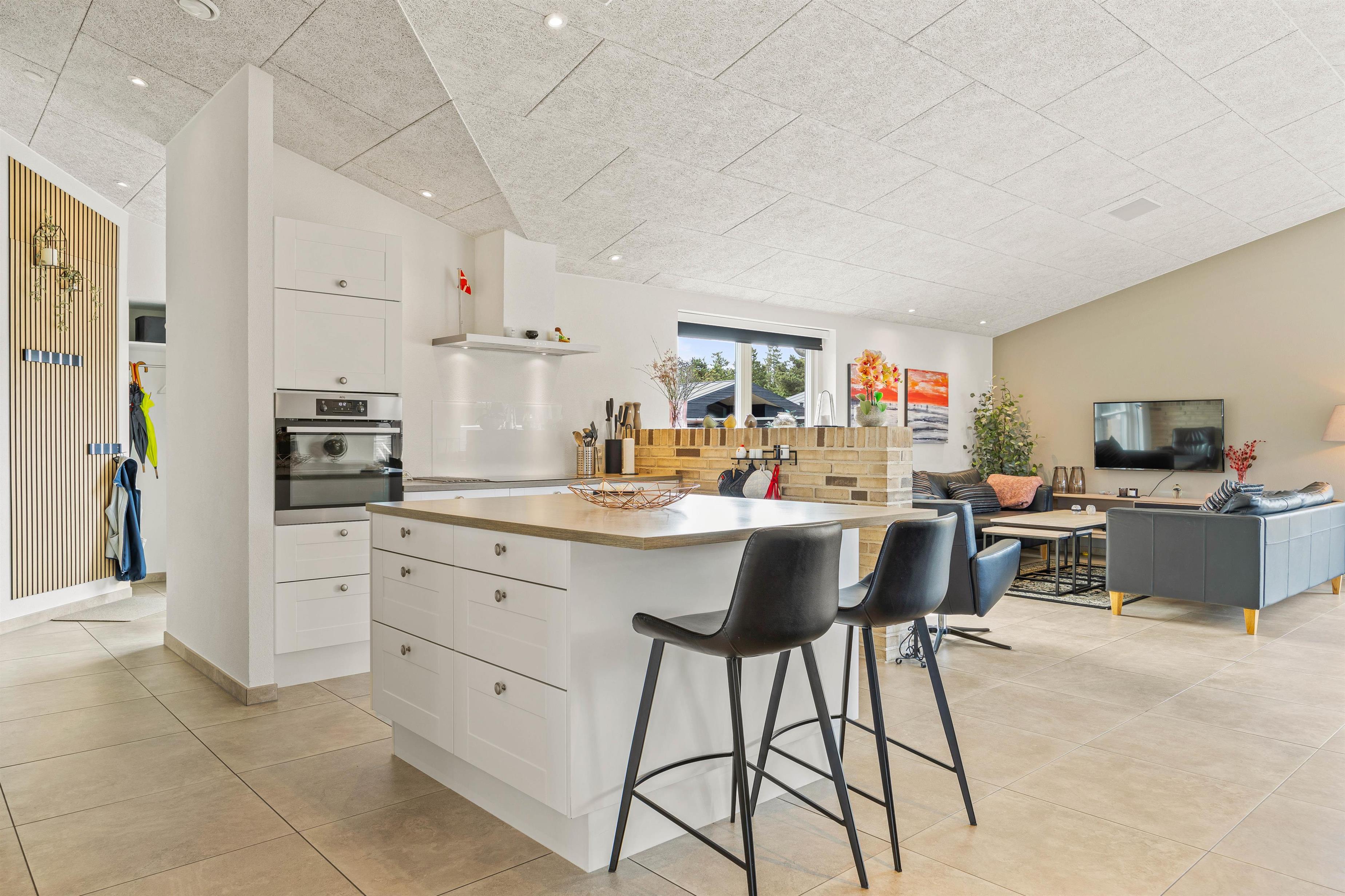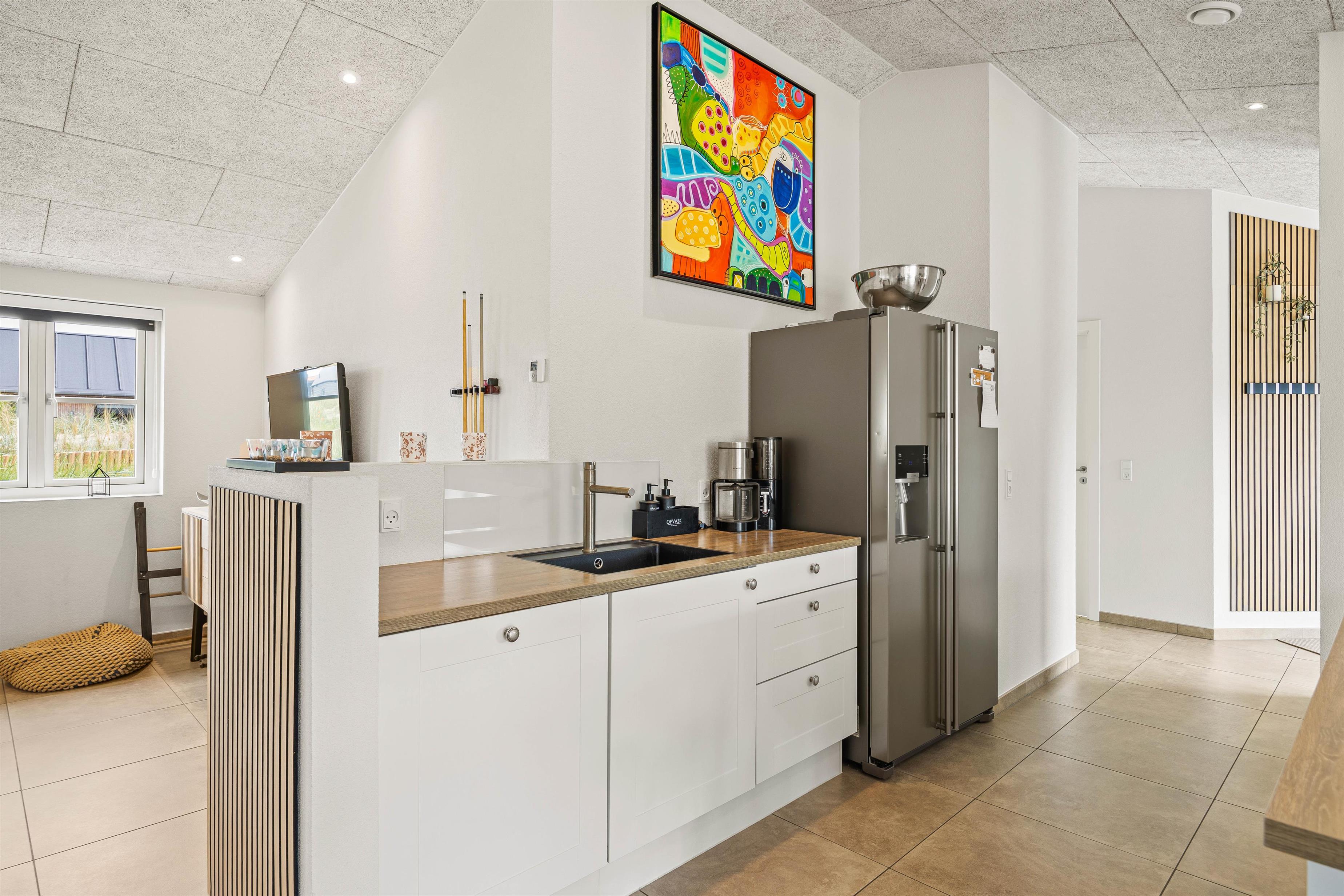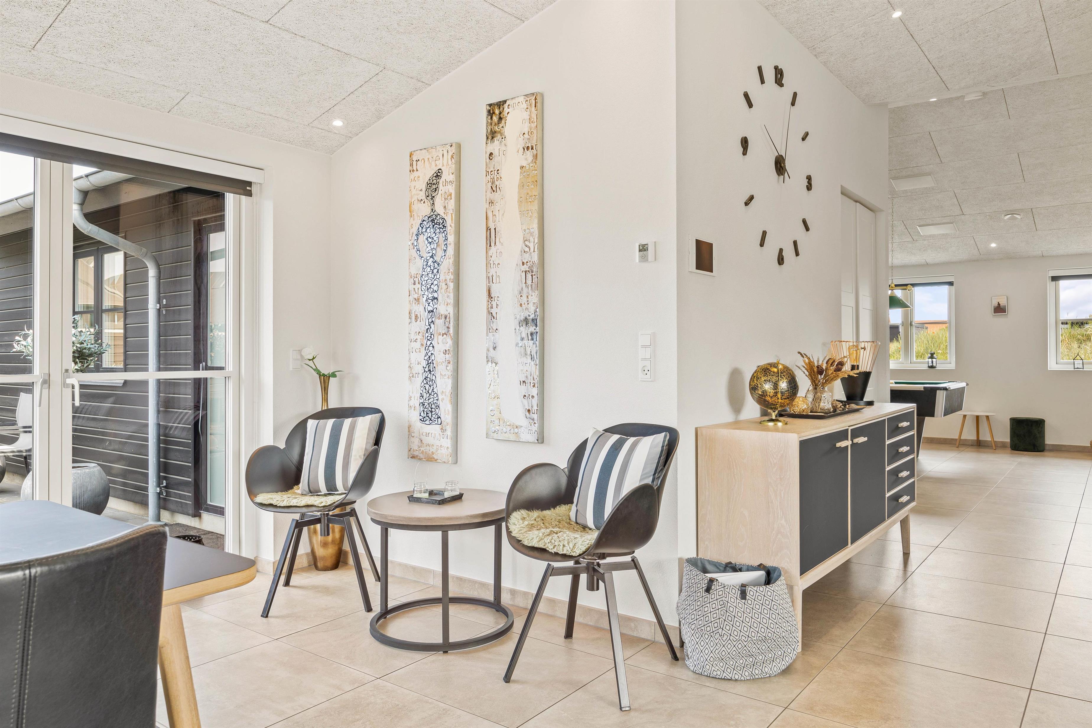 Det nyligt opførte aktivitetshus i et nybygget område i Blåvand rummer plads til 8 personer og er et helt ideelt valg til en storslået familieferie. Der er god plads til alle i de rummelige og åbne omgivelser, som er stilfuldt indrettet med lyse farver og højt til loftet.