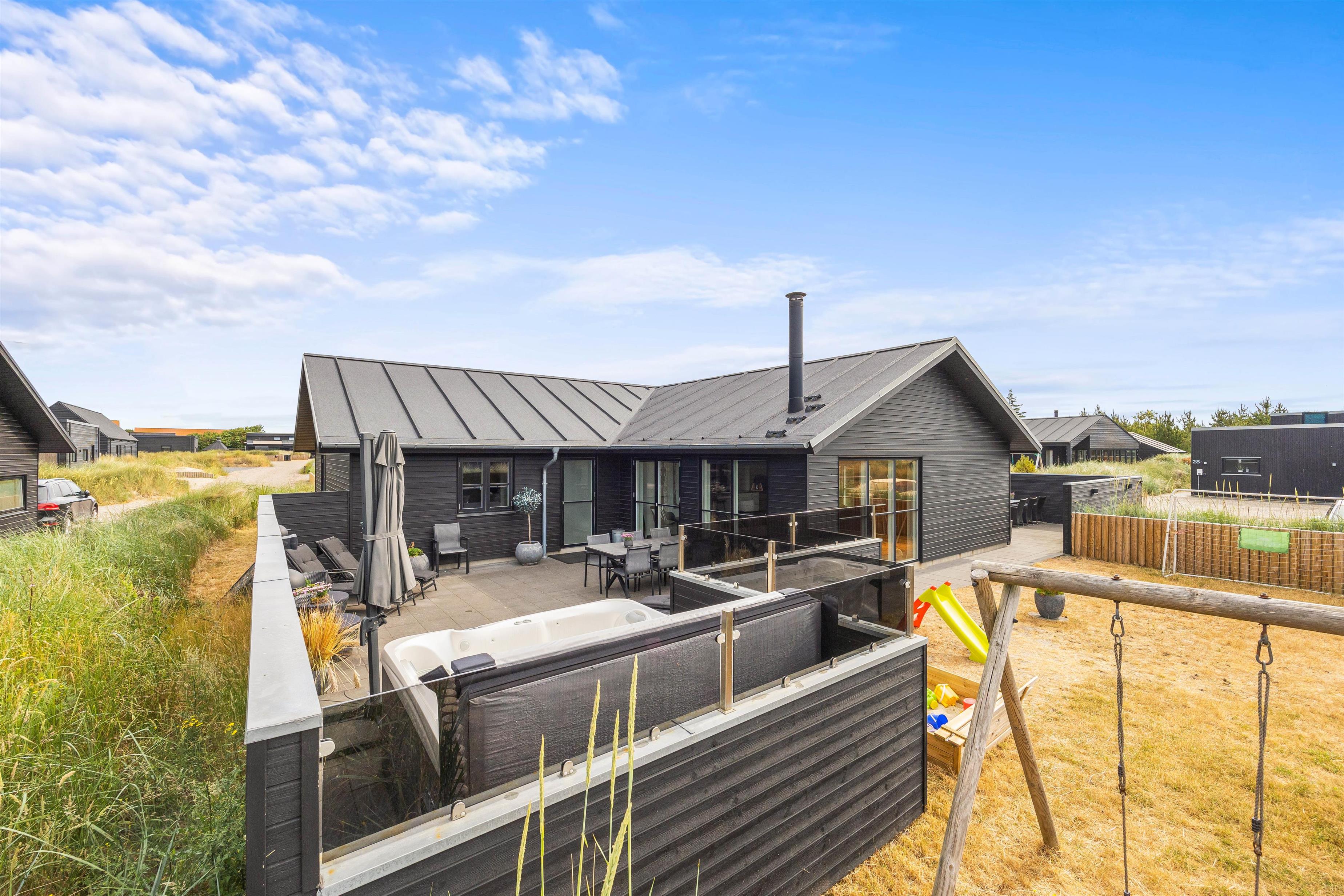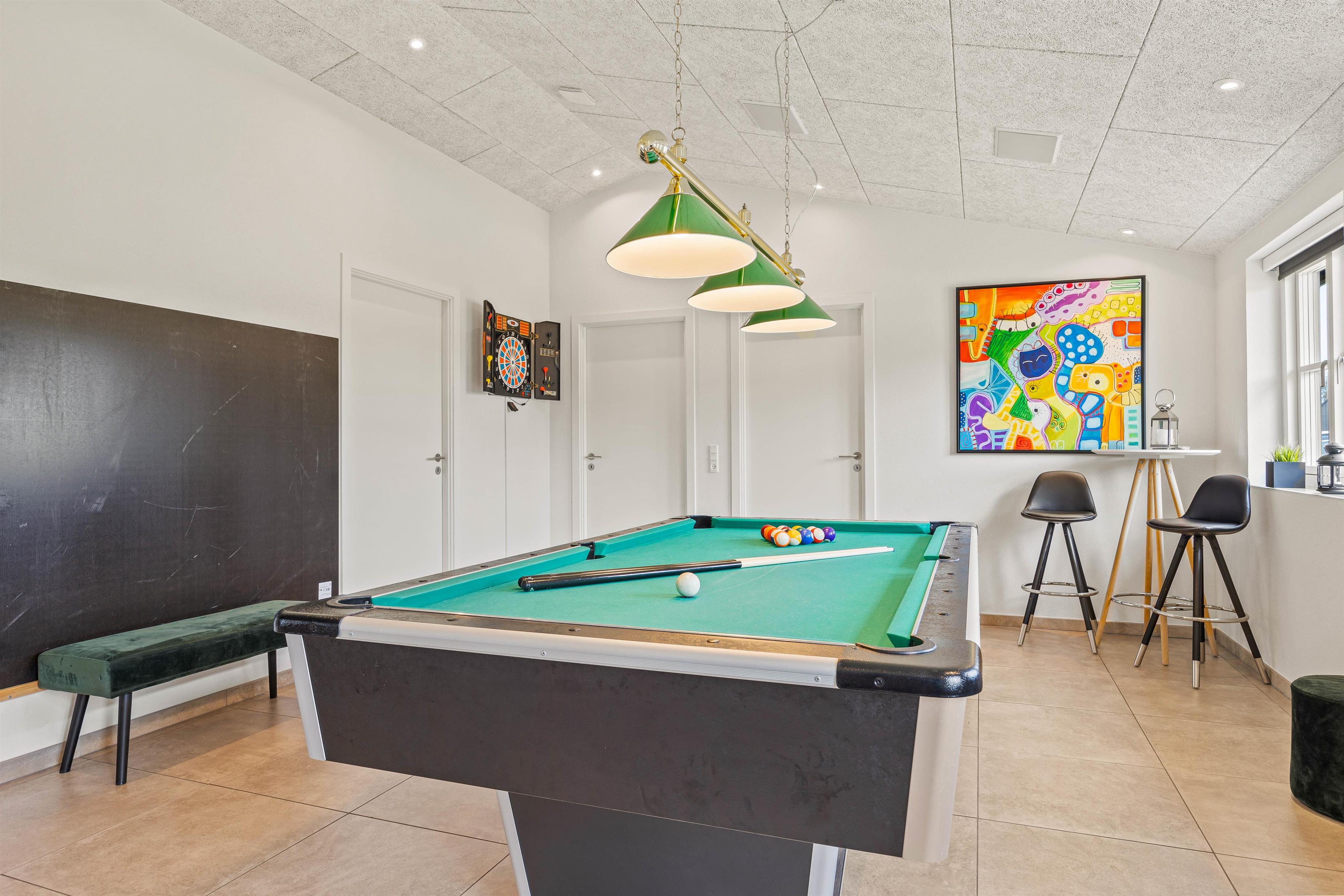 Er I på udkig efter et sommerhus til den næste familieferie? Og vil I gerne holde en ferie lidt ud over det sædvanlige? Så er dette moderne aktivitetshus fra 2018 et oplagt valg! Her er plads til hele familien, og huset er indrettet med både sauna, aktivitetsrum med billard, bordtennis og dart og en lukket terrasse med udendørs spabad.