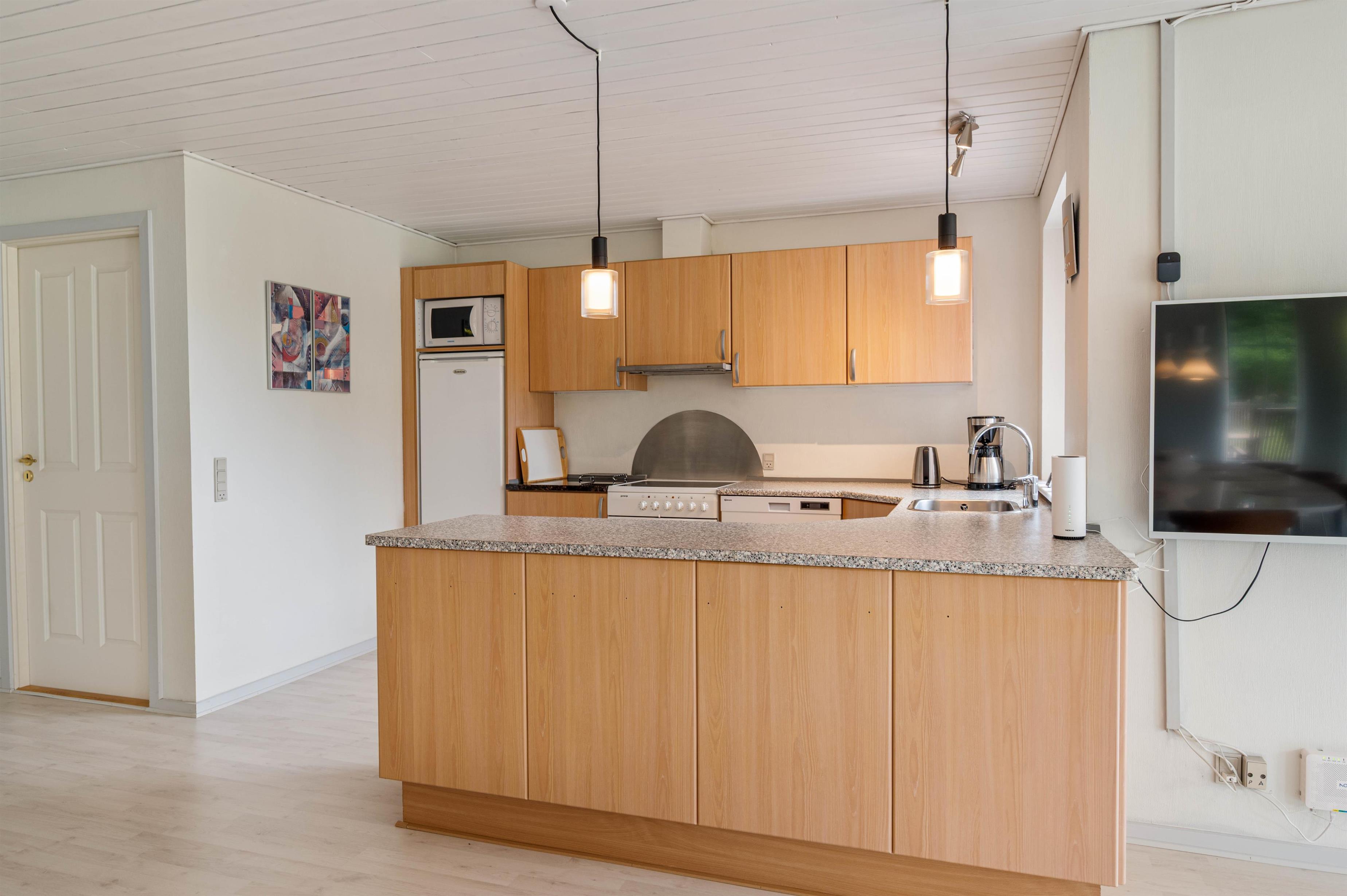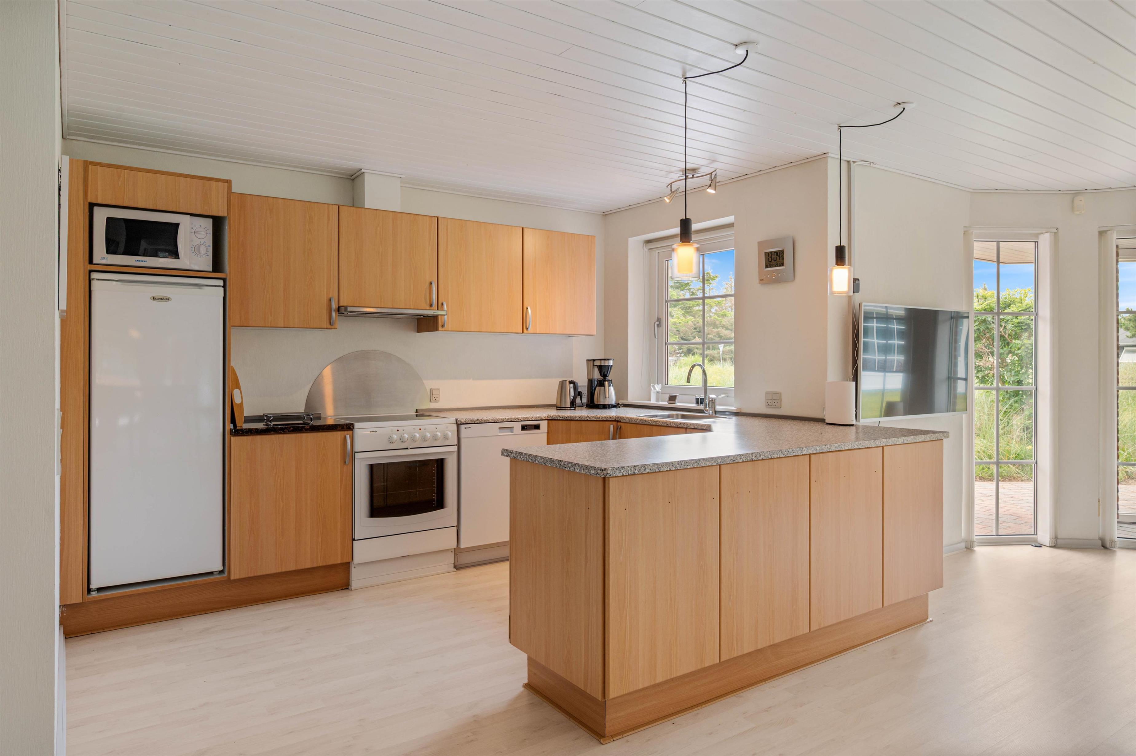 Køkkenet er veludstyret, hvilket gør det perfekt til selvforsynende gæster, og huset byder generelt på godt udstyr, inklusive en opvaskemaskine og separat 120-liters fryser, der gør feriedagene lettere, så I kan nyde livet.