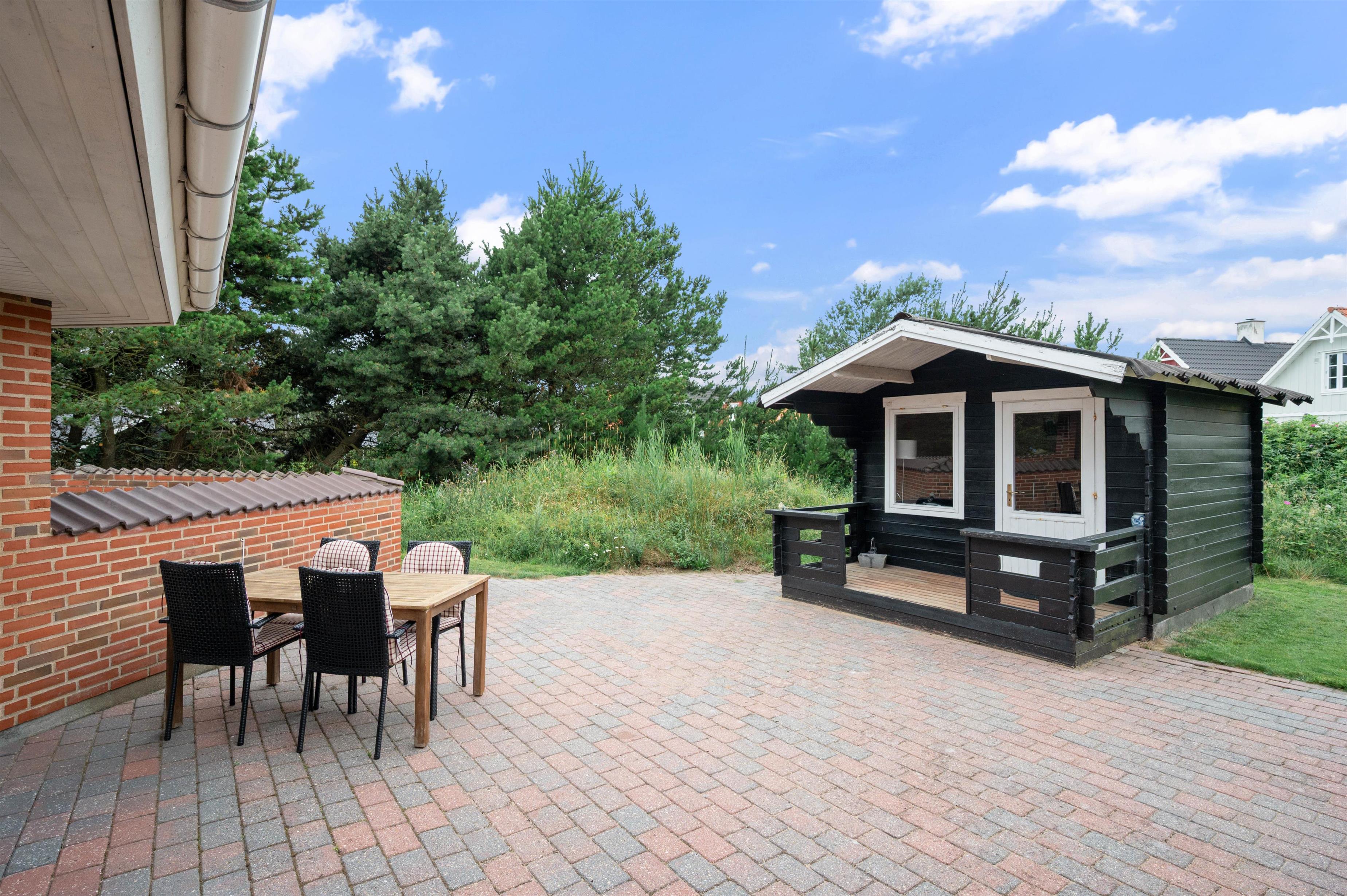 Sommerhuset er bygget i 2003 og forener moderne faciliteter med en hyggelig atmosfære.