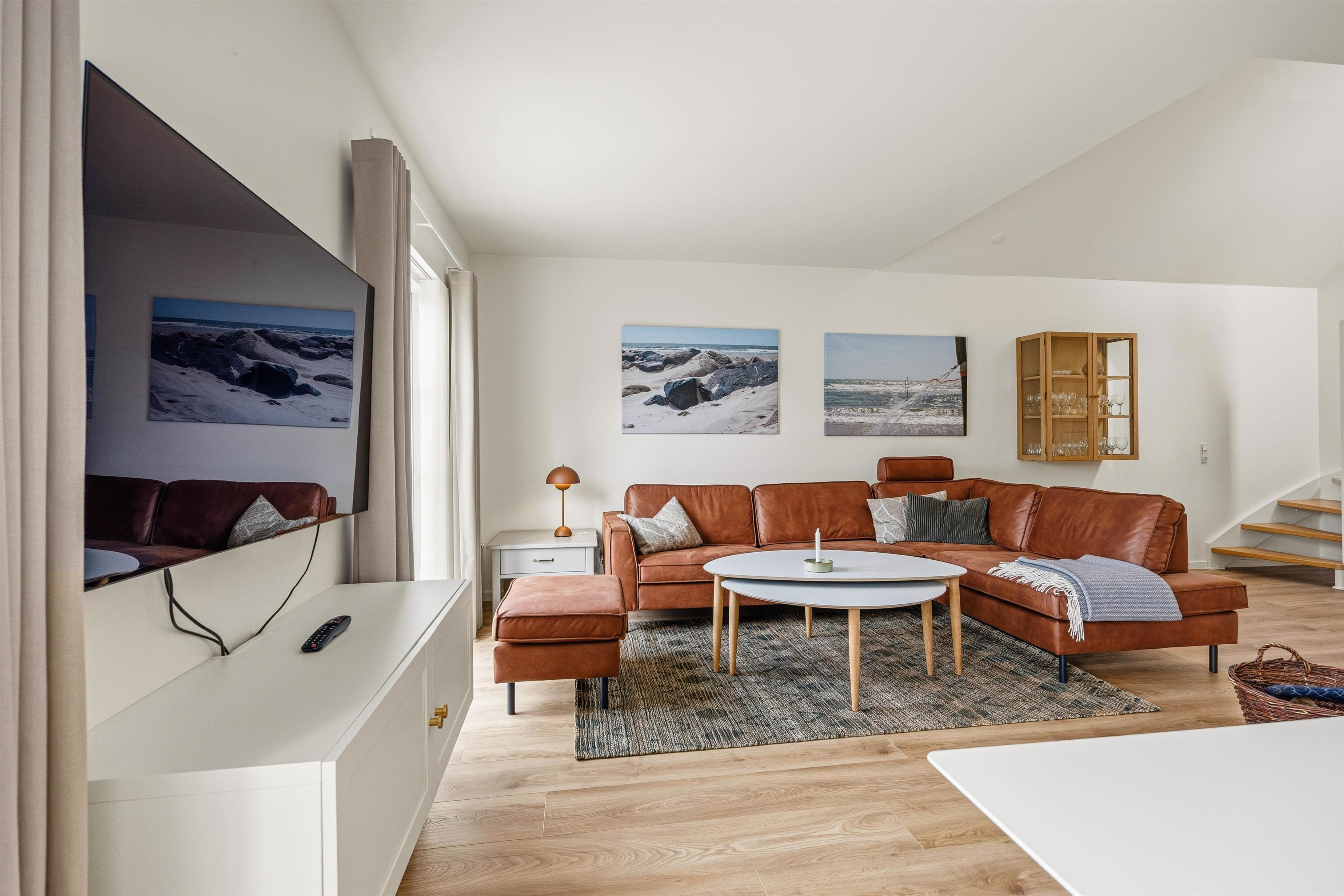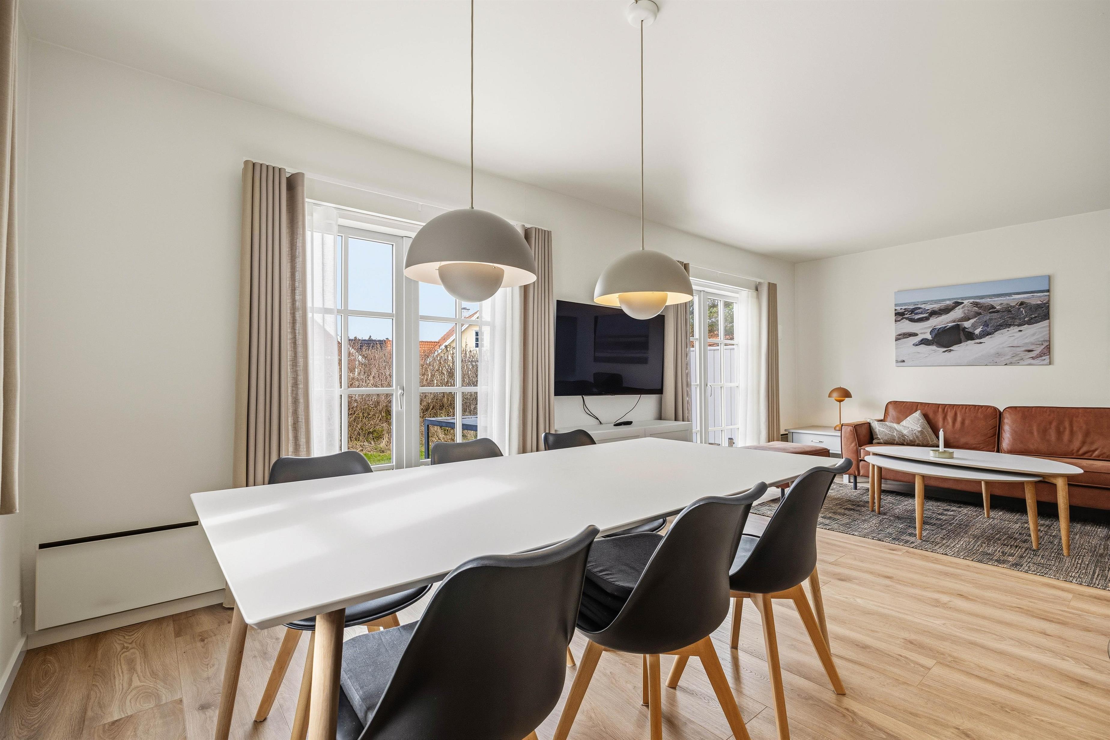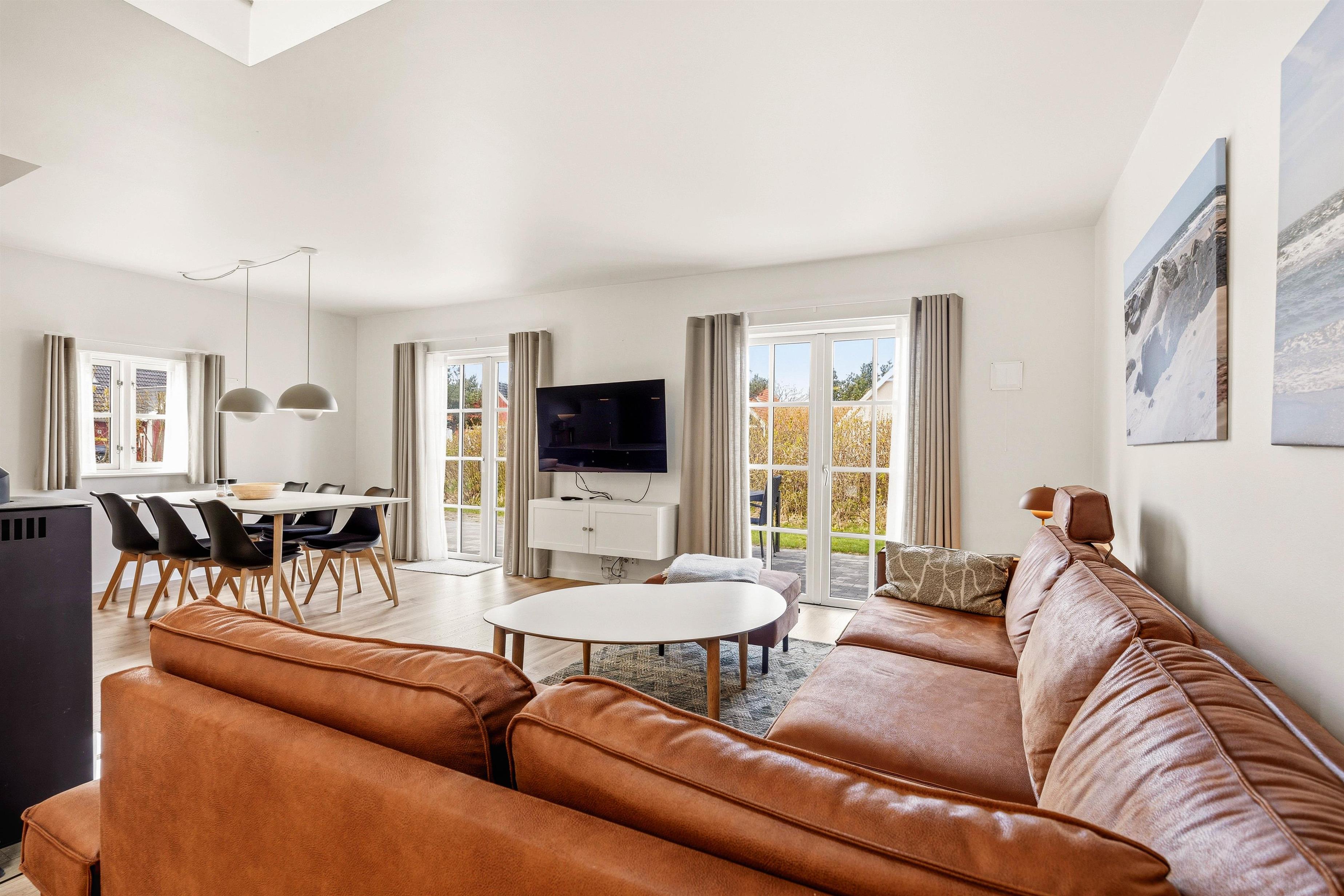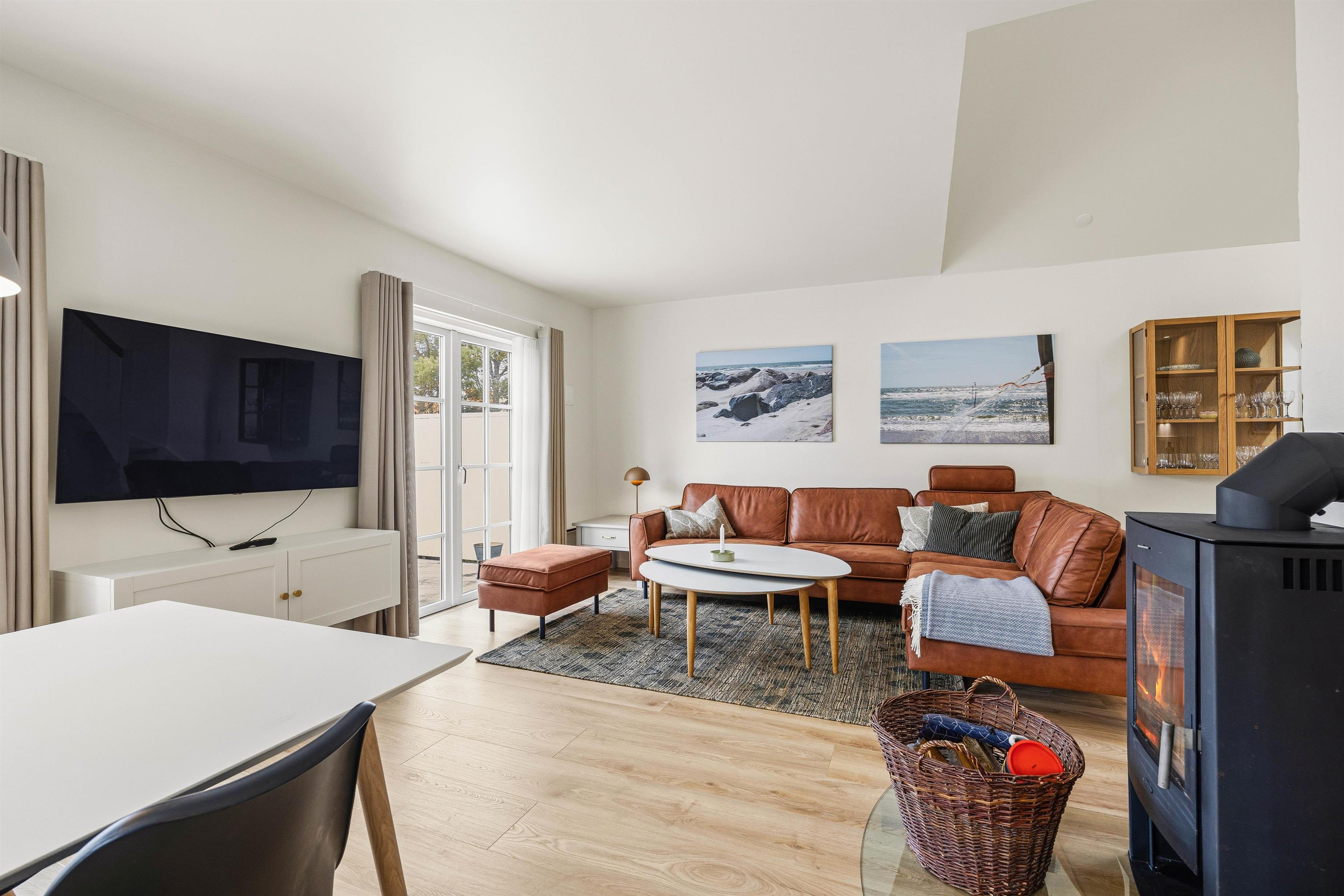 Efter spisningen kan I hygge jer i den store hjørnesofa foran fjernsynet med en god film eller et spil – eller måske med planlægning af de næste dages aktiviteter i sommerlandet? På kolde dage kan I tænde op i brændeovnen til hygge og god stemning og læse en god bog, mens I nyder at have fri og koble fra.