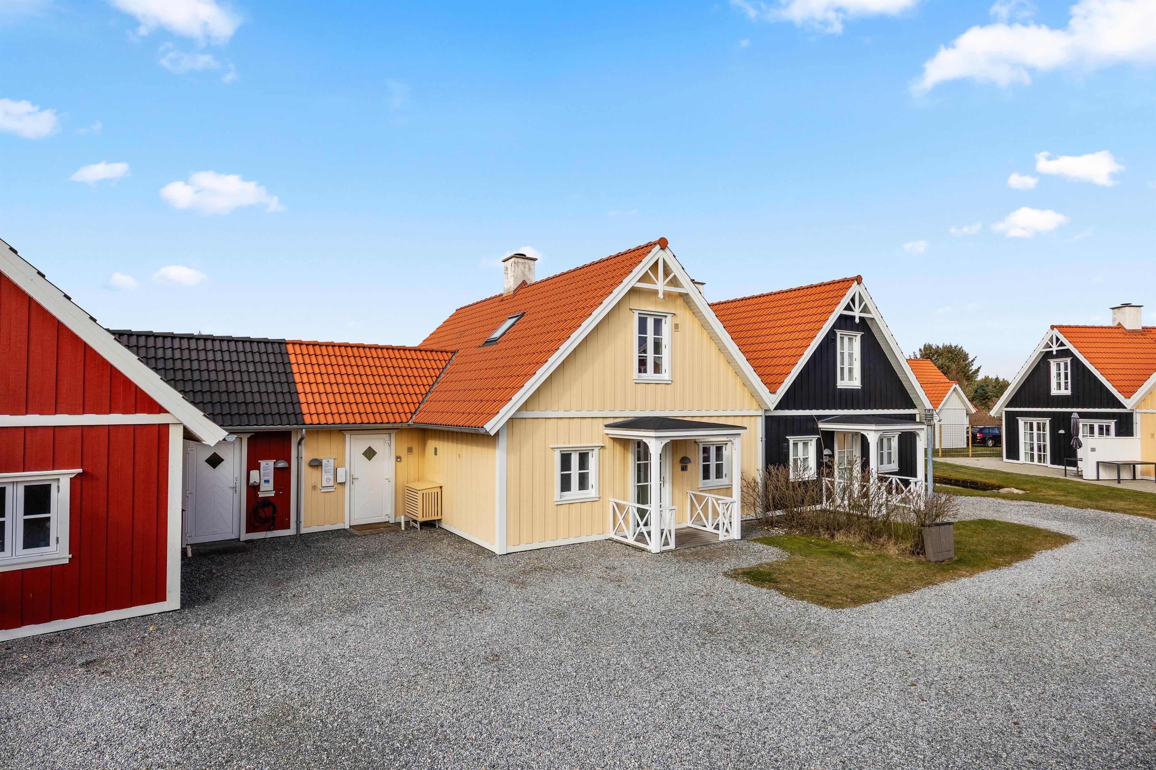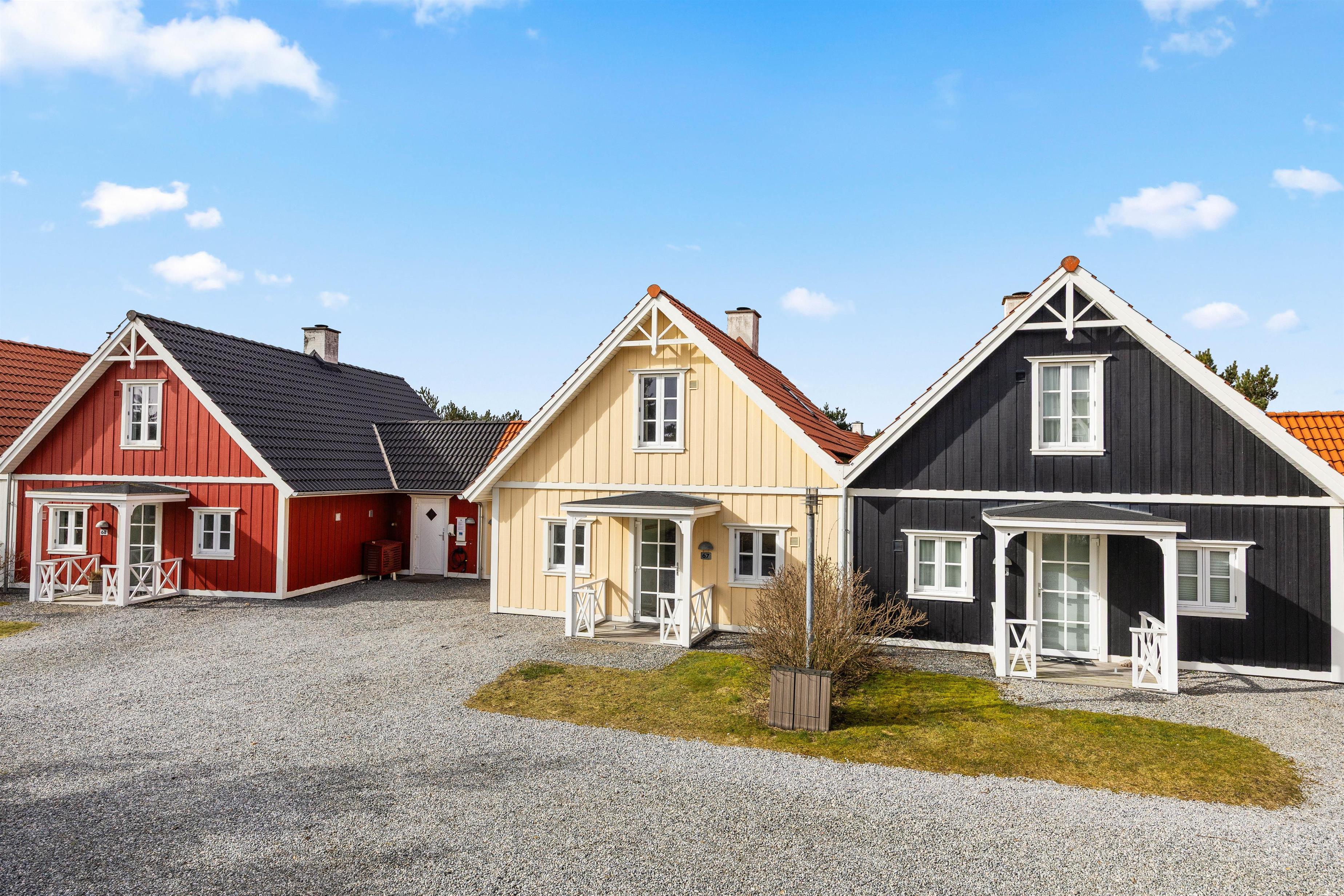 På en central, men rolig, adresse i livlige Blåvand finder I det hyggelige og smagfuldt indrettede sommerhus Horns Bjerge 3, 67, hvor en venneflok eller familie på 6 personer kan holde ferie og få ladet batterierne op. Husene her er bygget efter svensk inspiration og malet i forskellige, men efter hinanden nøje afstemte, flotte farver, og udenfor langs bebyggelsen slynger sig en lille bæk.