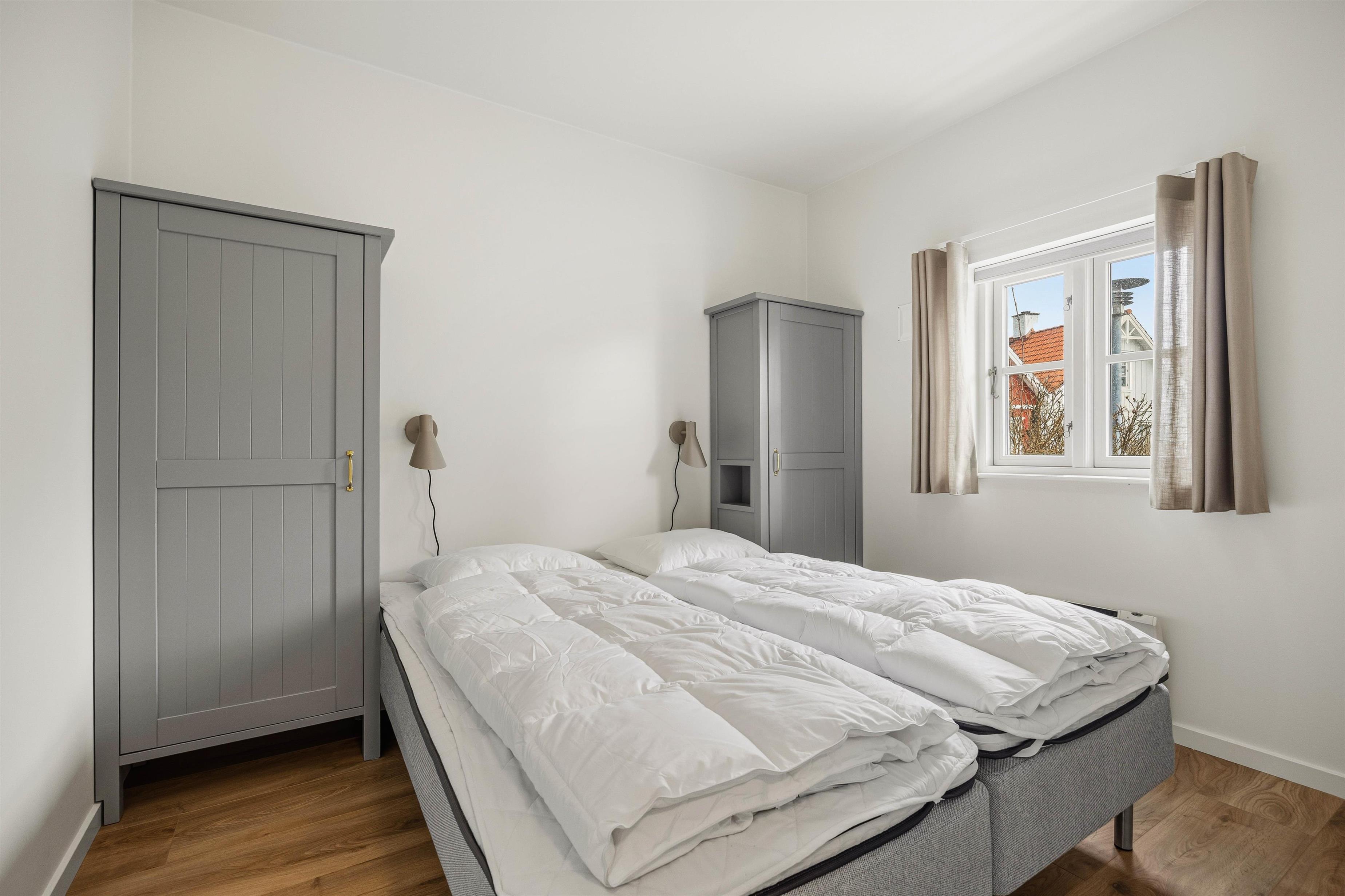 Ved dagens afslutning kan I finde ro og hvile i dobbeltsengene i de 3 enkelt, men smagfuldt indrettede soverum, hvoraf 2 ligger på 1. sal, som også rummer et fint gæstetoilet. Næste dag sørger gulvvarmen på badeværelserne for, at I ikke fryser om fødderne, når I skal friskes op til nye ferieoplevelser. Nyd på det store badeværelse også den gode plads i den ekstra store bruseniche og, måske efter en lang, god gåtur på den nærliggende strand, at blive varmet godt igennem i husets sauna.