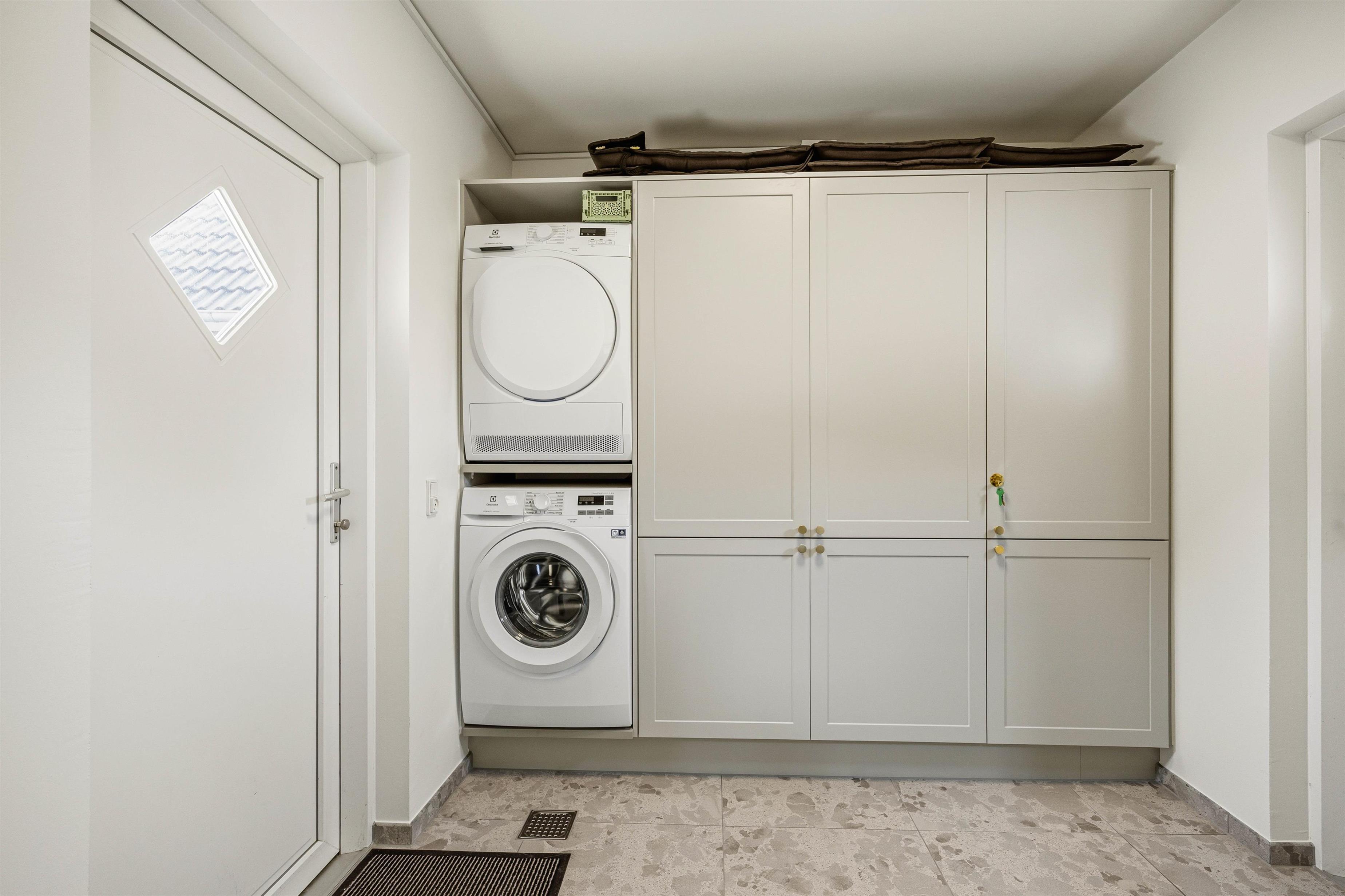 Varmepumpen sørger for et godt indeklima året rundt, og når feriegarderoben skal vaskes og tørres, står husets vaskemaskine og tørretumbler til rådighed – hvis I da ikke vælger at tørre tøjet i den friske, vestjyske vind.