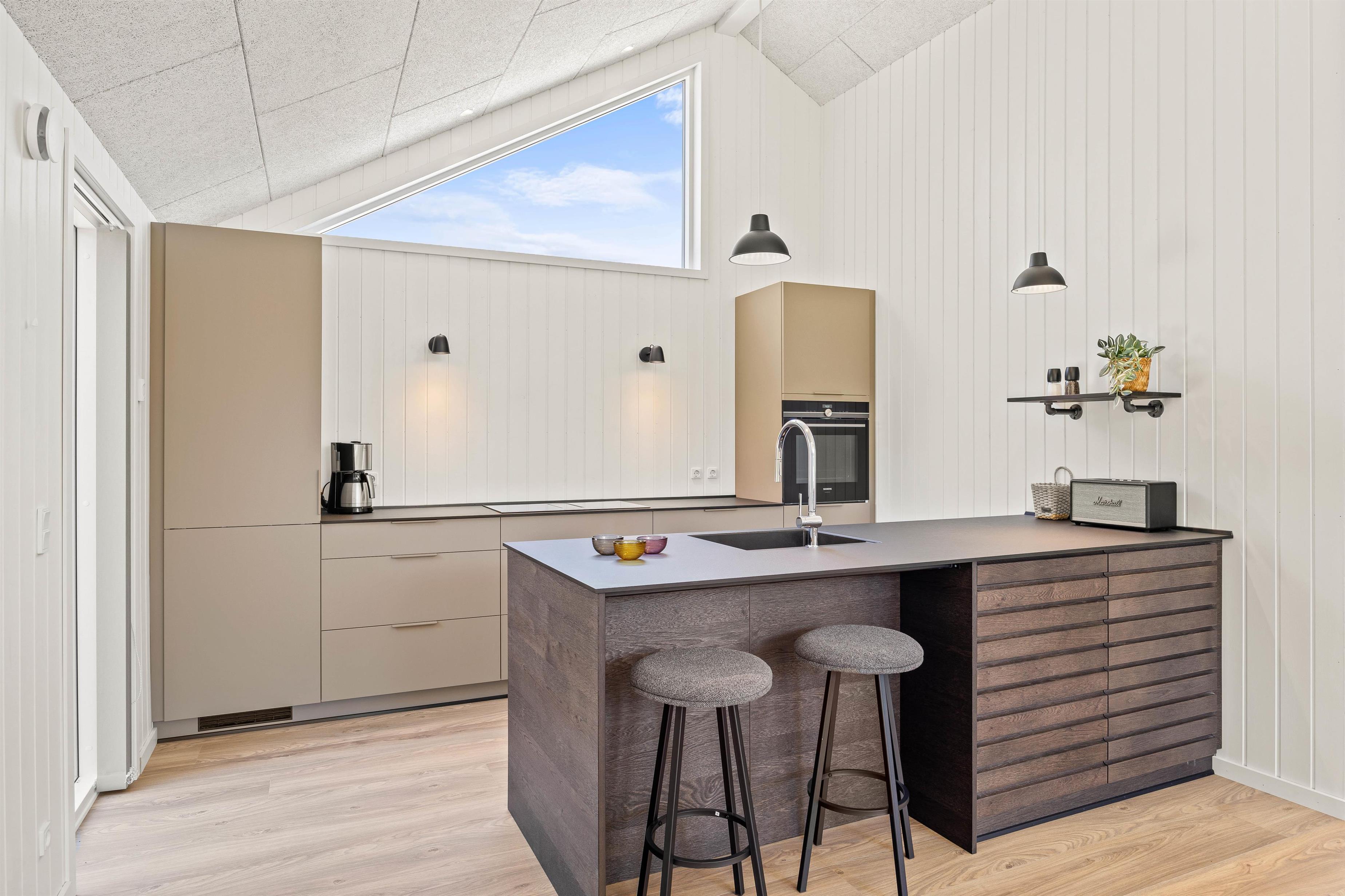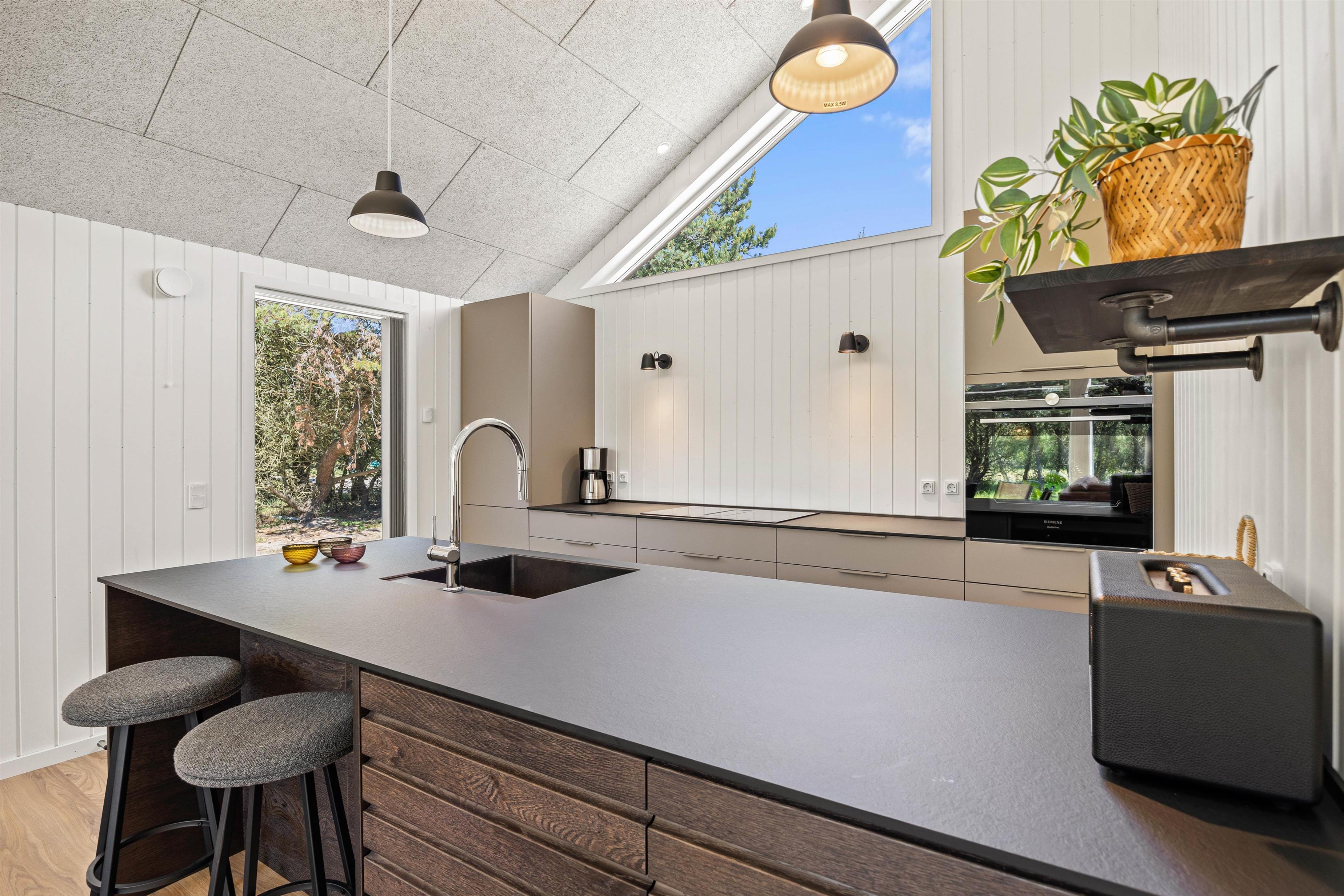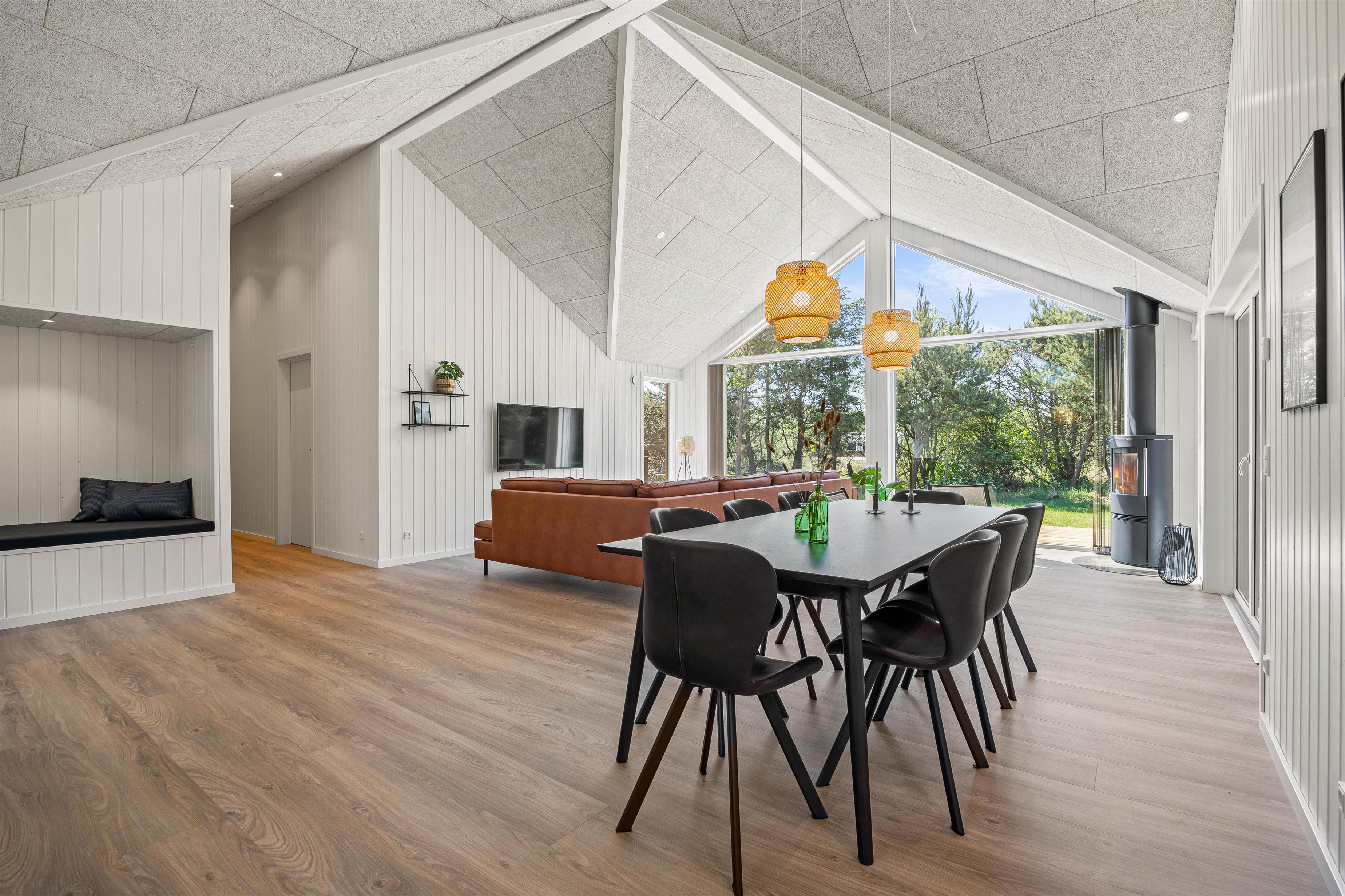 Ved indretningen af feriehuset blev der lagt stor vægt på kvalitet og komfort. De, der holder af nyt skandinavisk design, vil straks føle sig hjemme på Hedetoftvej 39. Her er der højt til loftet og gulv til loft vinduerne giver husets hjerte - det store køkken-alrum - en lys og luftig stemning. Gulvvarmen i opholdsrummet sikrer et behageligt rumklima.