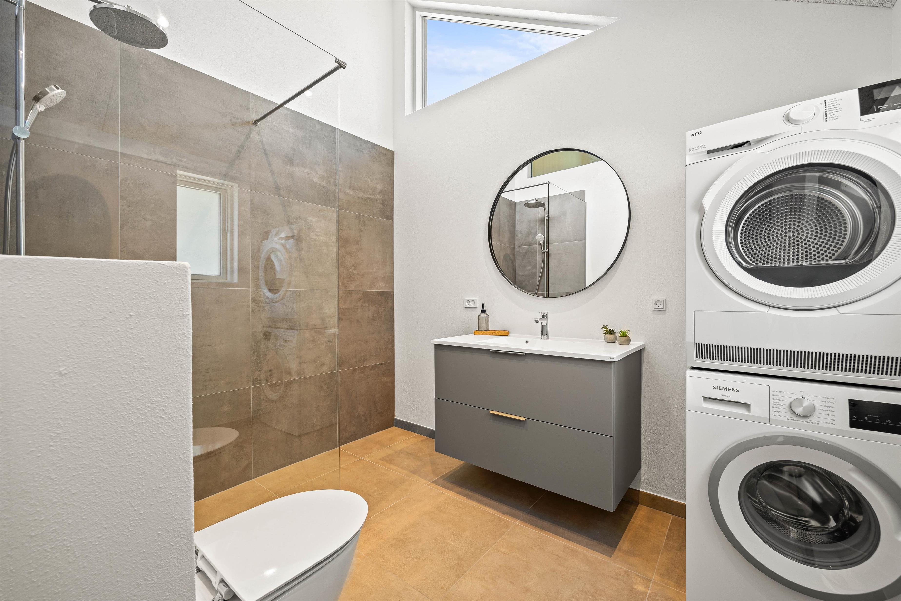 Feriehuset har selvfølgelig også praktiske hjælpere som vaskemaskine og tørretumbler. En Varmepumpe sørger for strømsparende varme i huset, og jer der er ejer af en el-bil, kan glæde sig over en ladestation på huset.
