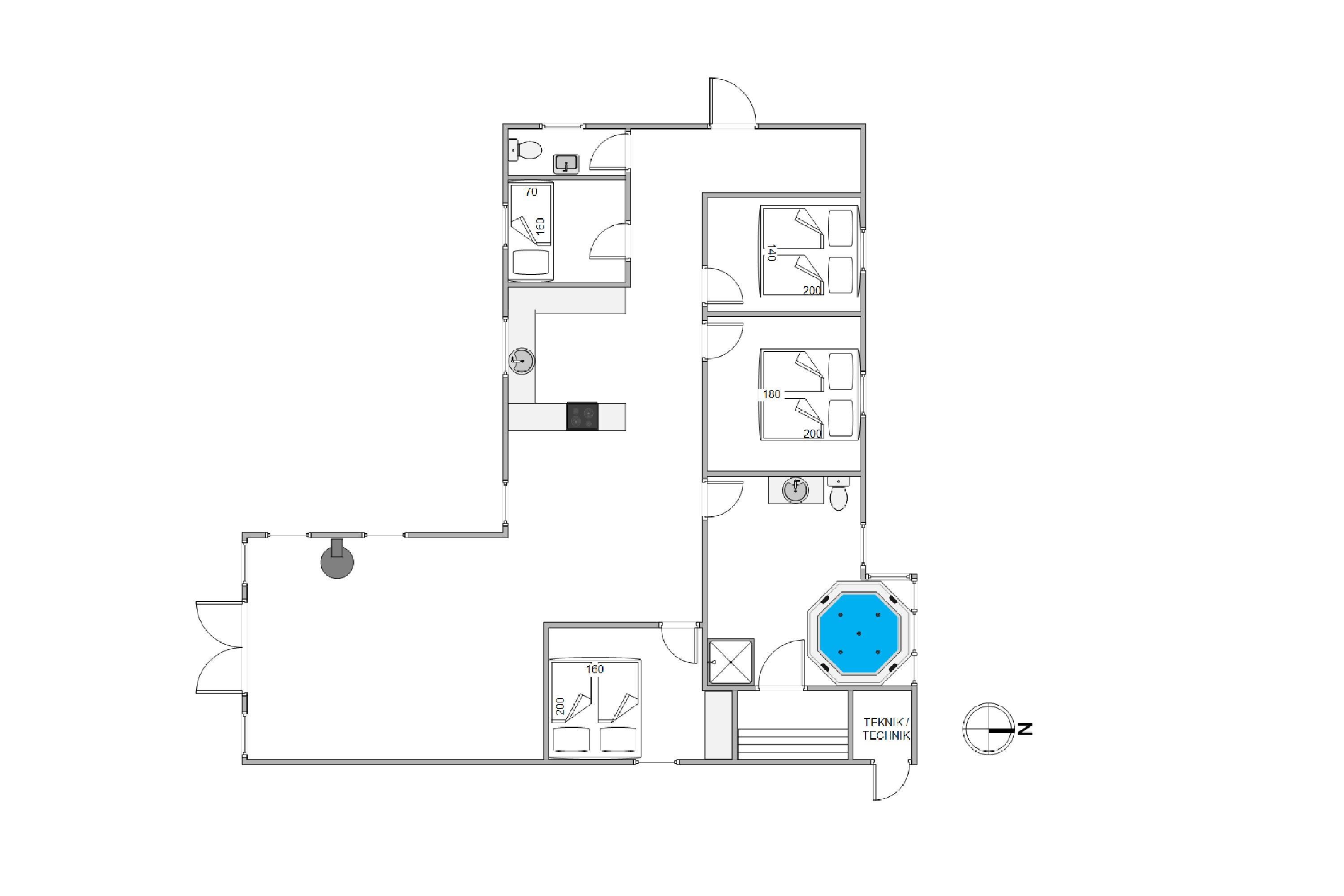 Det indendørs højdepunkt finder I på badeværelset, hvor der står et lækkert spabad klar til jer. Her kan I forkæle jer selv med masser af afslapning på ferien. Som om det ikke var nok, så er der fra badeværelset også adgang til en skøn sauna, der fuldender wellnessoplevelsen.