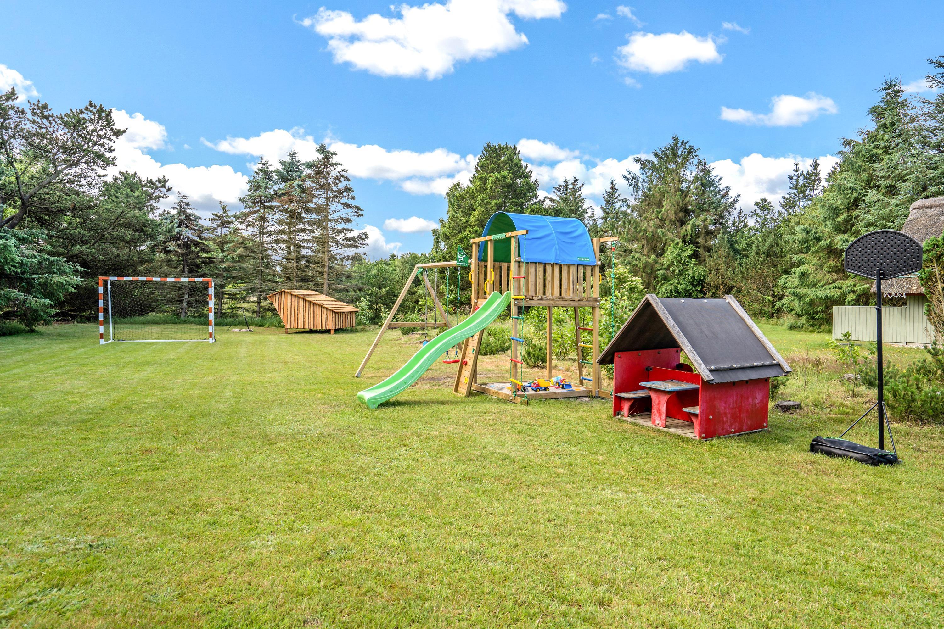 Sommerhusets udeområde er helt perfekt for hele familien. Her har I masser af plads at boltre jer på, og her er noget for alle aldre. På den afskærmede terrasse kan forældrene altid finde sig et solspot, hvor de kan lægge sig til rette med en god bog i de liggestole og havemøbler, der står til jeres rådighed.
