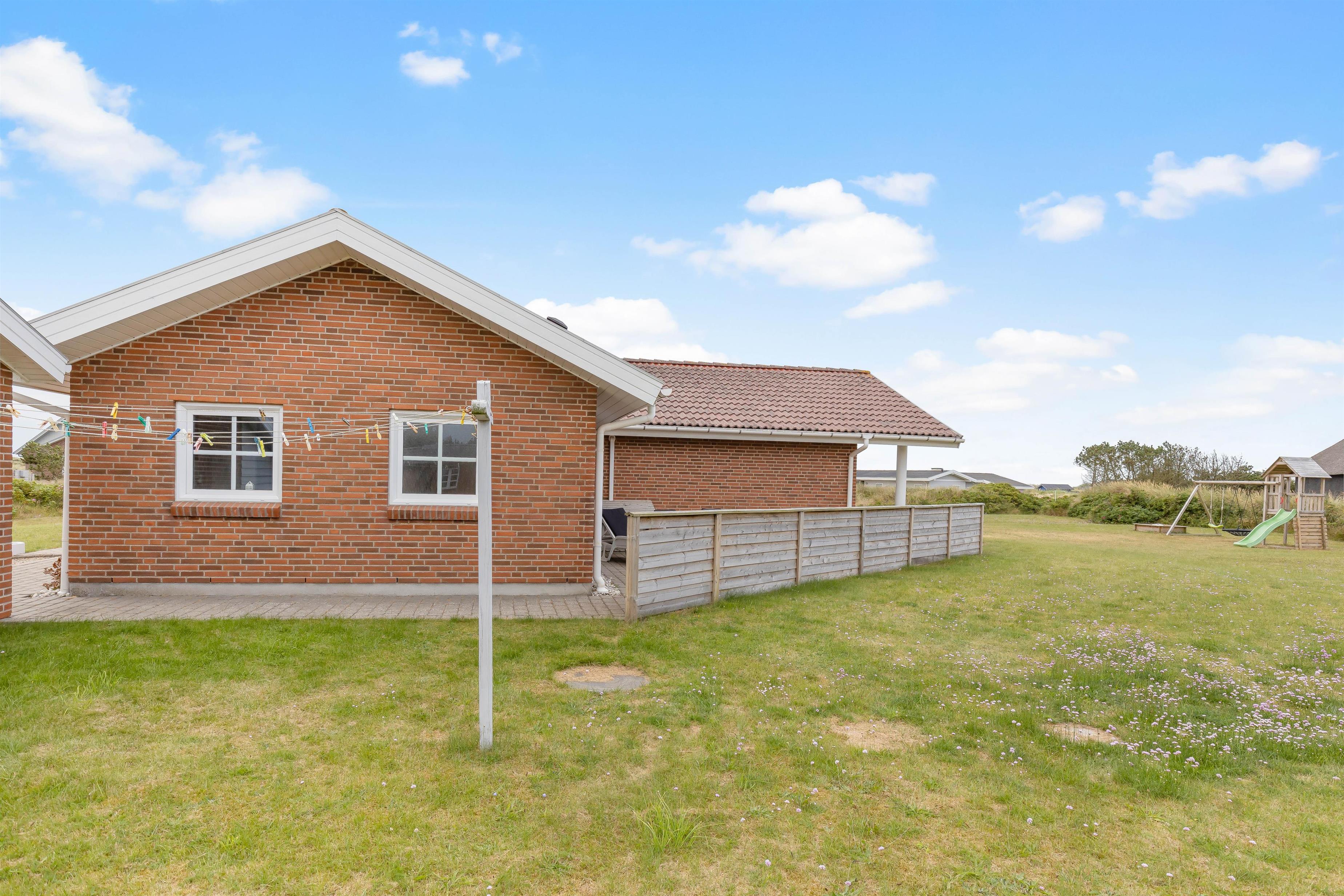 På sommerhusets udeområde kan både store og små tilbringe feriens varme dage. Her venter jer en have med god plads, som feriens mindste gæster kan boltre sig på. Til dem er der desuden en sandkasse og et gyngestativ på udeområdet.