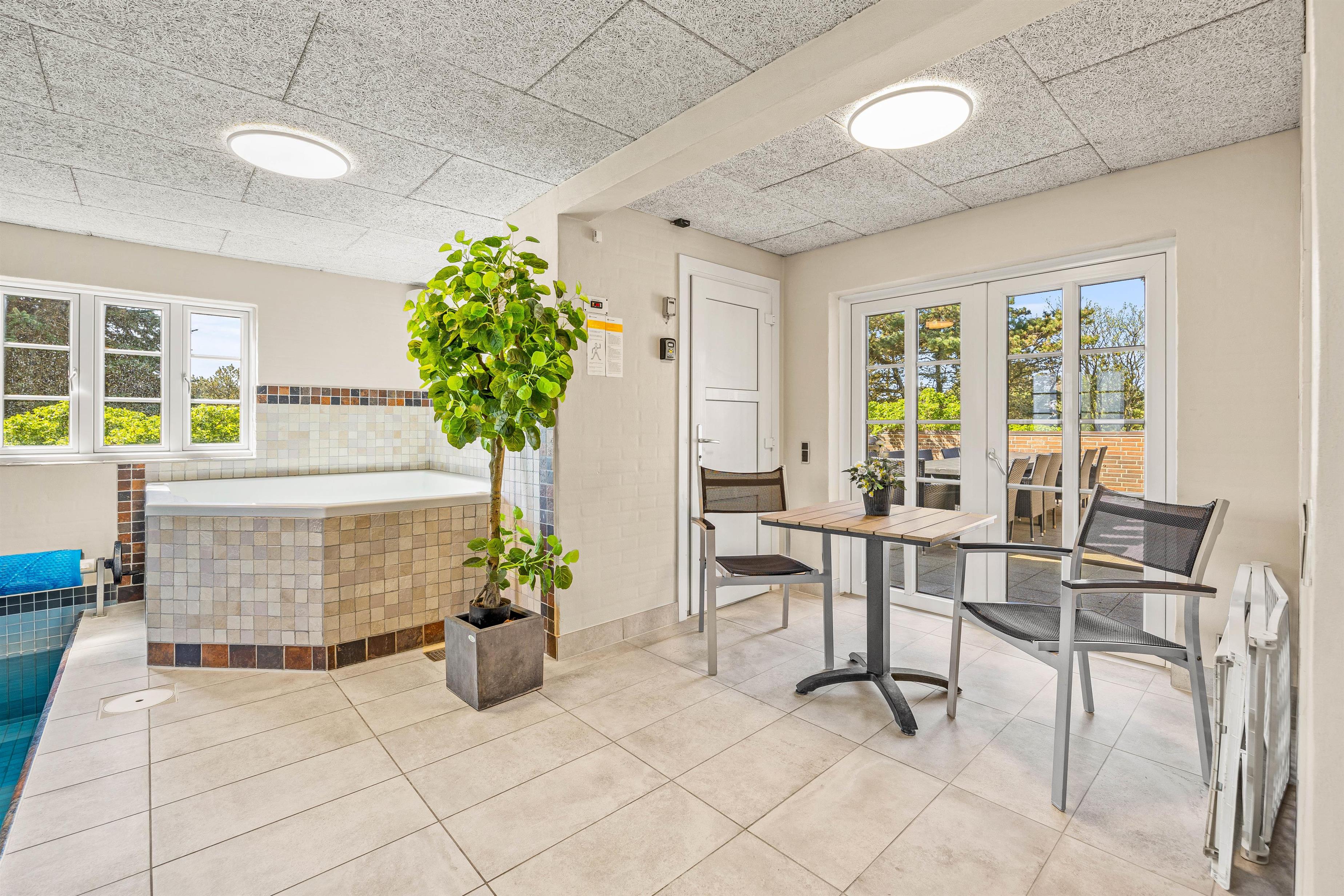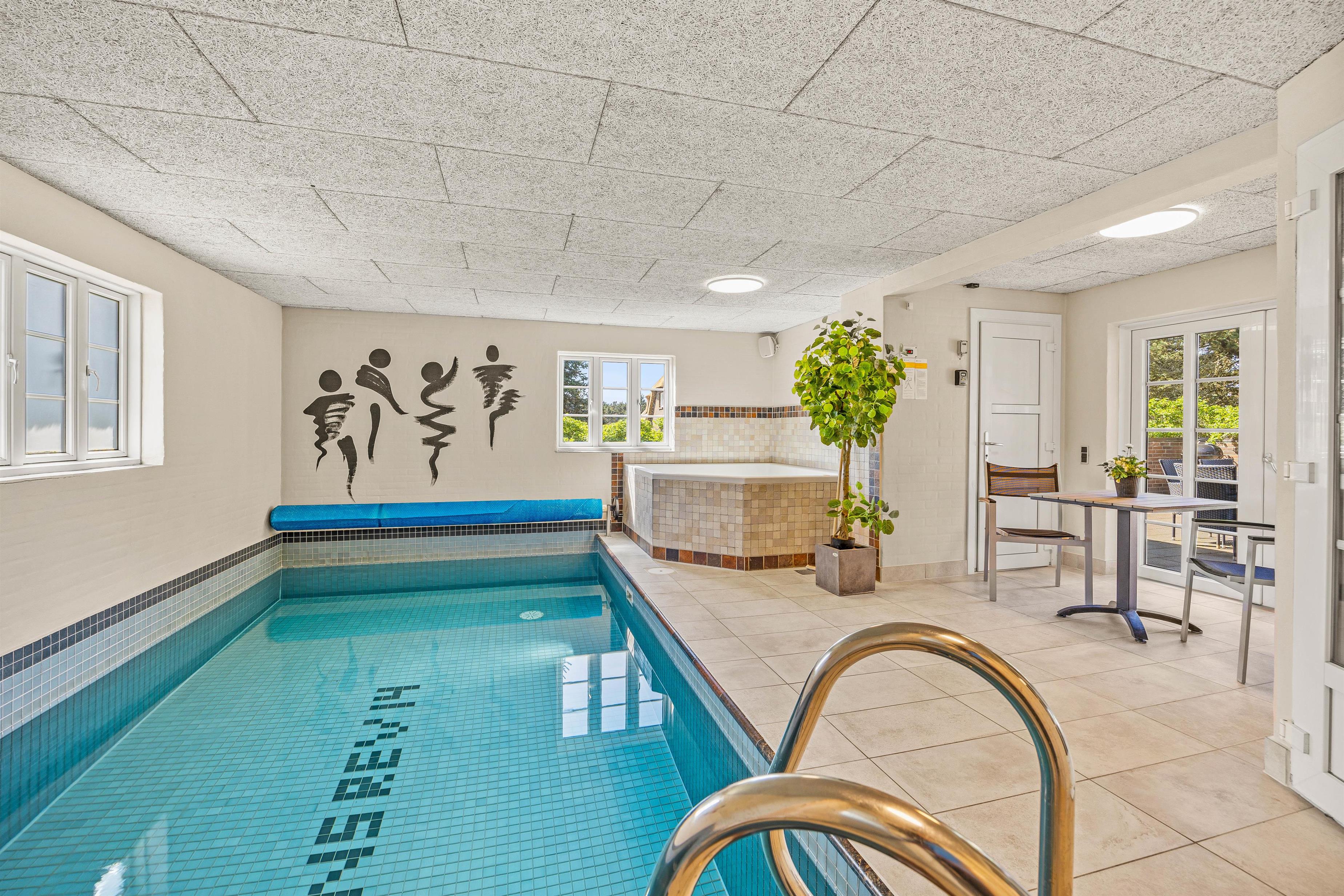 Sommerhusets poolrum er det perfekte sted at tilbringe sjove og afslappende stunder med dine kære, uanset vejret udenfor. Tag en forfriskende dukkert eller nyd leg og sjov i poolen, efterfulgt af en afslappende stund i spabadet eller saunaen. Efter en dag med aktiviteter i poolen kan I slappe af foran brændeovnen, mens morgendagens udflugt planlægges.