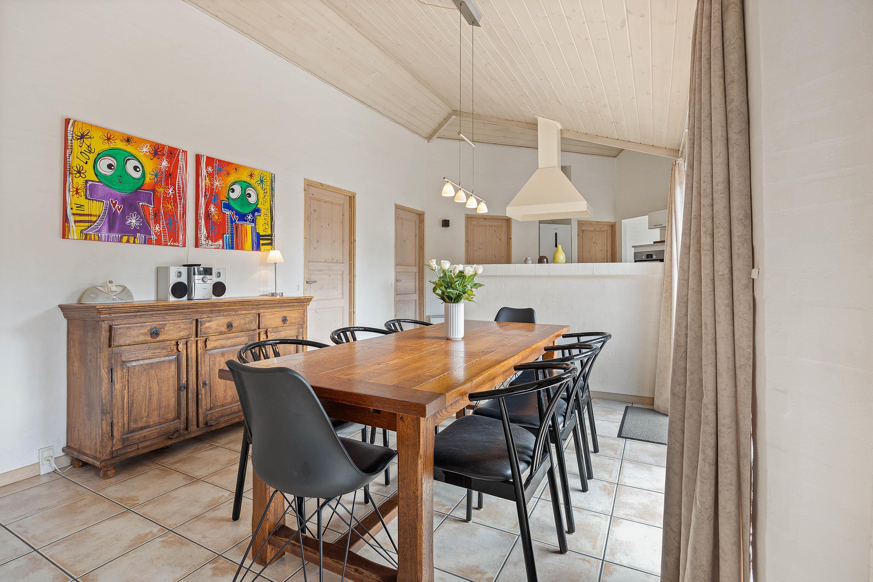Til hyggelige stunder med hele ferieflokken kan I alle samles i alrummet, hvor køkken, stue og spiseplads ligger i åben forbindelse. Alrummet danner rammen om alt fra hyggelige madlavning til sjove spil og gode film. Der er Chromecast i feriehuset, så I kan streame jeres yndlingsfilm, mens brændeovnen knitrer i baggrunden og fuldender den hyggelige feriestemning.