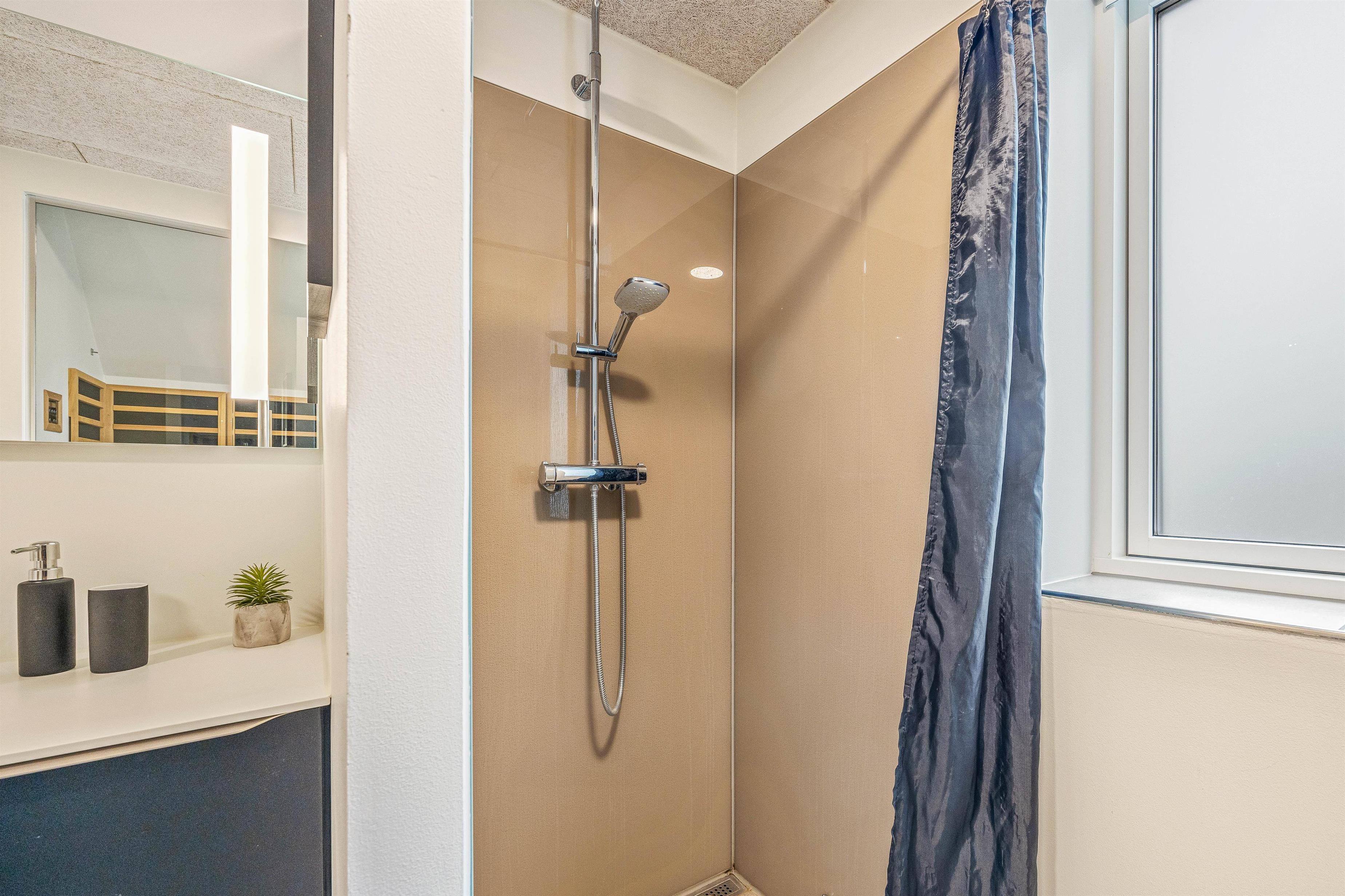 I sommerhuset har I desuden hele 3 badeværelser, der alle er udstyret med gulvvarme, så her er der hverken risiko for kø eller kolde fødder fra morgenstunden. På det ene af de 3 badeværelser finder I sommerhusets infrarøde sauna, der inviterer til afslappende stunder på ferien.