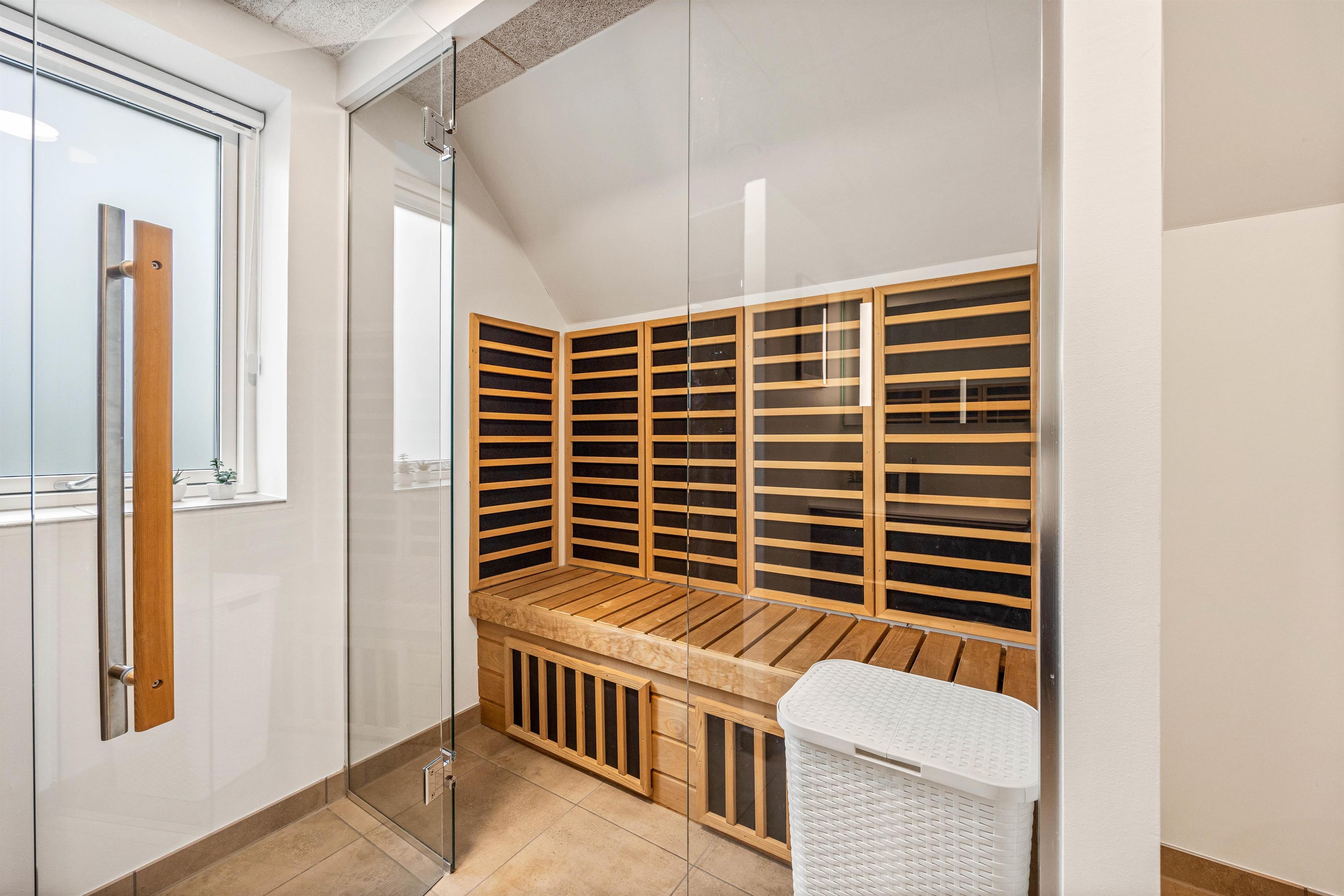 Lys og hyggelig indretning - badeværelse med infrarød sauna