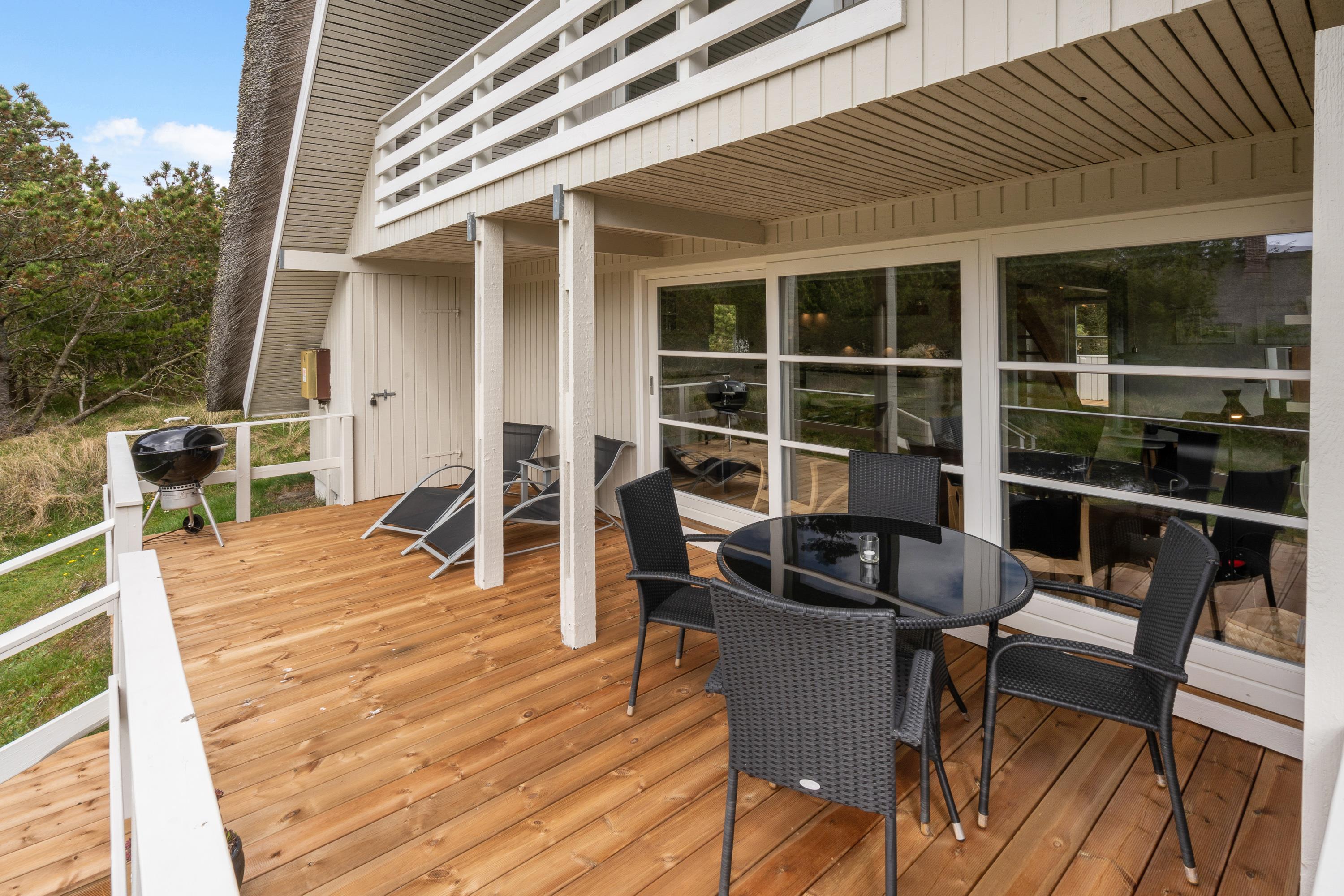 I kan slappe af ude på sommerhusets 3 alsidige terrasser, hvor det både er muligt at nyde morgen-, middags- og aftensolen. Derfor er I altid sikret læ og ikke mindst et godt solspot. Det gode vejr kan I nyde på sommerhusets liggestole og diverse havemøbler, og hvis lysten kommer til grillmad, så hiver I bare sommerhusets grill frem.
