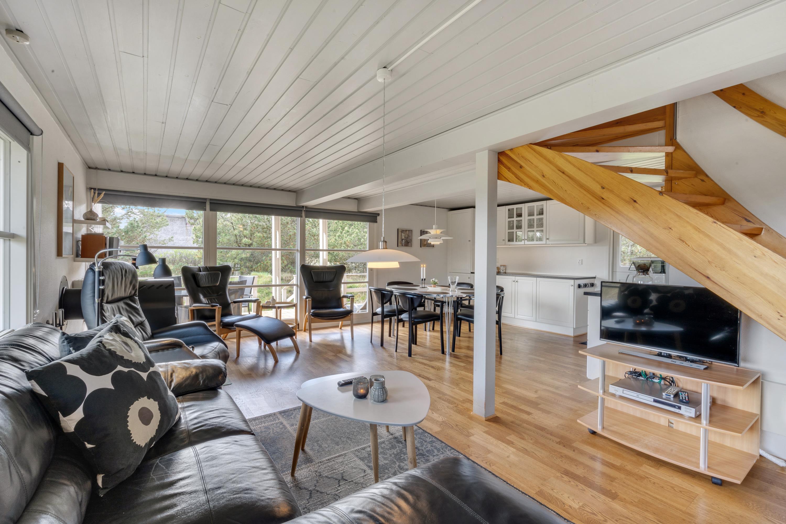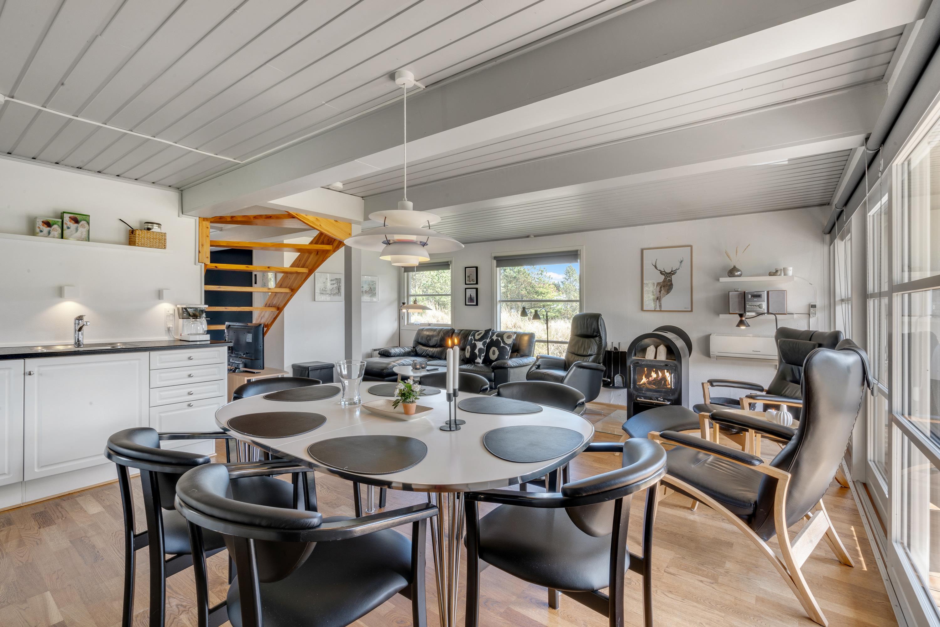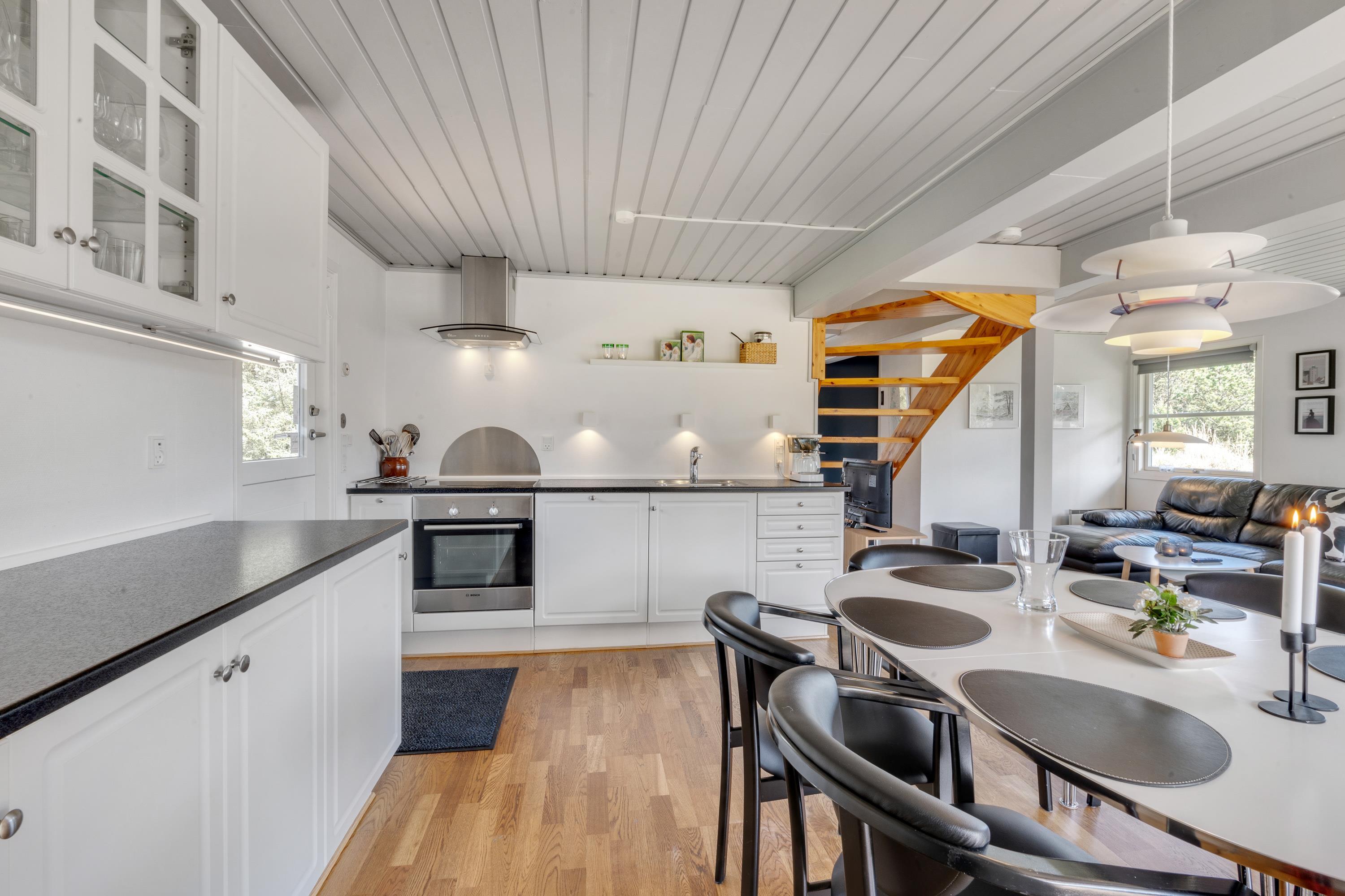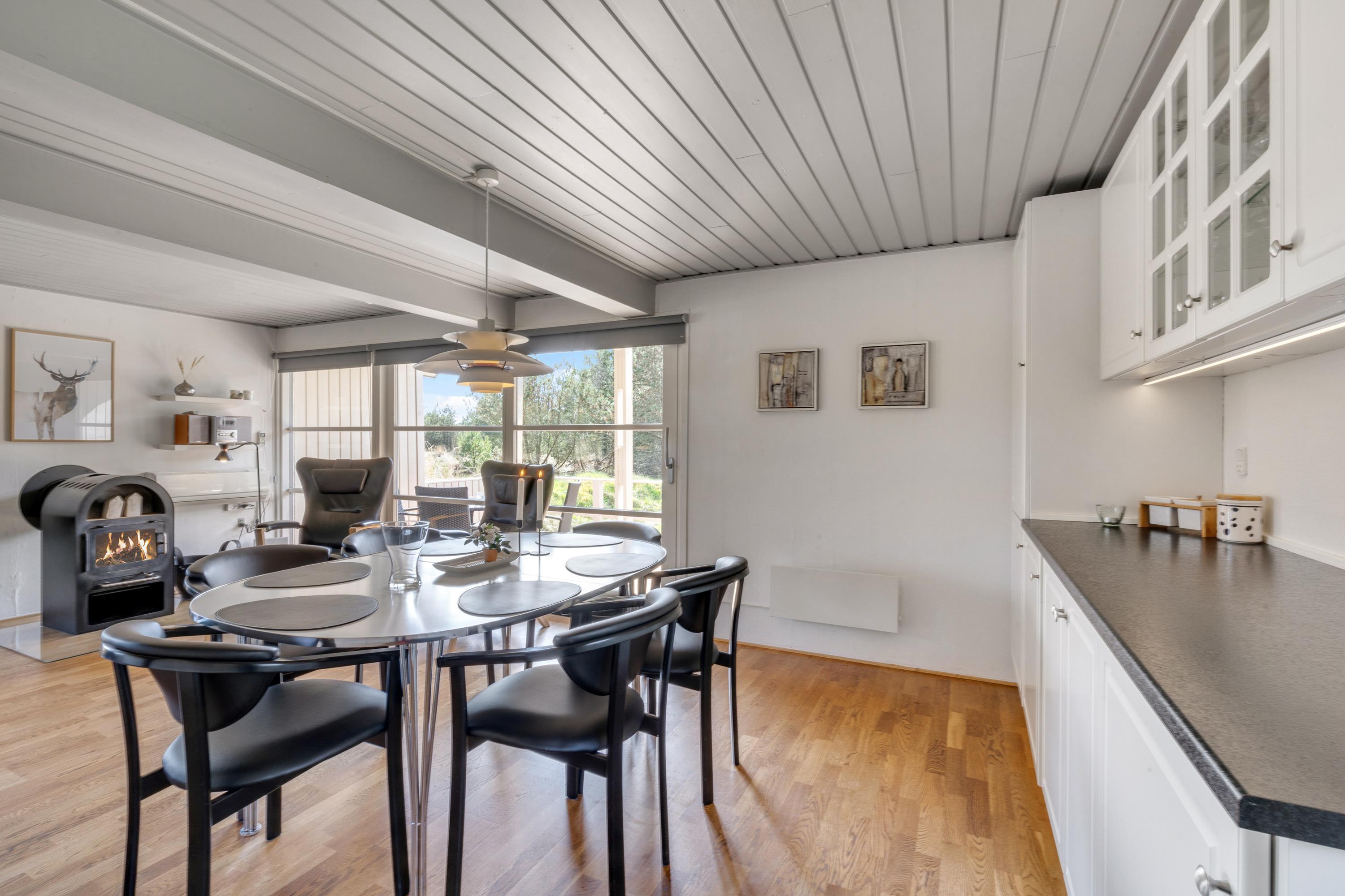 Sommerhuset fremstår lyst og idyllisk, hvor der virkelig er kræset om jer som gæster. Køkken, stue og spisestue er i åben forbindelse, og det er derfor muligt at nyde hinandens selskab, selvom én laver mad, en anden slapper af i sofaen og en tredje har placeret sig foran brændeovnen. Om aftenen kan I alle samle jer foran brændeovnen og se en god film eller spille brætspil.