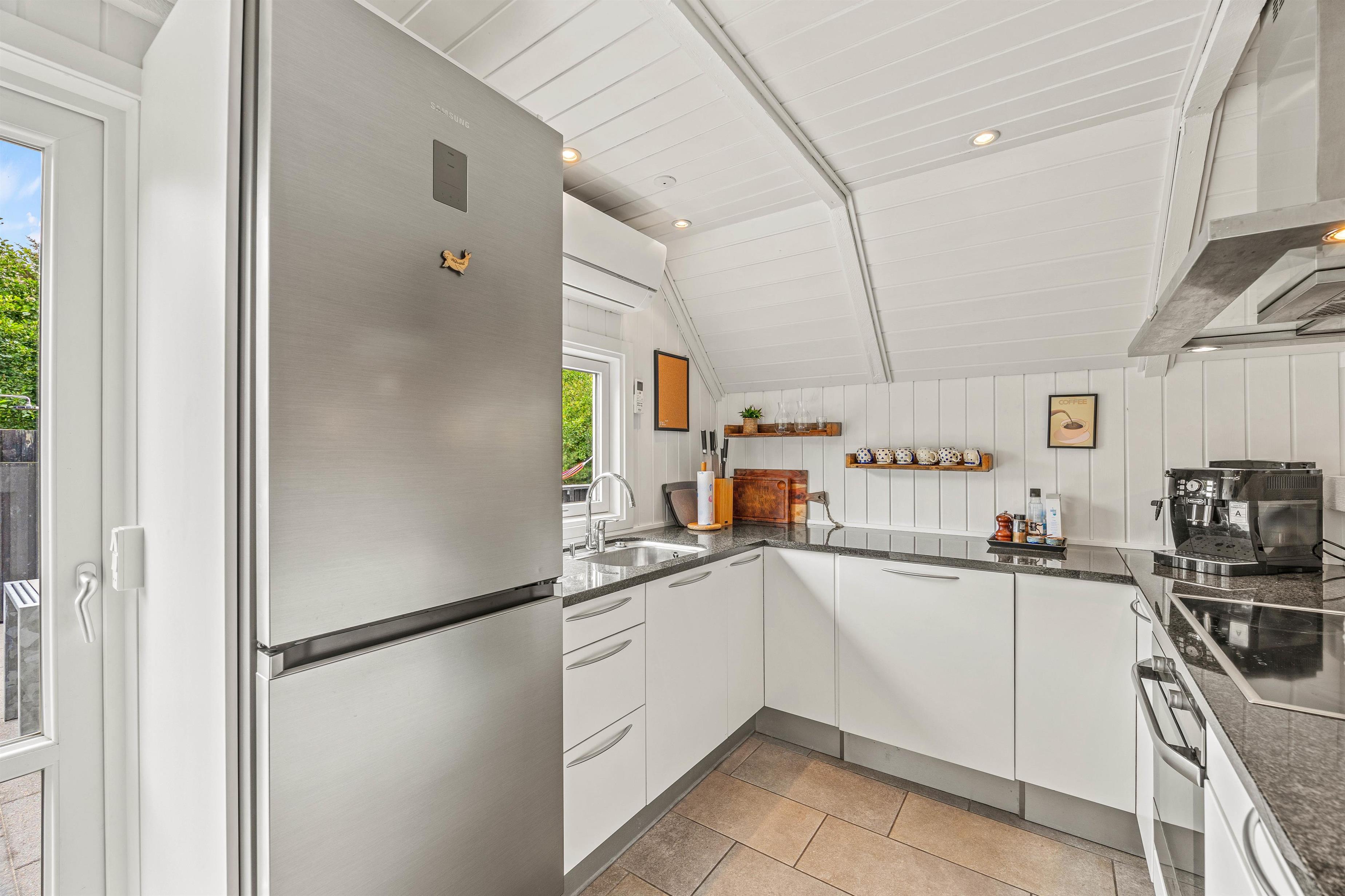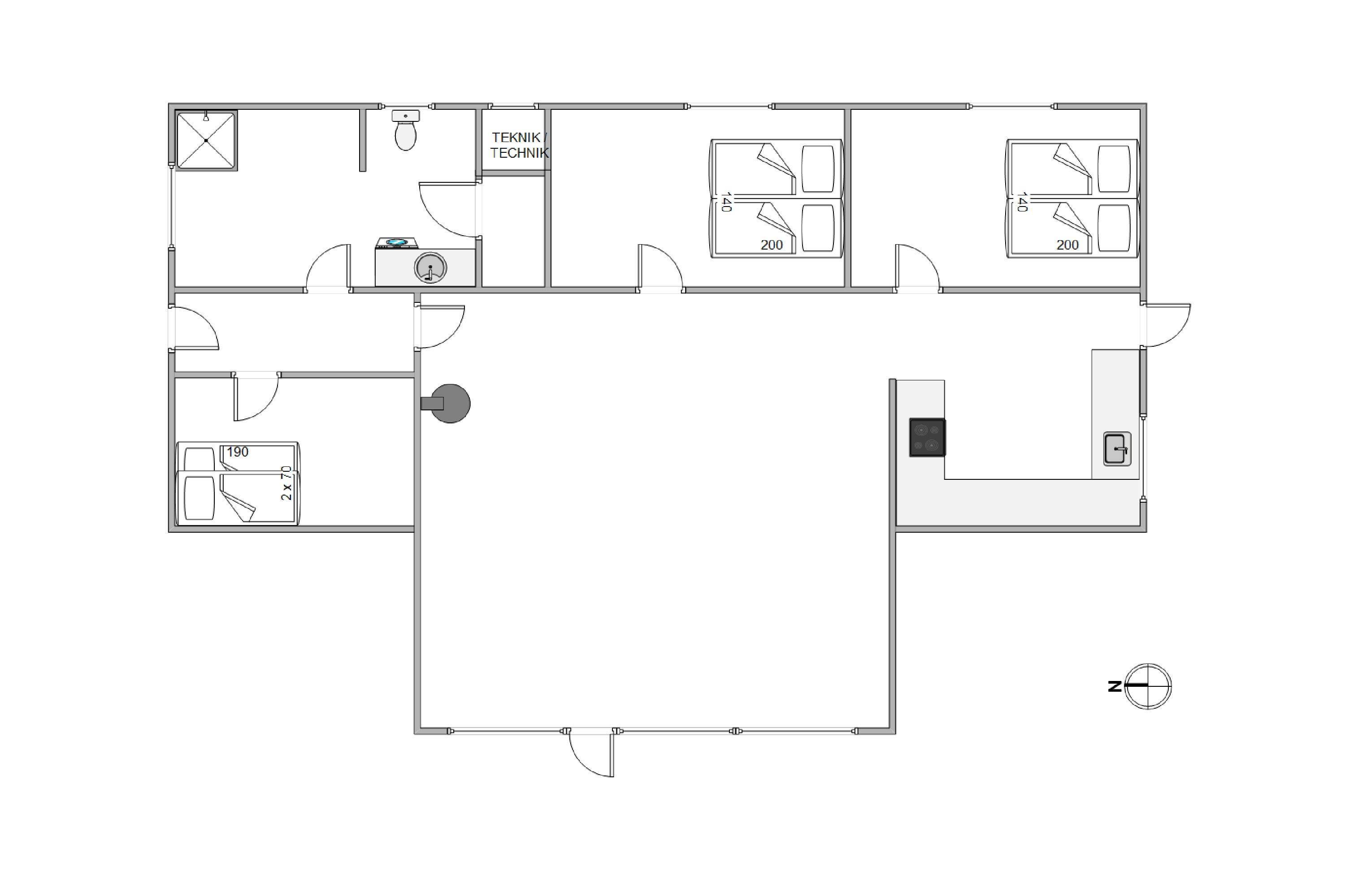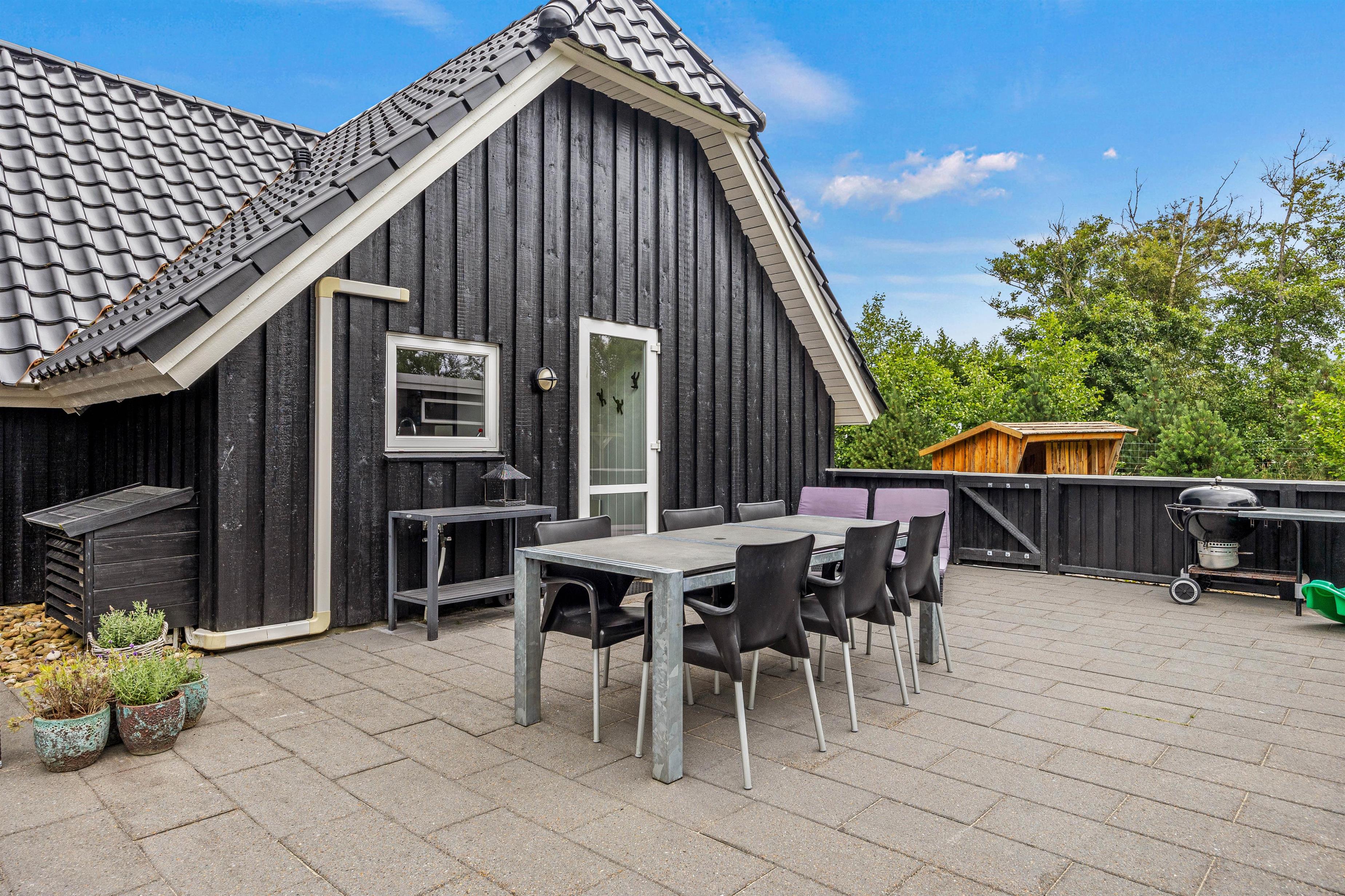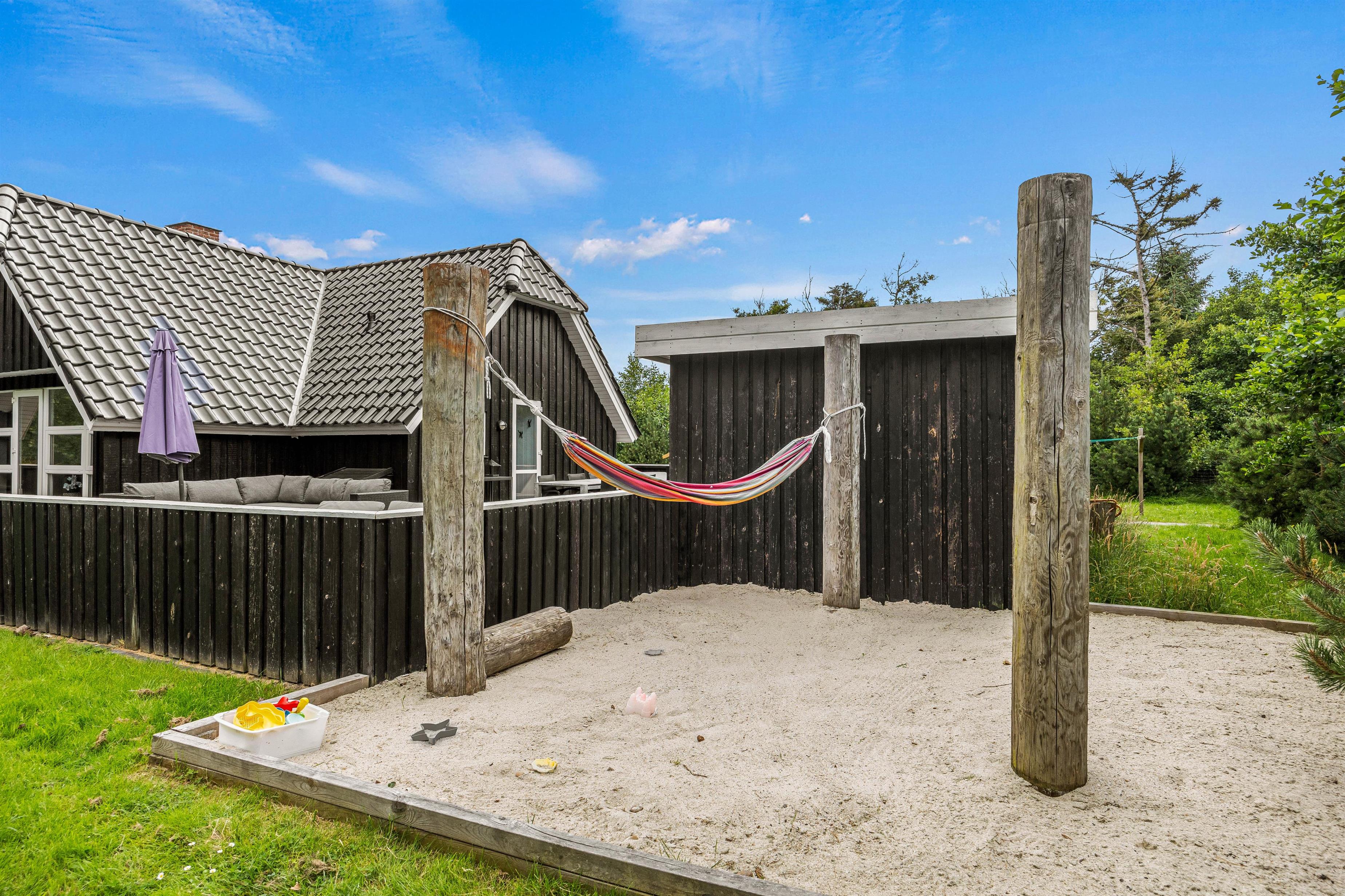 Fra stuen er der direkte adgang til terrassen, hvor havemøblerne venter på jer. Lad feriestemningen brede sig, slap af med en god bog og lad børnene lege på græsplænen eller i sandkassen. Sommerhuset er perfekt for børnefamilien, idet her både er gynger og god plads til leg på plænen. Mens børnene hygger sig, kan familiens grillmester tænde op i gasgrillen og gøre klar til en dejlig middag.
