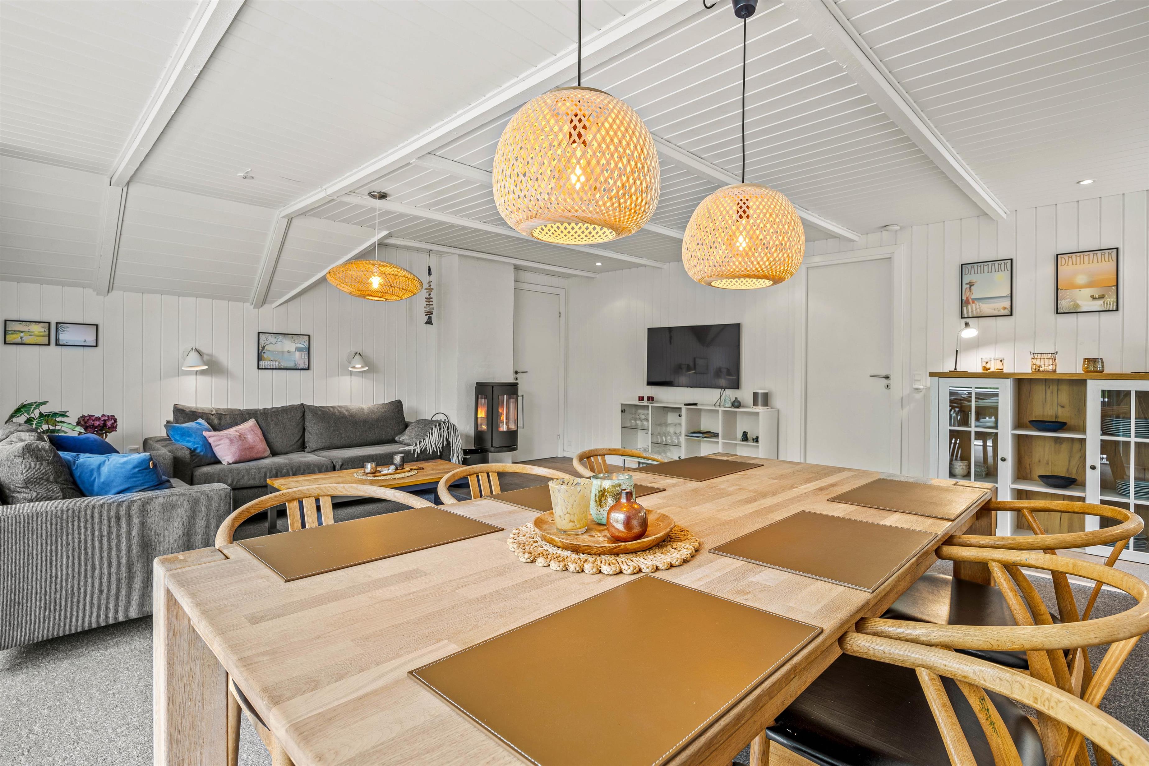 Hjerterummet er det skønne åbne opholdsrum, der binder stue og køkken sammen. Her er en dejlig brændeovn, der skaber den helt rette feriestemning, og her kan hobbykokken kreere lækre måltider, der samler familien om bordet. Her kan I også holde brætspilsaftner, streame film på sofaen, læse krimi eller udfolde jer kreativt med perler – mulighederne er mange. Glem alt om hverdagen, og nyd tiden med jeres nærmeste.