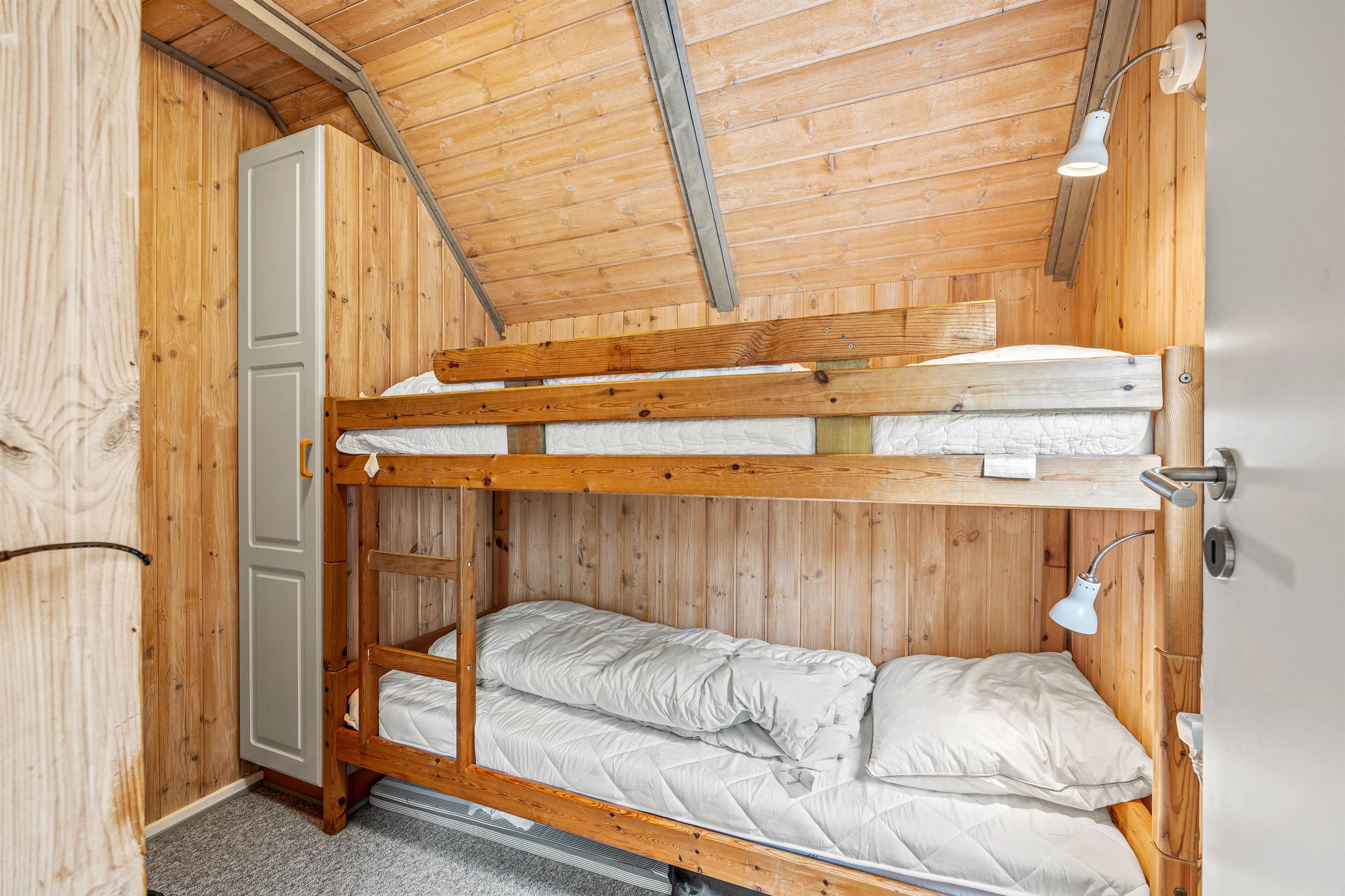 Med sine 90 m2 er der i huset på Lyngkrogen 5 plads til 4 feriegæster og en hund. Her er 3 fine soveværelser, hvoraf det ene er udstyret med en køjeseng og bliver et hit for børnene. På værelserne er der gulvtæppe, ligesom i stuen.