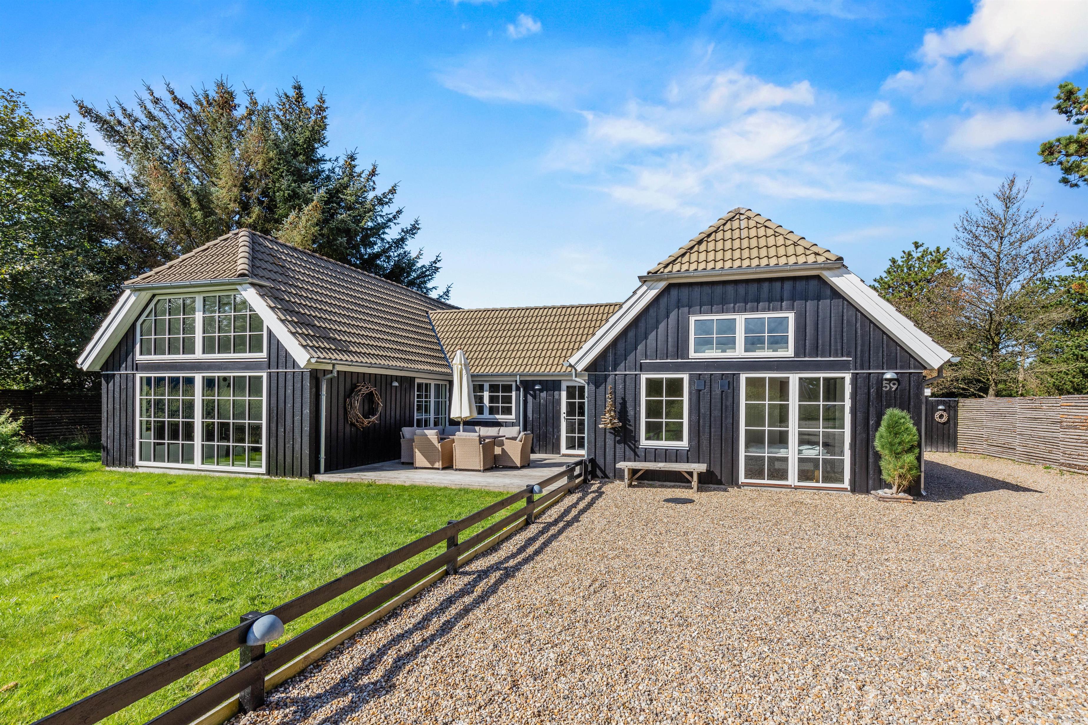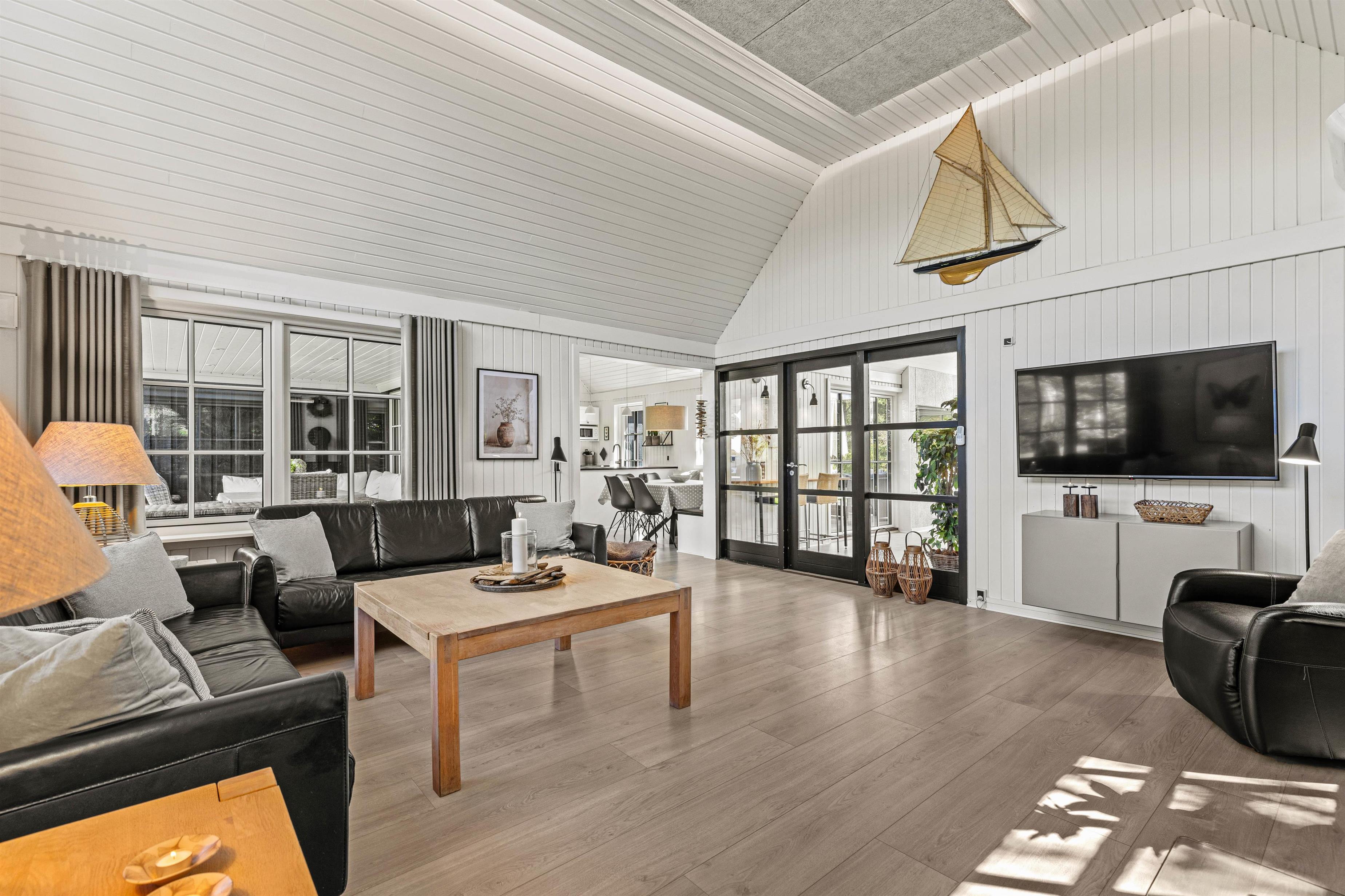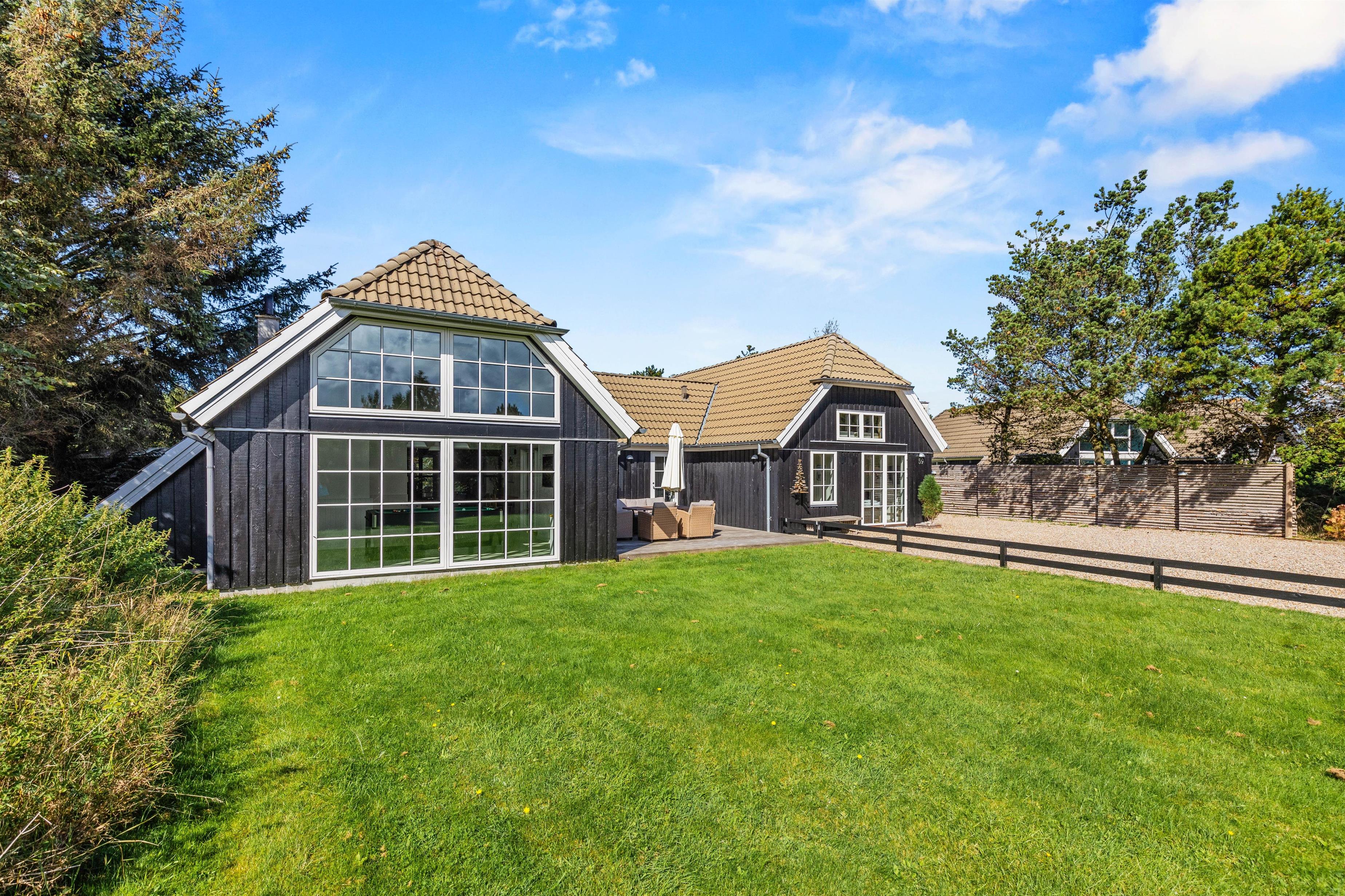 Det 172 m2 store flotte hus er stilfuldt indrette og rummer alle vigtige faciliteter og mere til. De store lyse fællesrum – det moderne køkken og stuen med brændeovnen og et opholdsrum med pool billard, air hockey eller bordtennis lover masser af fælles feriehygge. Her føler hele familien sig godt tilpas, og en regnvejrsdag kan sagtens blive til feriens hyggeligste! I det moderne køkken er der naturligvis opvaskemaskine og det store køleskab lover kolde drinks med masser af is på varme dage. Naturligvis er huset udstyret med både vaskemaskine og tørretumbler.