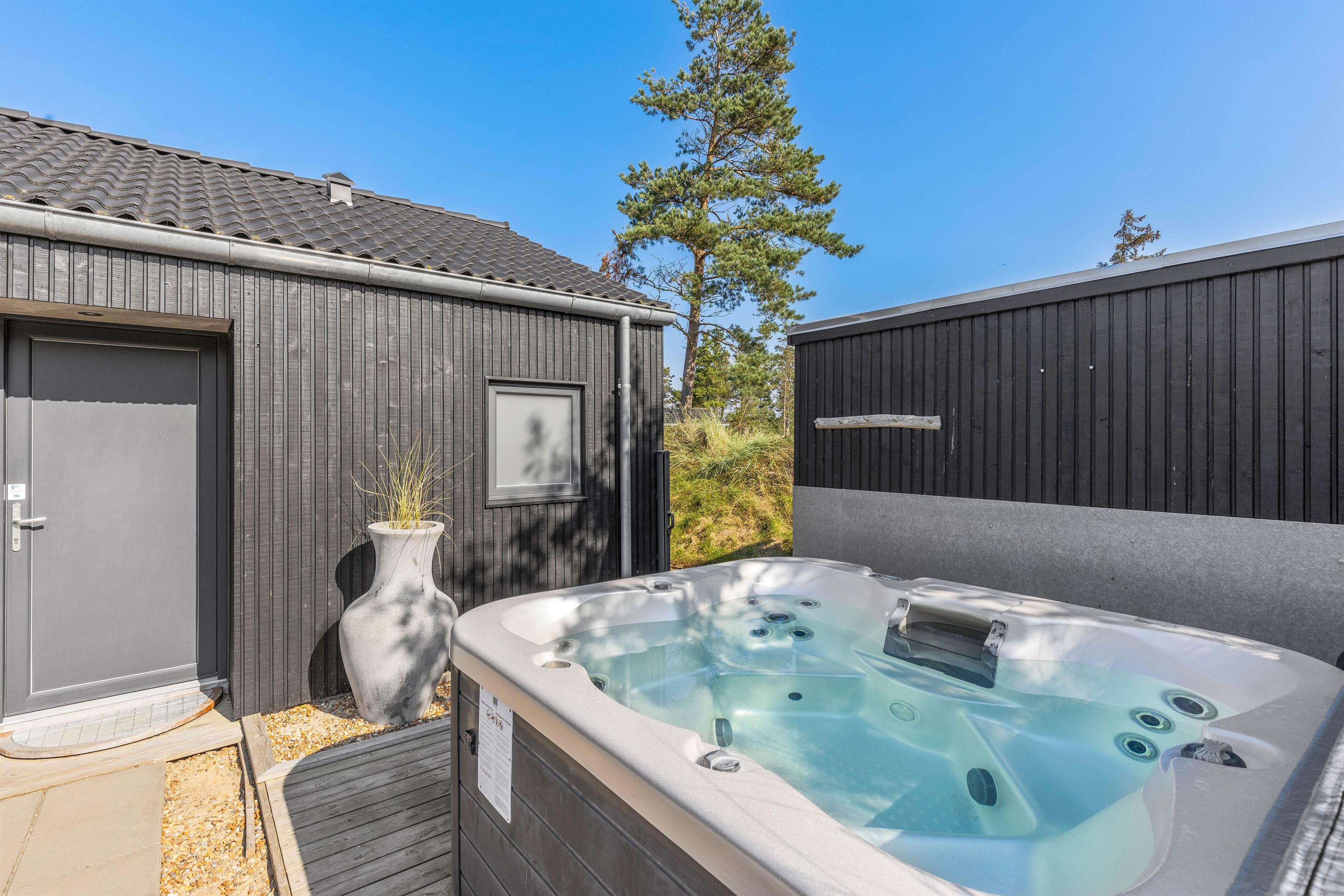 Længes I efter wellness og selvforkælelse, er I også kommet til det helt rigtige sted. Blandt feriehusets faciliteter finder I nemlig både en infrarød sauna og et stort, 5 personers-udendørs spabad på terrassen.
