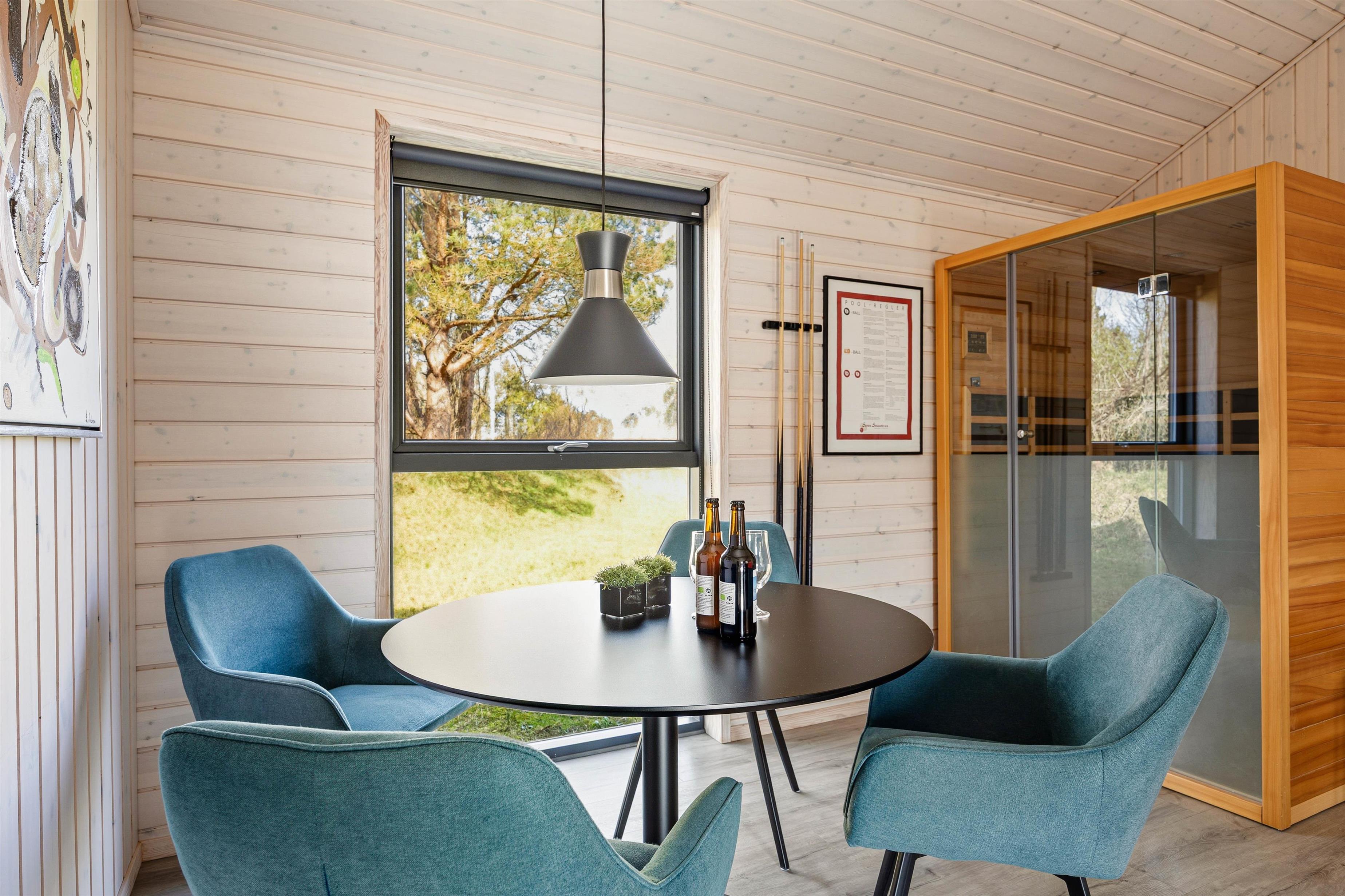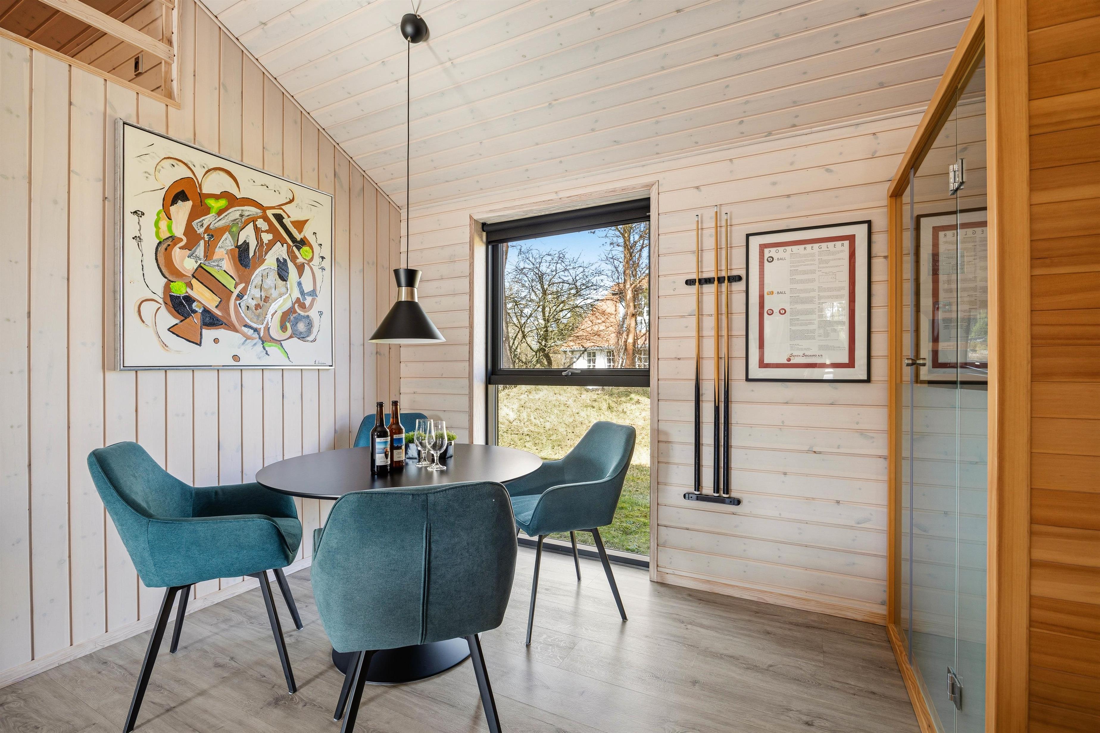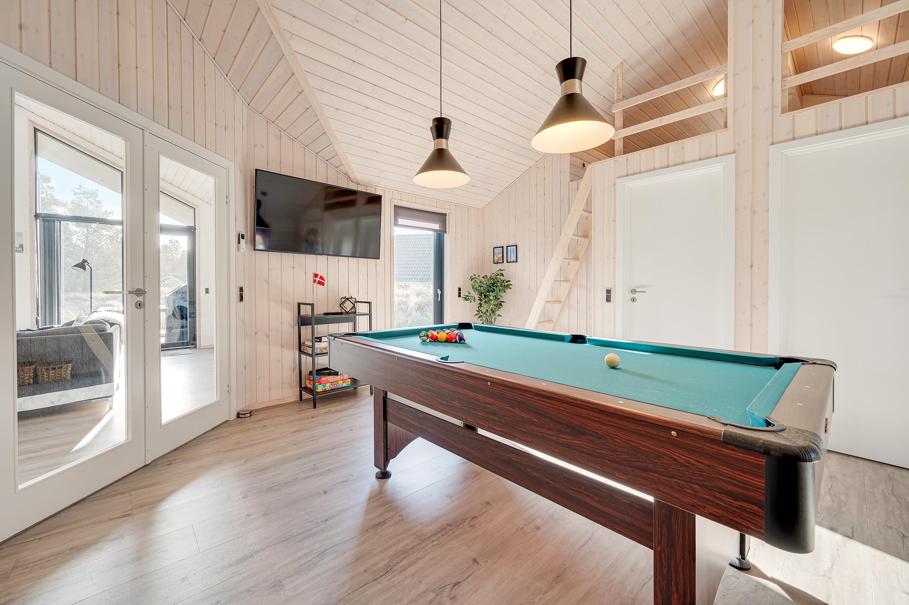 Det femstjernede sommerhus råder over 151 kvadratmeter og dermed god plads til hele familien eller venneflokken. Der mangler bestemt ikke noget i den luksuriøse indretning, som blandt andet gemmer på et aktivitetsrum med poolbord, hvor de aktive gæster kan slå sig løs.