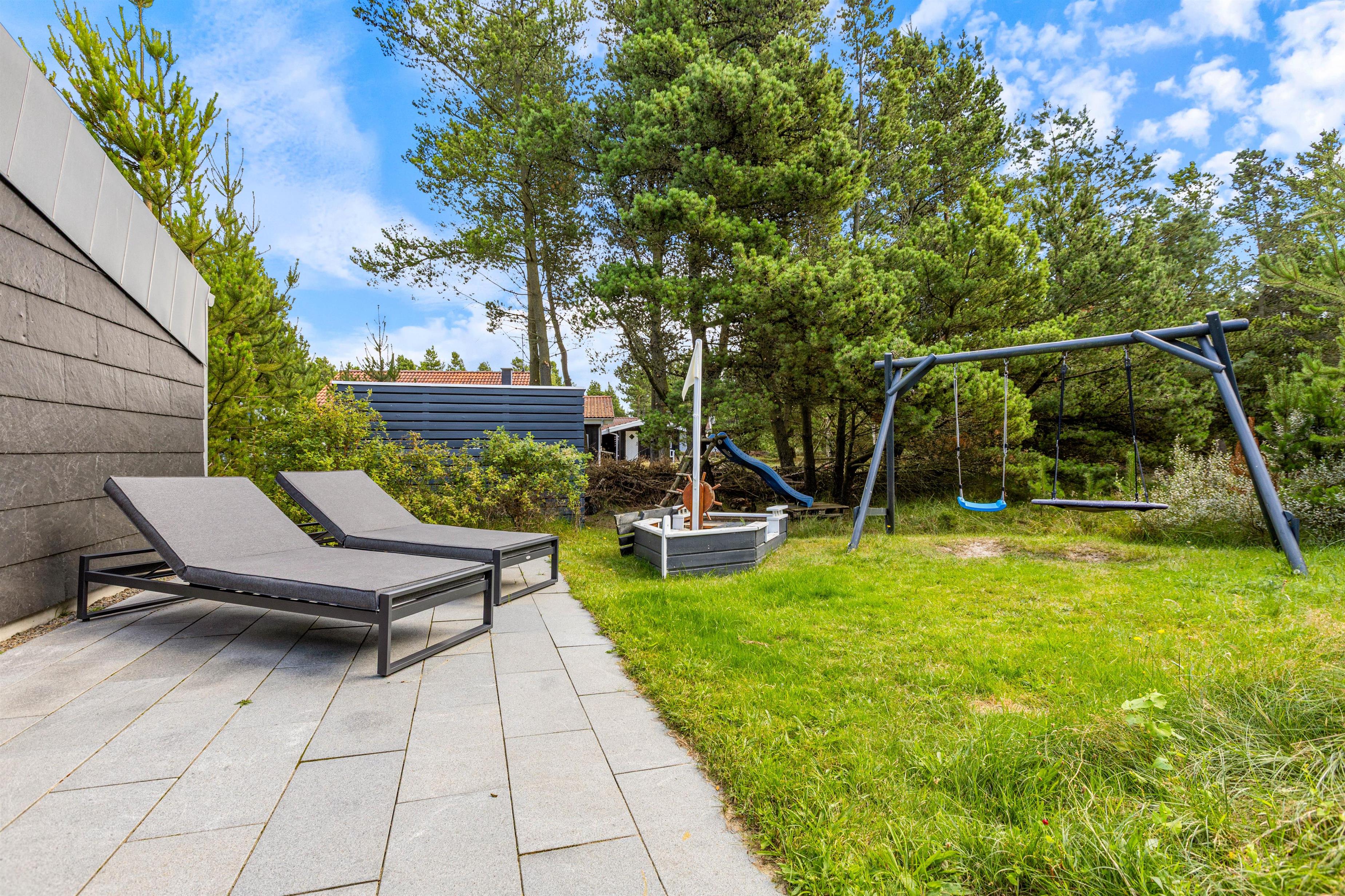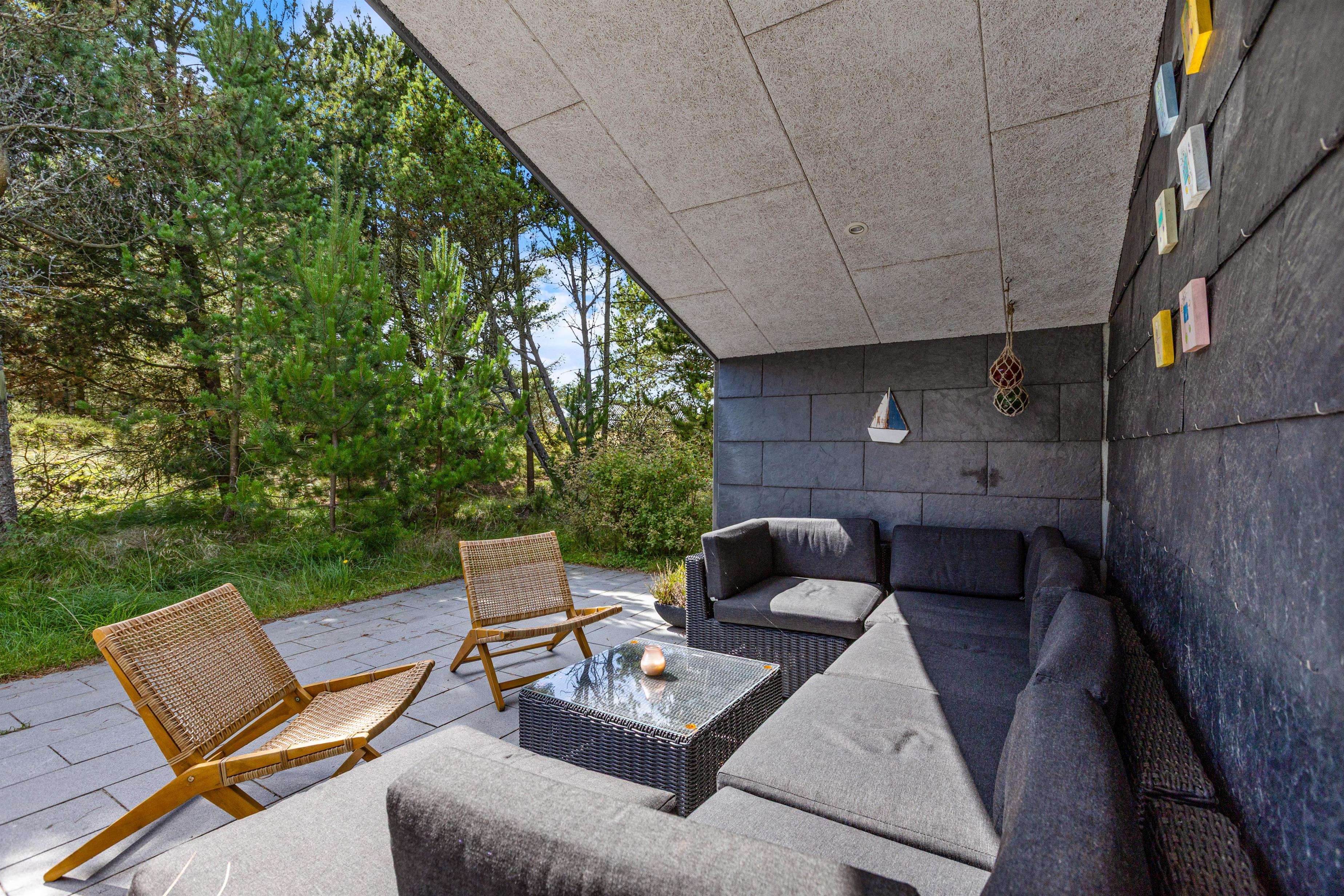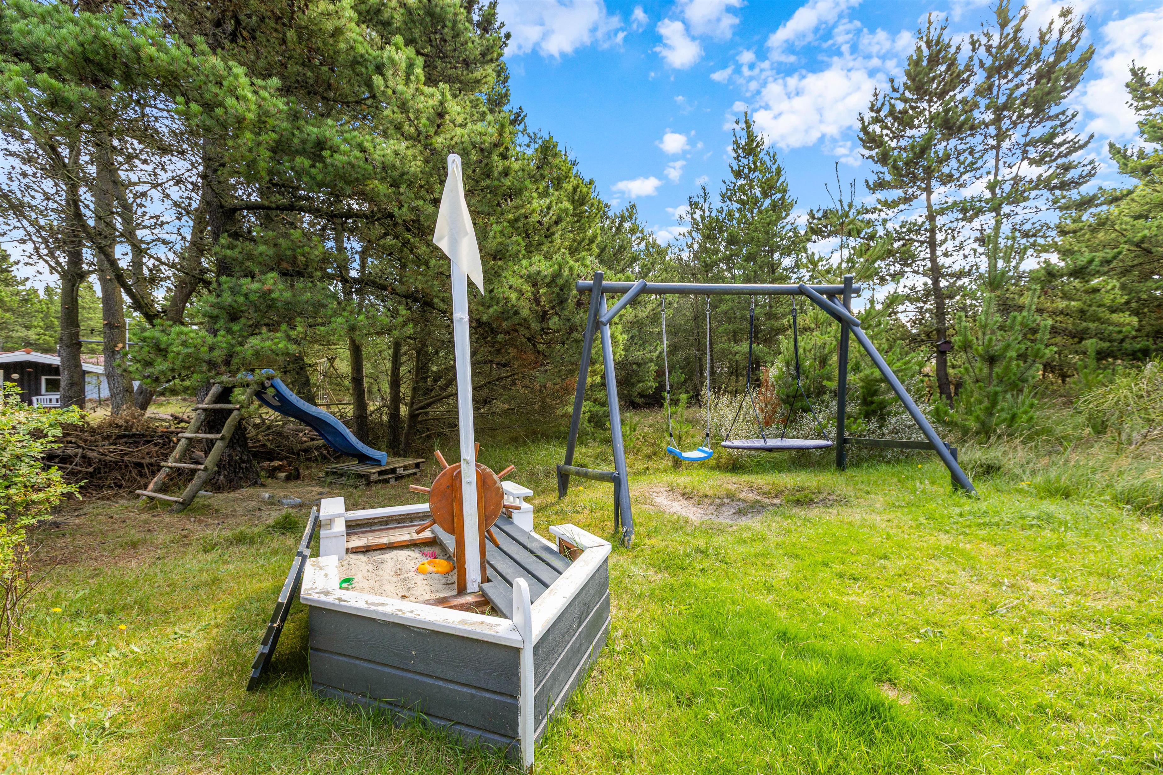 I får en rigtig skøn beliggenhed i Blåvands lyngklædte landskab, blandt de høje træer. I kan altså helt ugeneret slappe af i solen på den lækre terrasse, som både er overdækket og har gode lækroge, hvor I kan sætte jer med en god bog, mens børnene leger på gyngestativet.