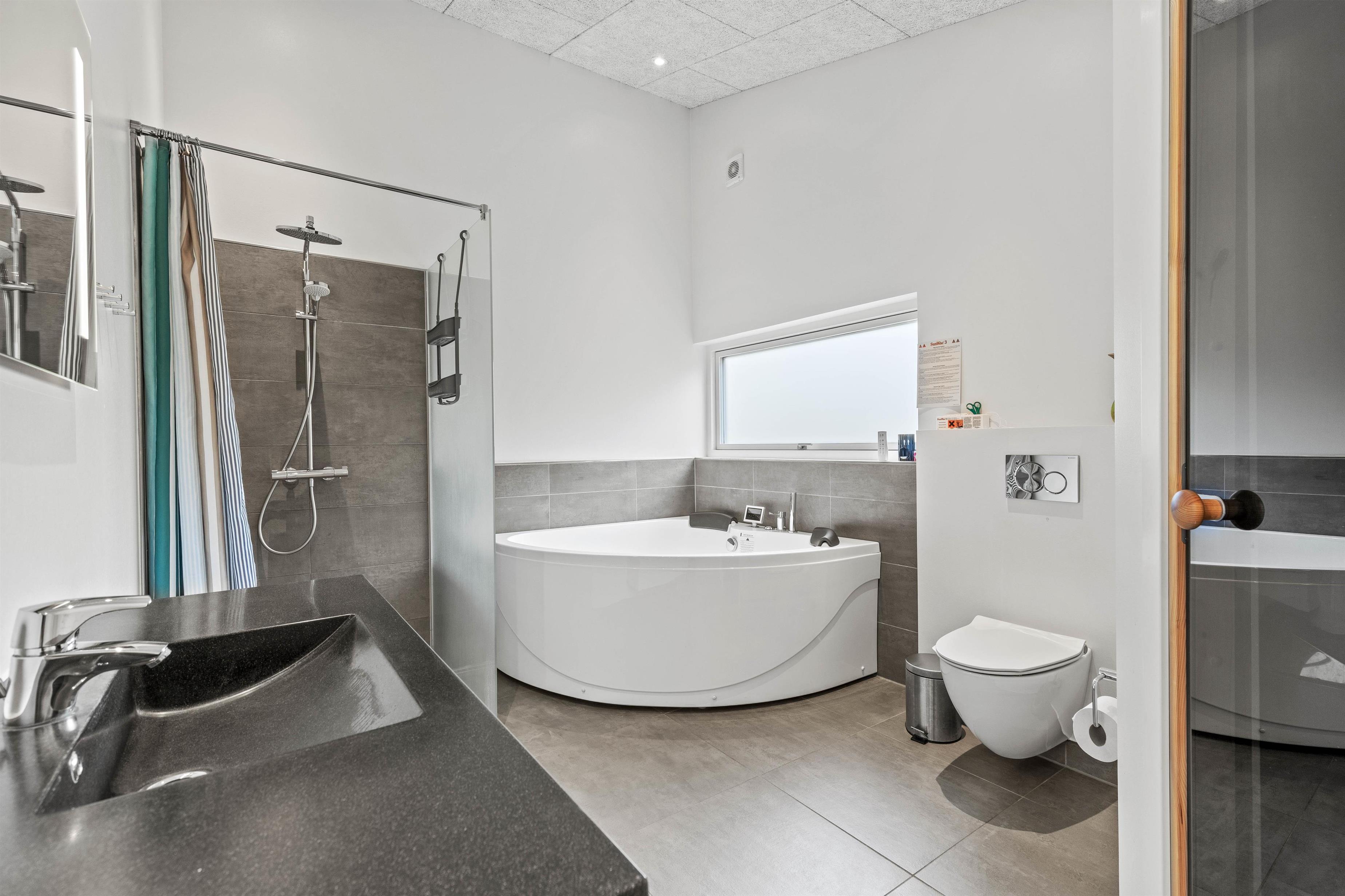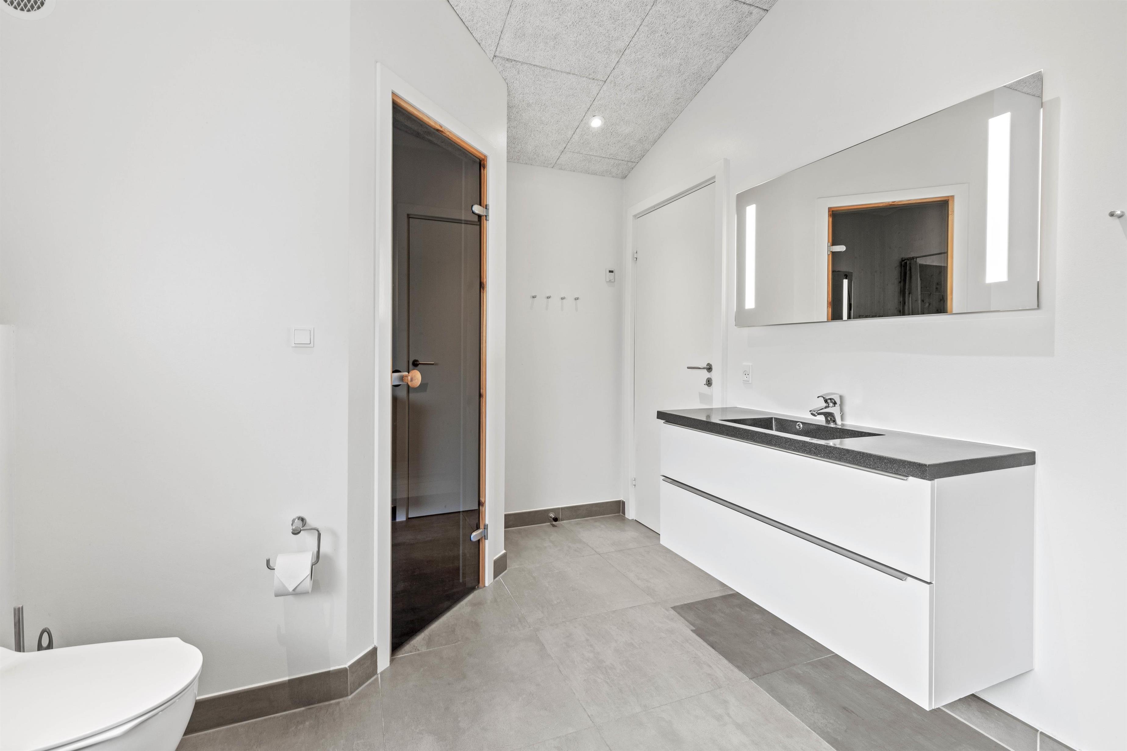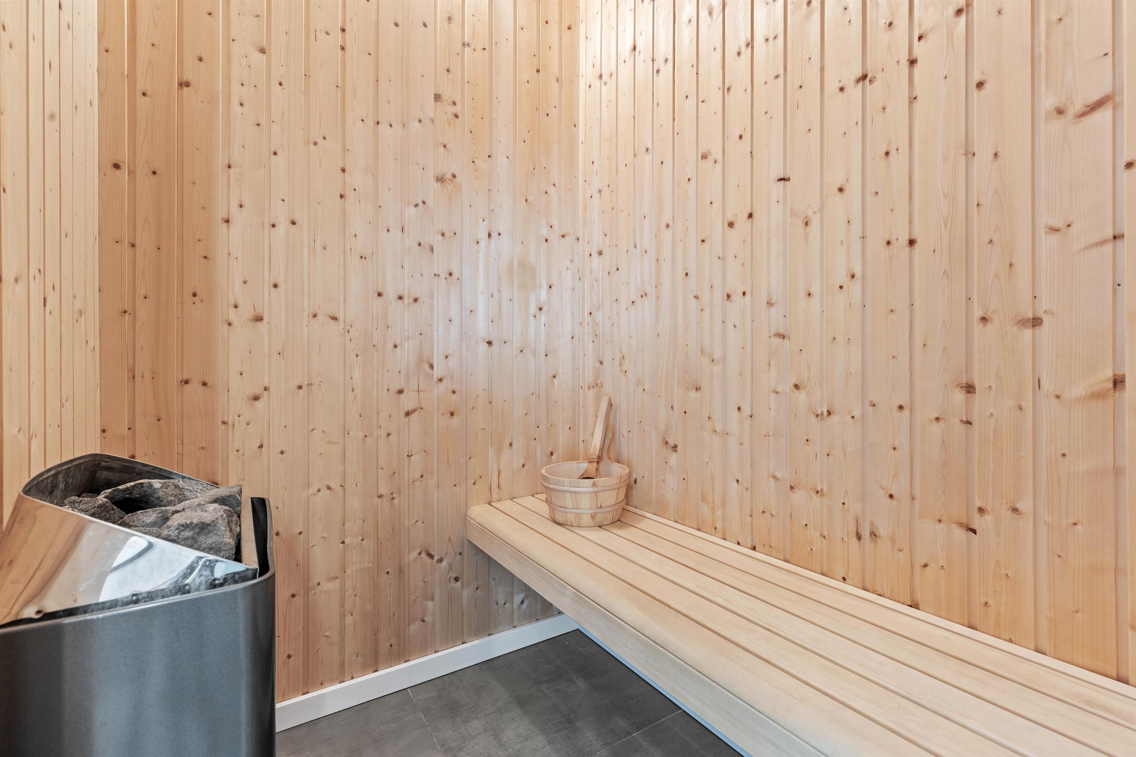 Store vinduer i opholdsrummet lukker solens lys og den idylliske natur indenfor og sørger for en imødekommende stemning, og kombineret med det moderne interiør er rammerne sat for en ferie med stort F – med masser af underholdning og ekstra wellness. For energibesparende varme er der installeret et moderne luft til vand varmesystem - således har I hele året rundt et dejligt indeklima med gulvvarme uden høje strømomkostninger.