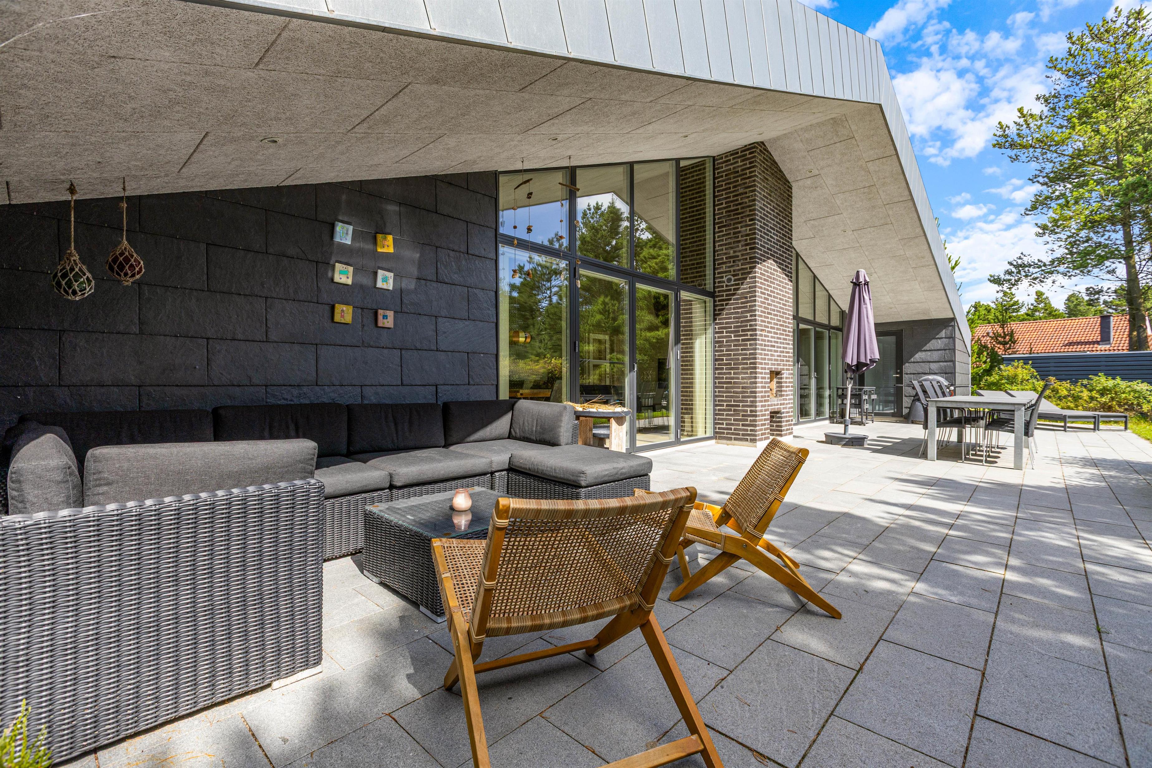 På en ugeneret grund i Blåvand ligger denne perle af et feriehus, opført i 2017. Den omfattende indretning inkluderer blandt andet spabad, sauna og aktivitetsrum med billard og bordfodbold, og den fredfyldte beliggenhed er perfekt til slap af-dage på den lækre terrasse - Solsiden lever rigtigt op til sit navn.