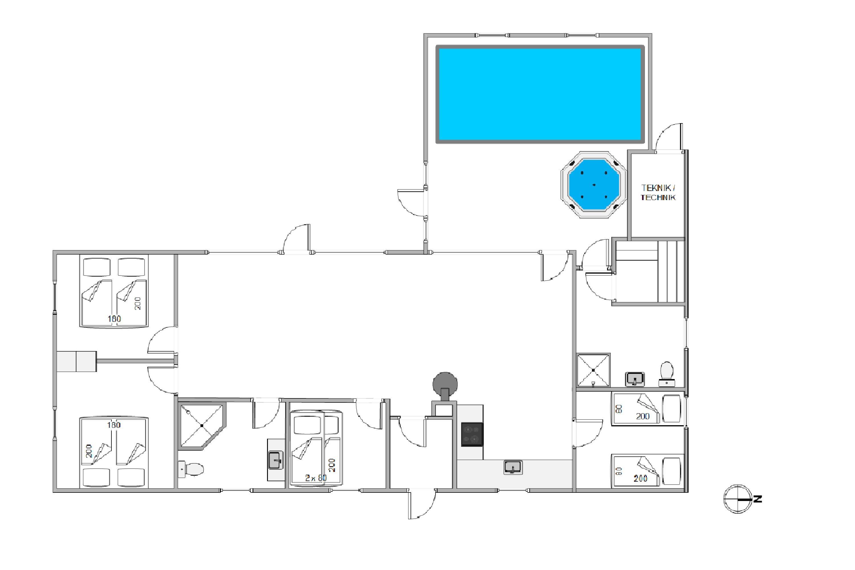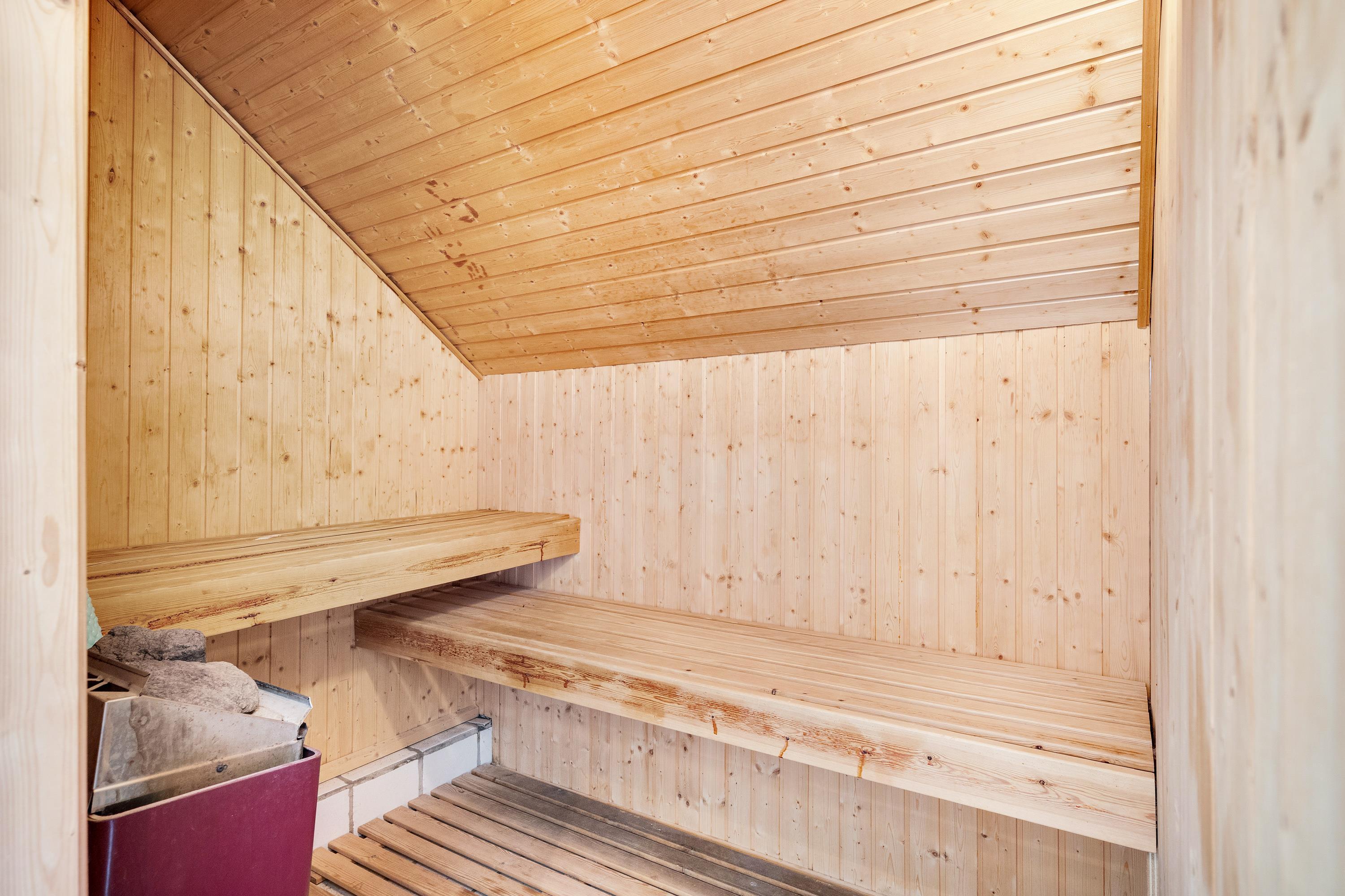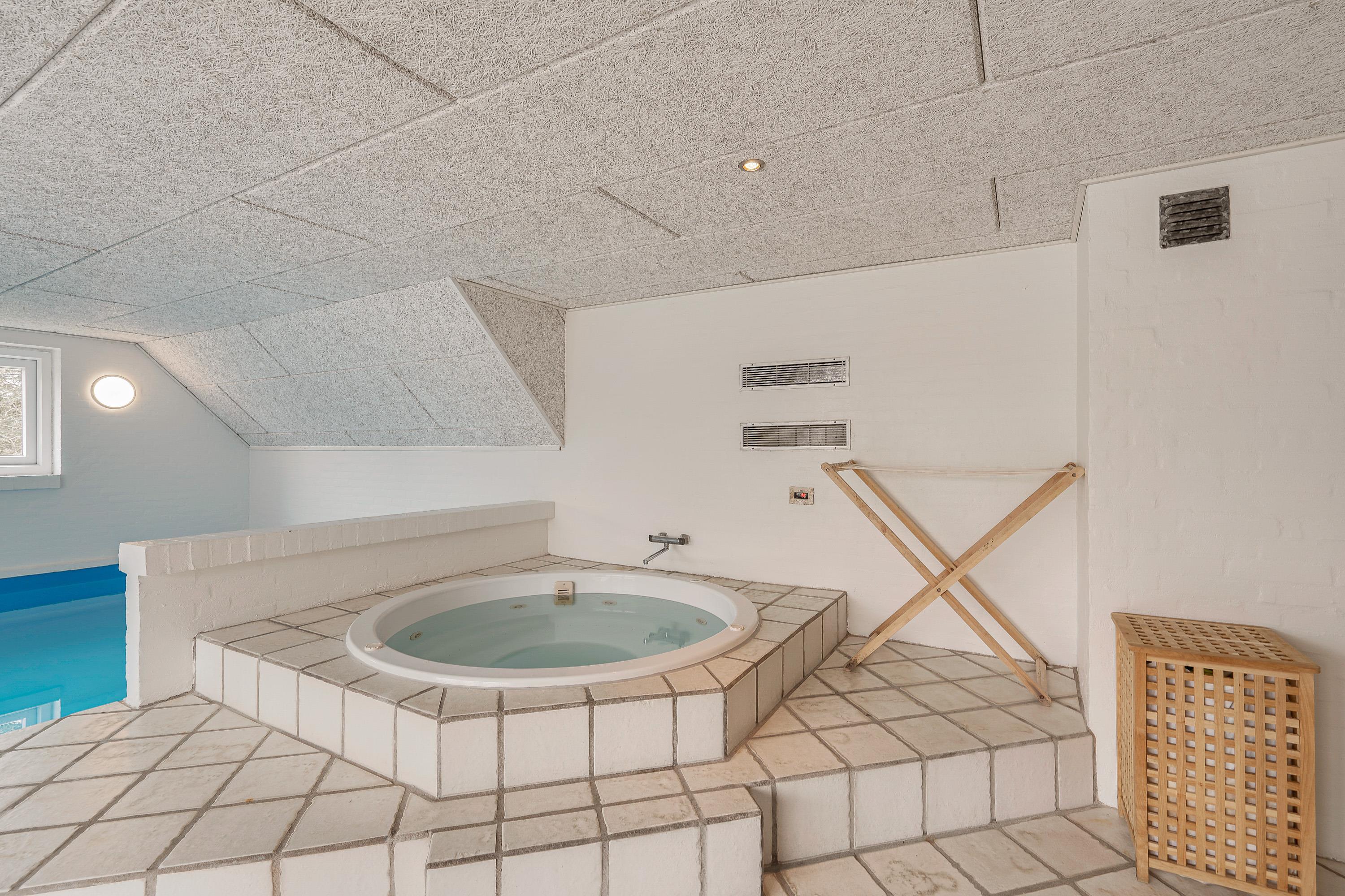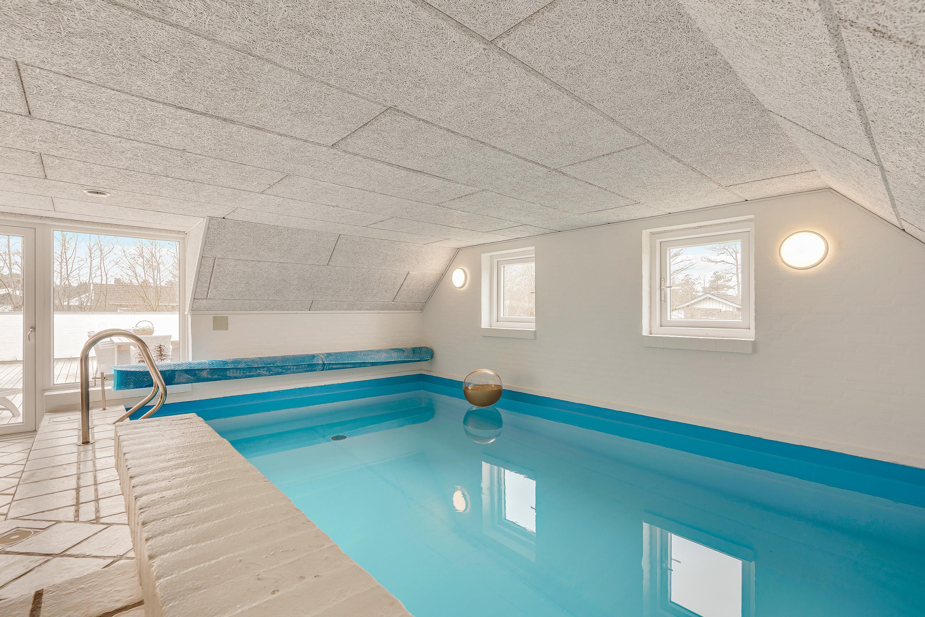 Sommerhusets uomtvistelige highlight er den store, lyse poolafdeling, der ud over en indendørs swimmingpool er udstyret med et spabad og et badeværelse med indgang til husets sauna. Fra poolområdet er der desuden udgang til terrassen.