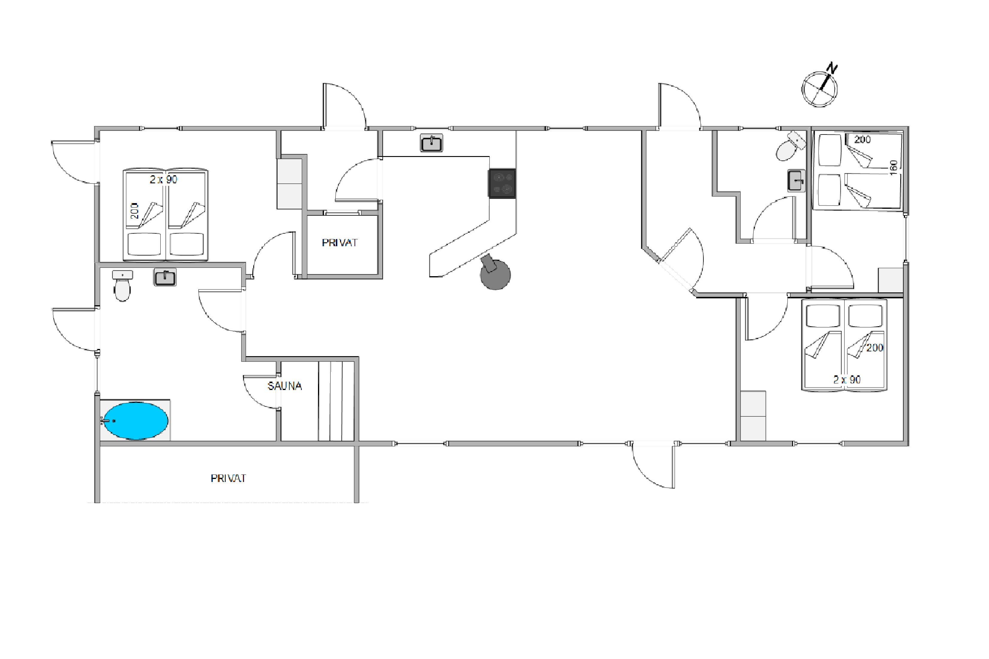 Sommerhuset byder også på gode muligheder for at komme helt ned i gear. På det ene af sommerhusets 2 badeværelser venter jer nemlig både en dejlig spa og sauna, hvor I kan blive forkælet med masser af afslapning i løbet af ferien, og på sommerhusets i alt 134 kvadratmeter er der 3 gode soveværelser med hver sin dobbeltseng, som I kan få jeres skønhedssøvn i på ferien. Sommerhusets 2 badeværelser er udstyret med gulvvarme, og jeres feriedage starter derfor helt uden kolde fødder.