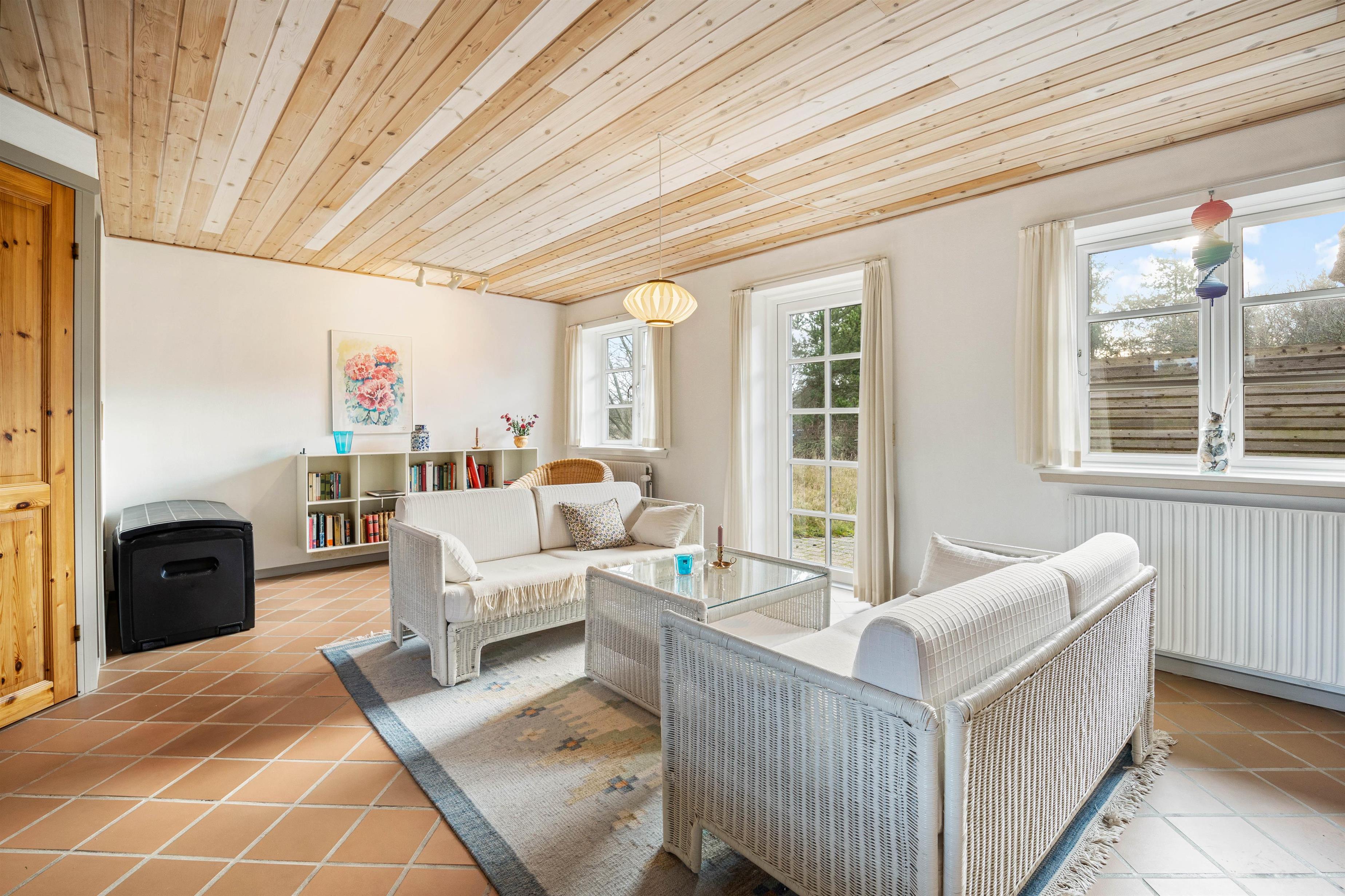I sommerhuset venter jer en lys og personlig indretning, som I hurtigt kommer til at føle jer godt tilpas i. Her udgør alrummet sommerhusets hjerte, hvor I kan samles til gode feriestunder med blandt andet film og spil, mens brændeovnen knitrer i baggrunden og spreder varme og stemning.