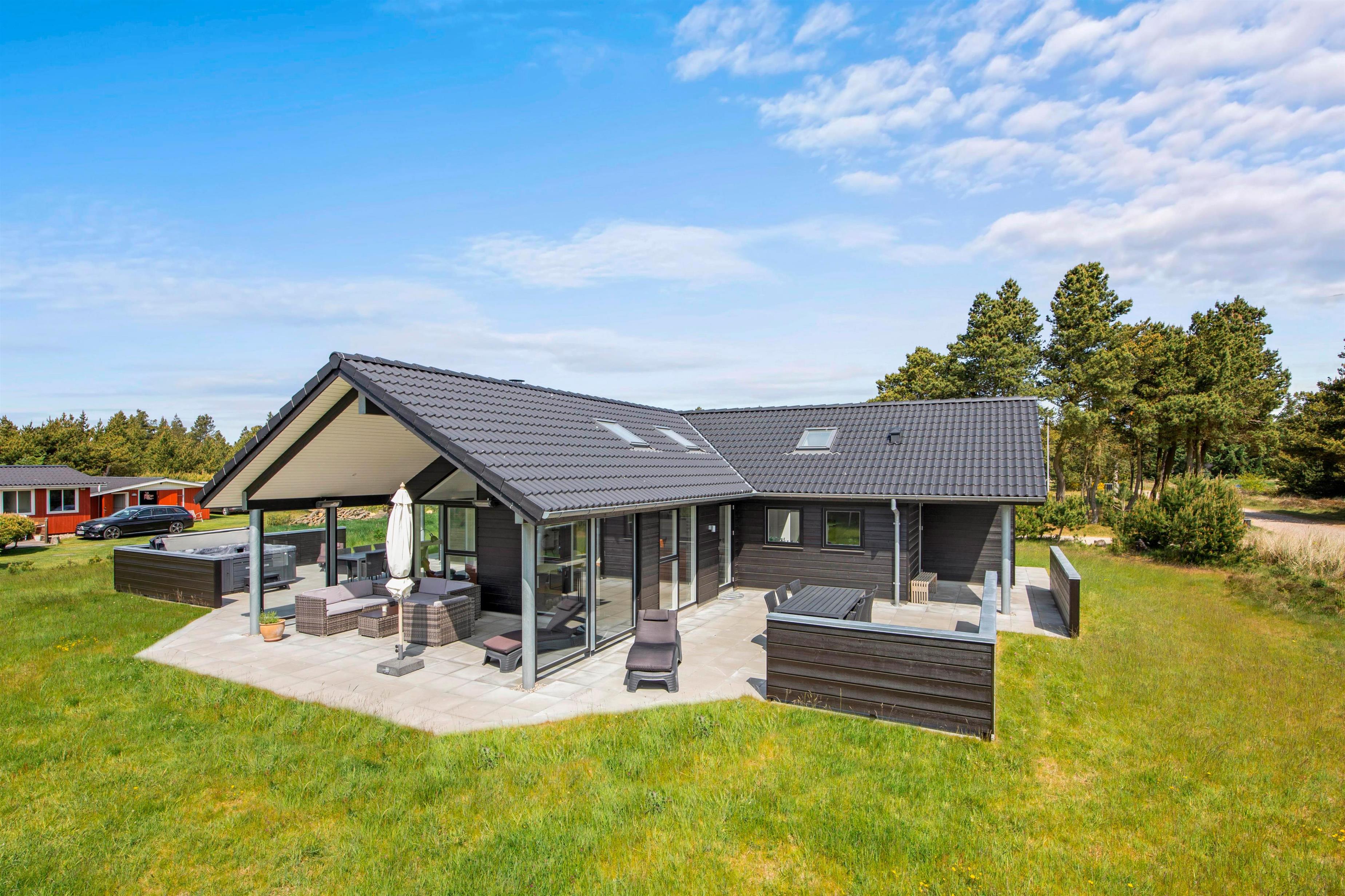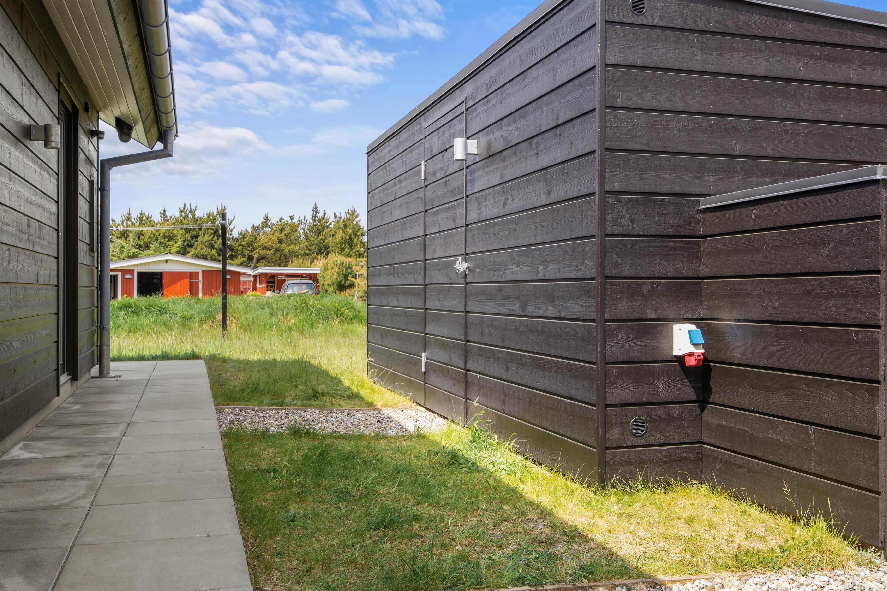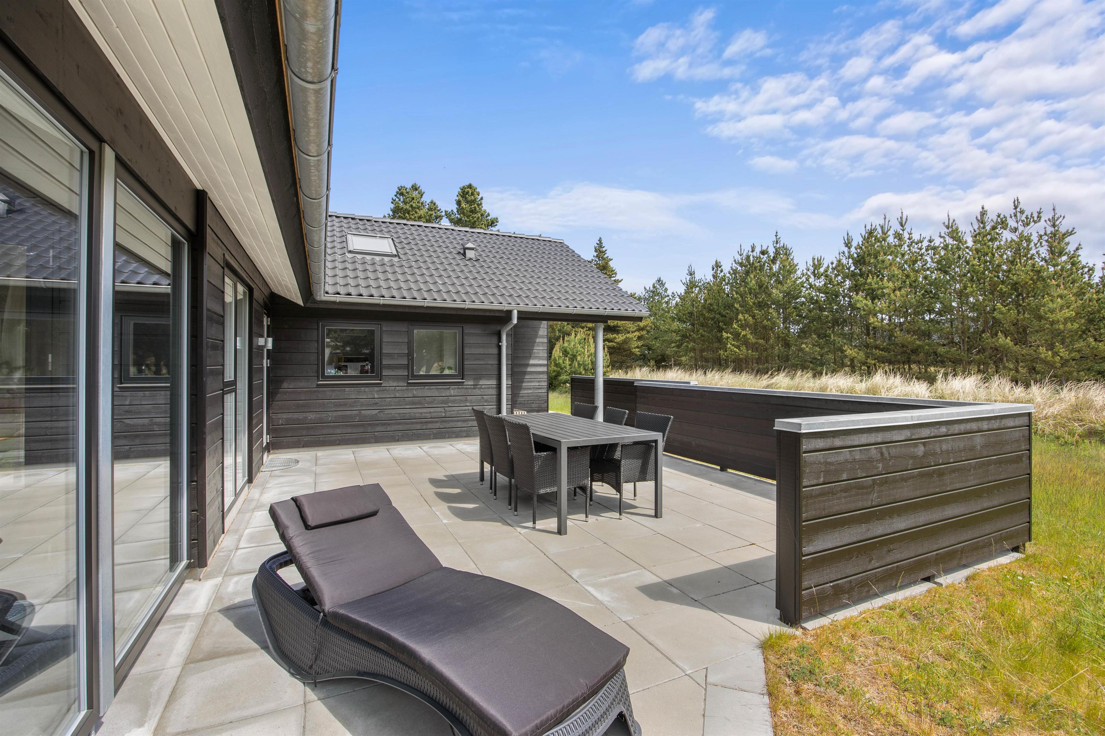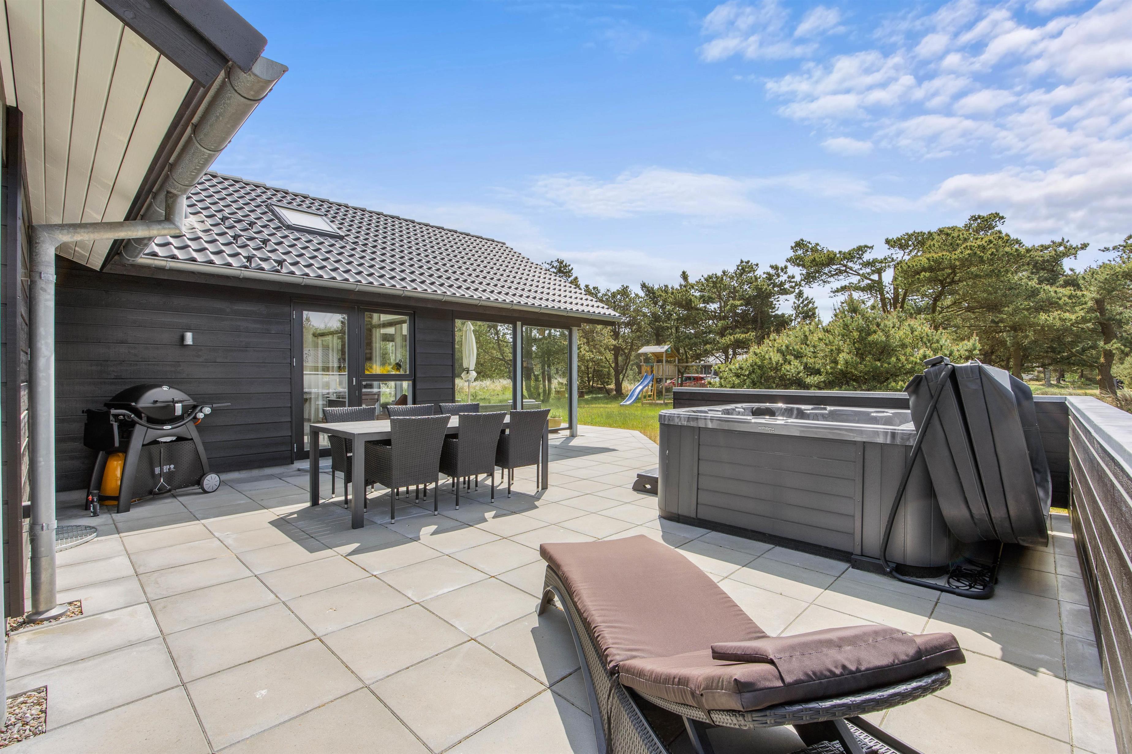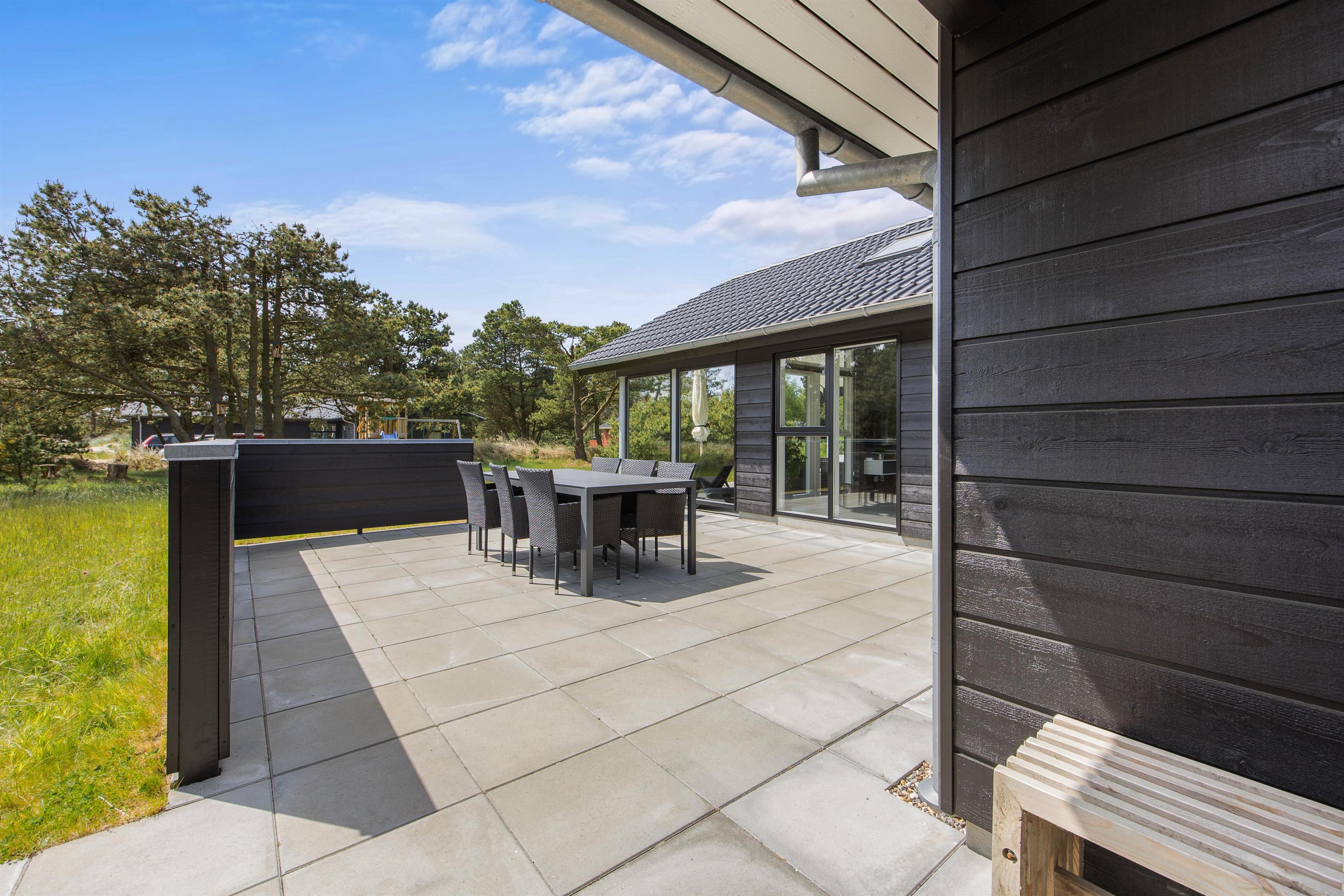 Omkring sommerhuset løber en 27 kvadratmeter stor terrasse, der både er afskærmet og delvist overdækket. Både når solen skinner, og vinden suser, kan I tilbringe jeres ferie på terrassen, hvor liggestole og havemøbler står klar til, at I kan slænge jer i dem.