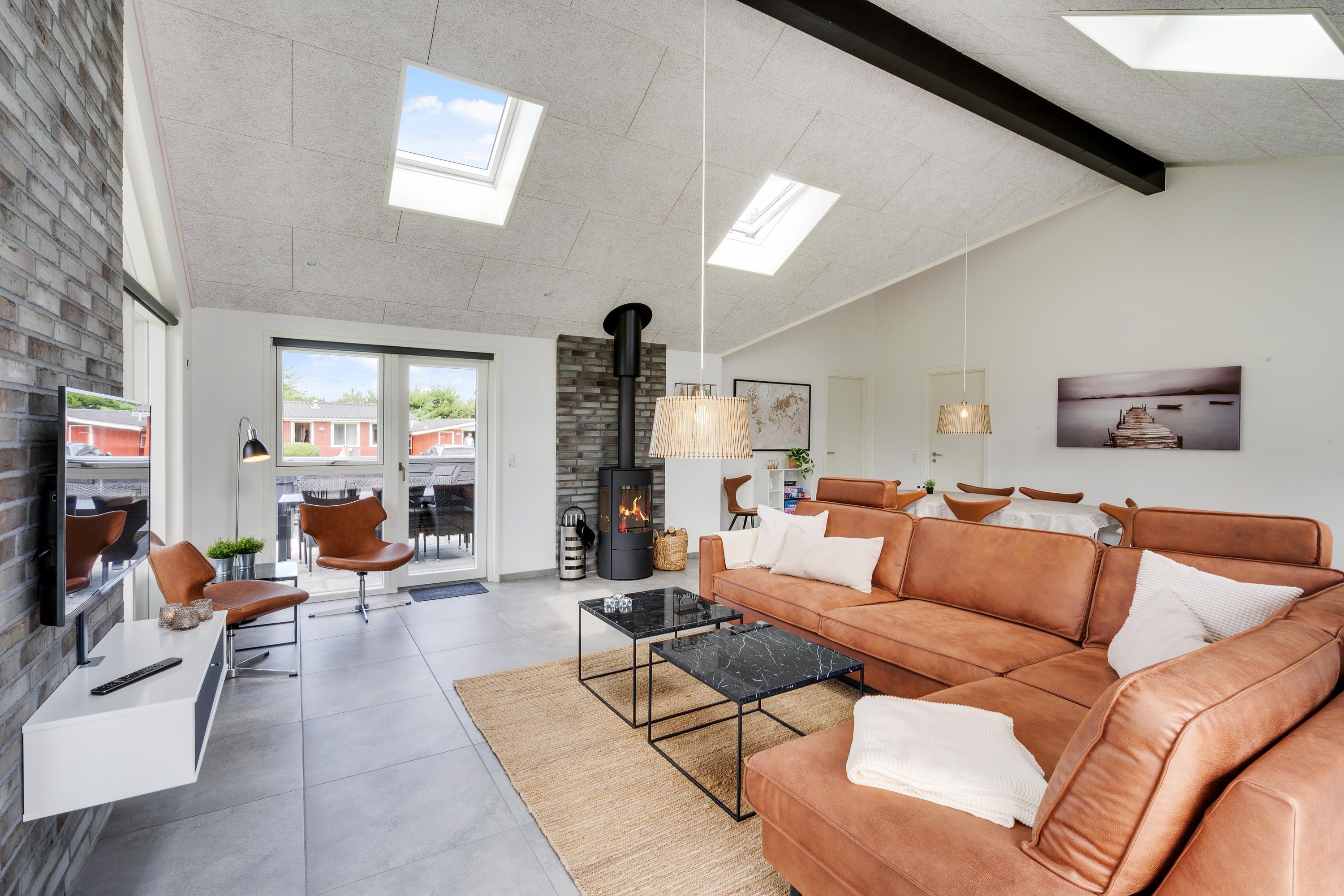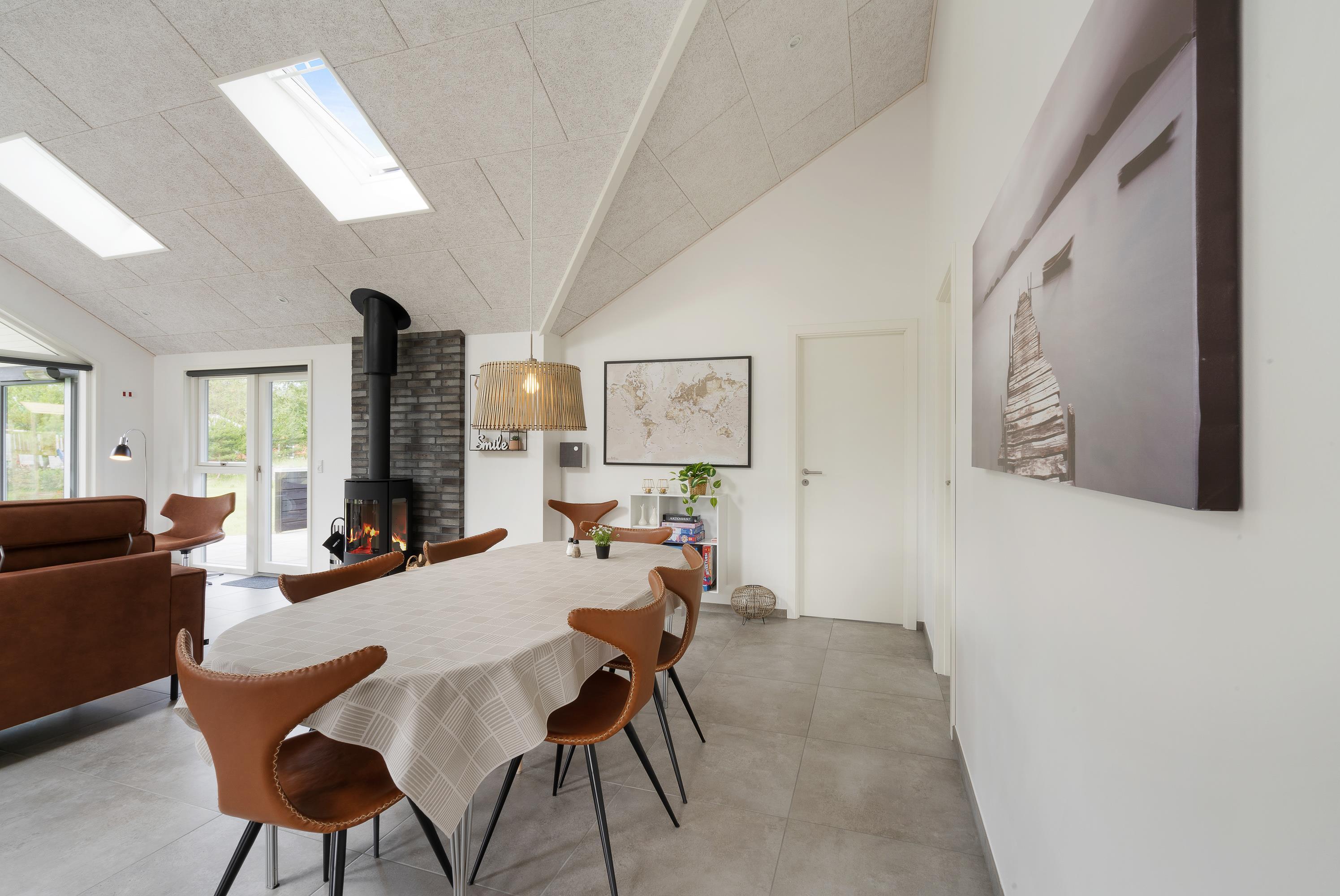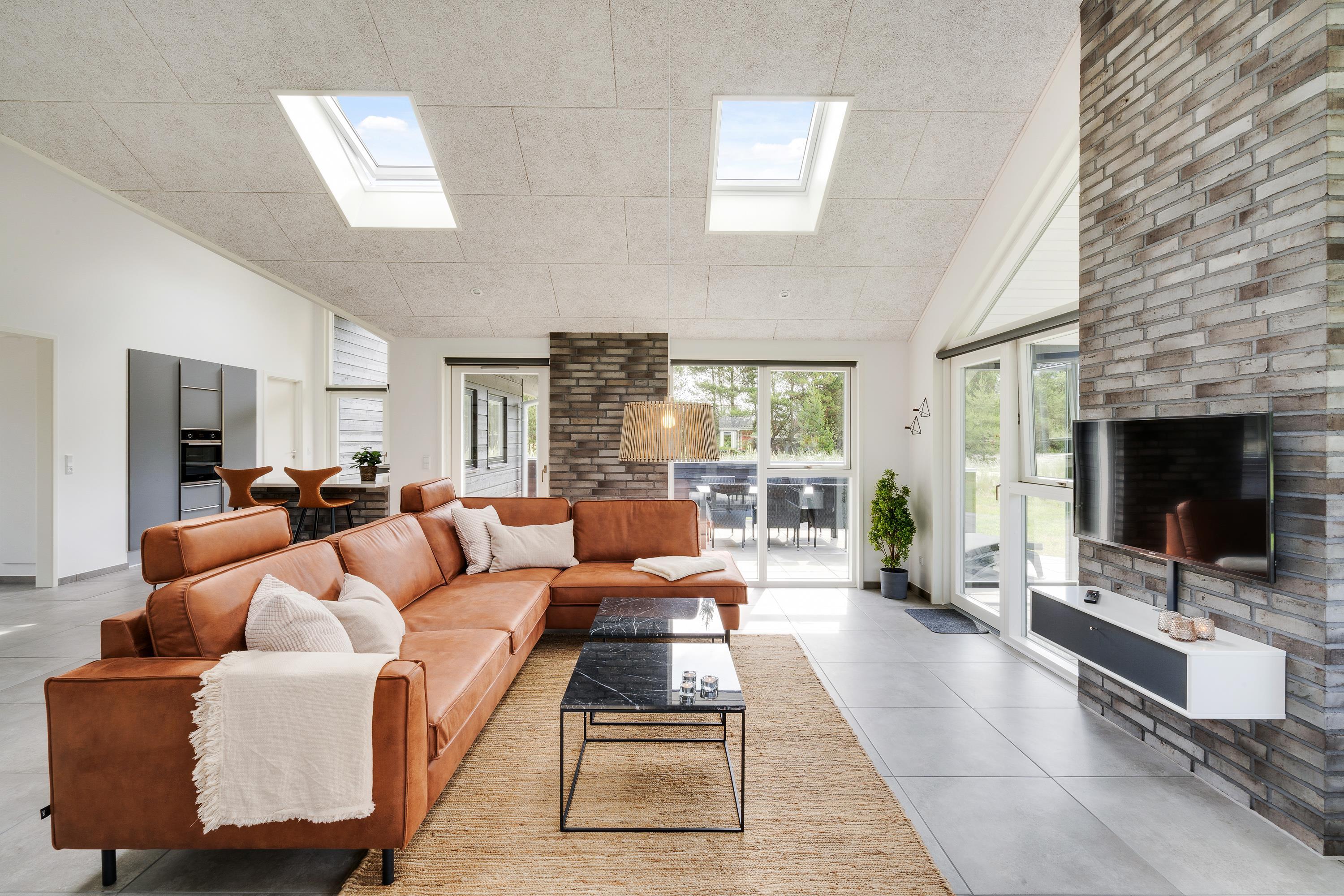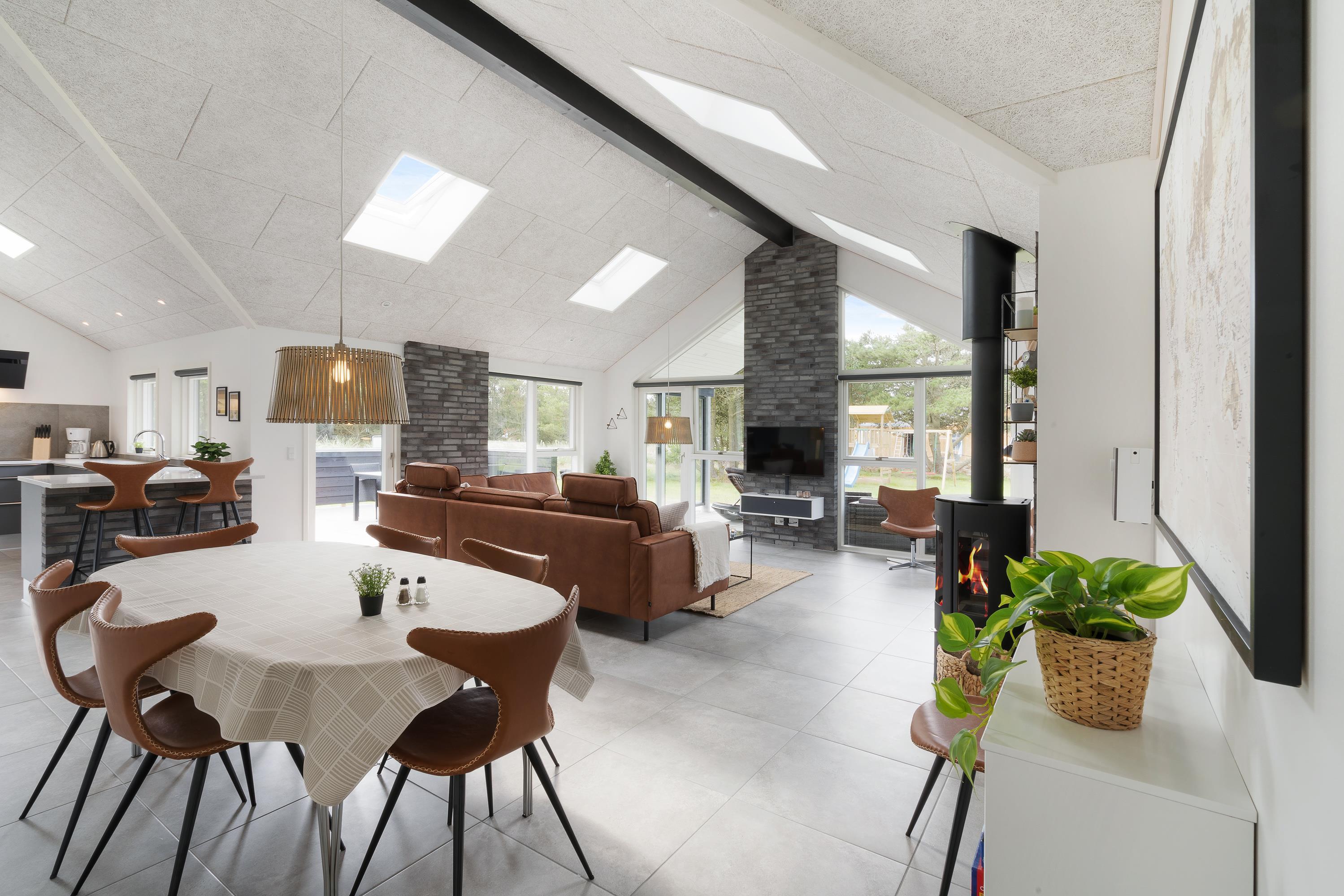Stuen ligger i åben forbindelse med køkken- og spiseafdelingen. Det åbne rum er det oplagte sted at tilbringe mange hyggelige timer sammen på ferien. I stuen har I Smart TV, hvor I via Chromecasten kan streame jeres yndlingsfilm om aftenen.