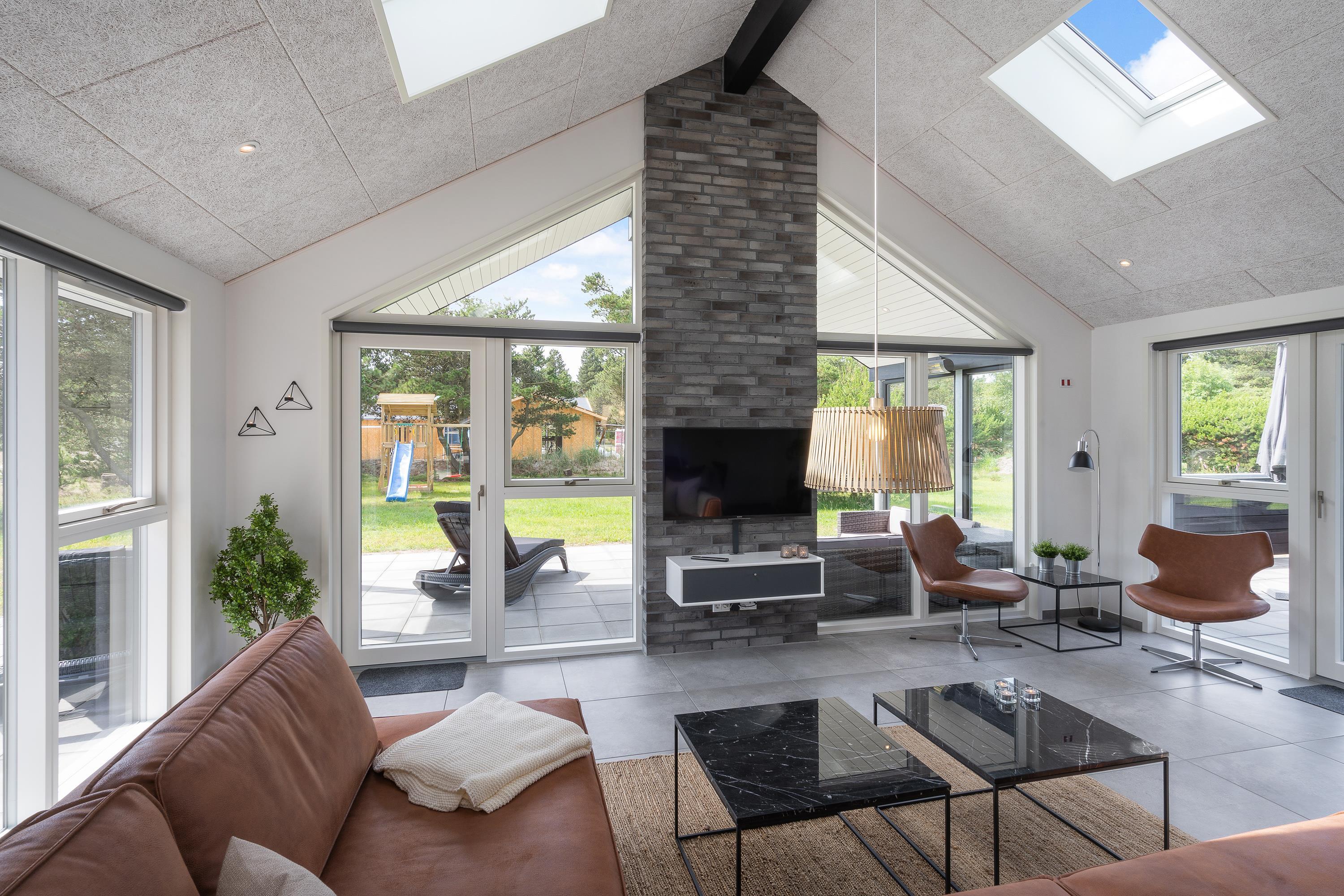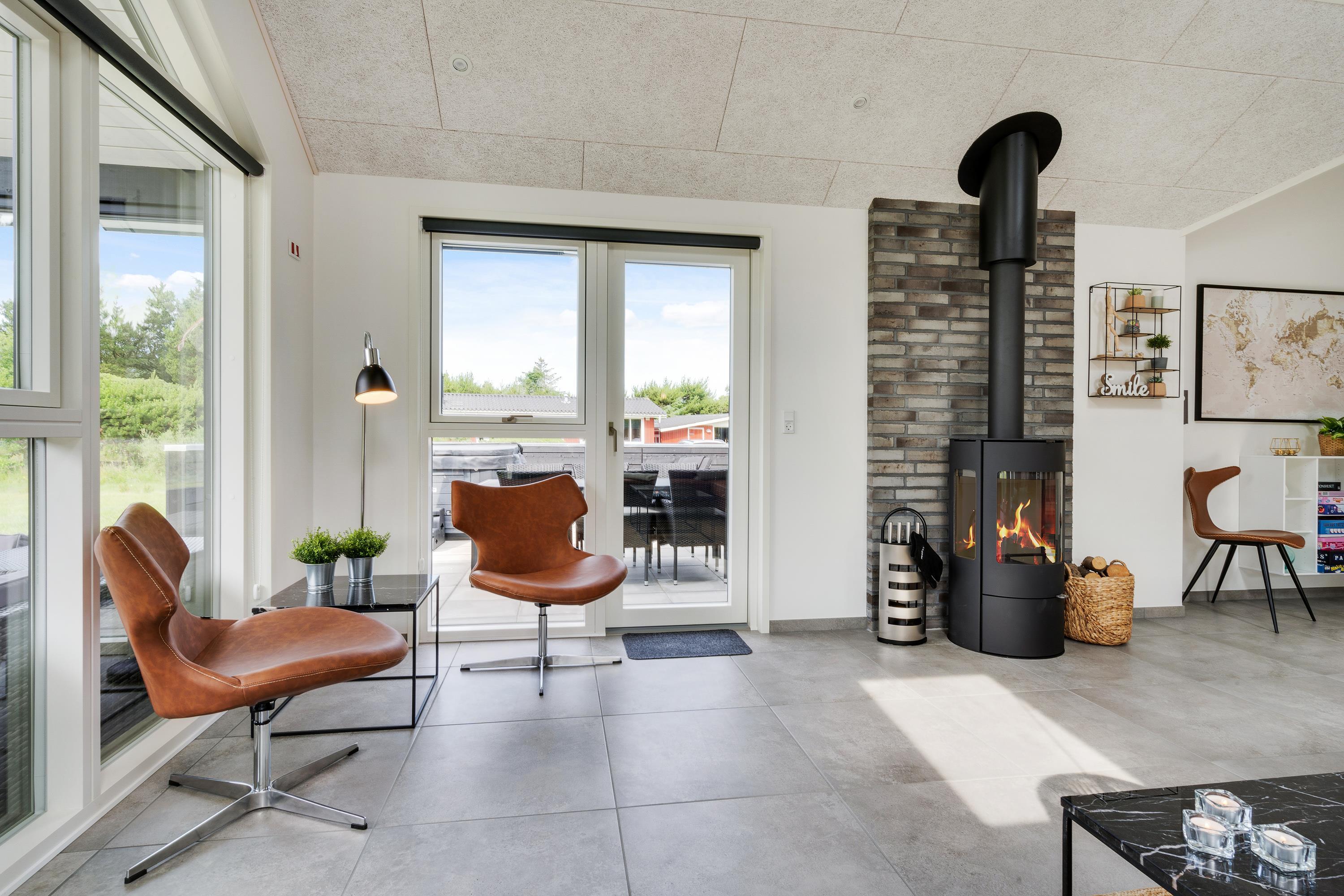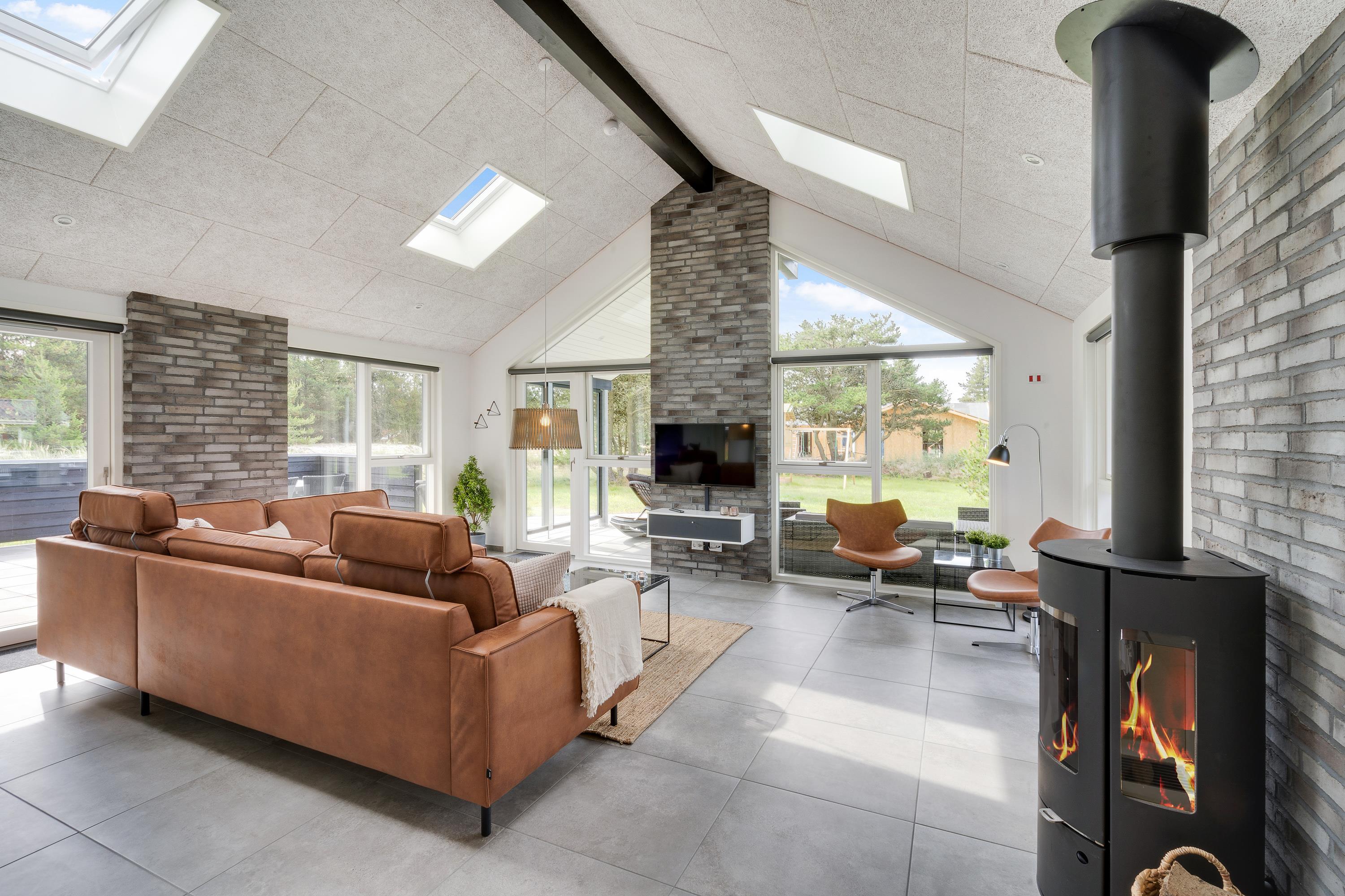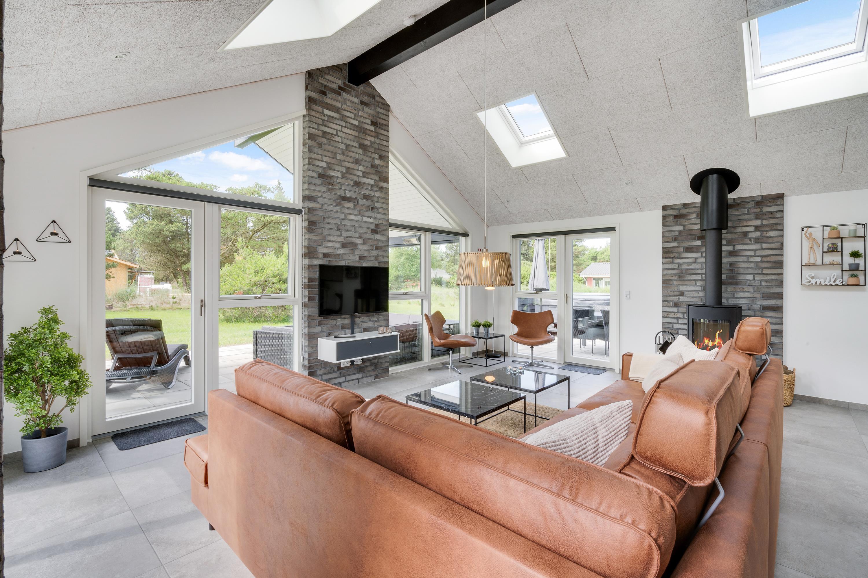 Stuen ligger i åben forbindelse med køkken- og spiseafdelingen. Det åbne rum er det oplagte sted at tilbringe mange hyggelige timer sammen på ferien. I stuen har I Smart TV, hvor I via Chromecasten kan streame jeres yndlingsfilm om aftenen.