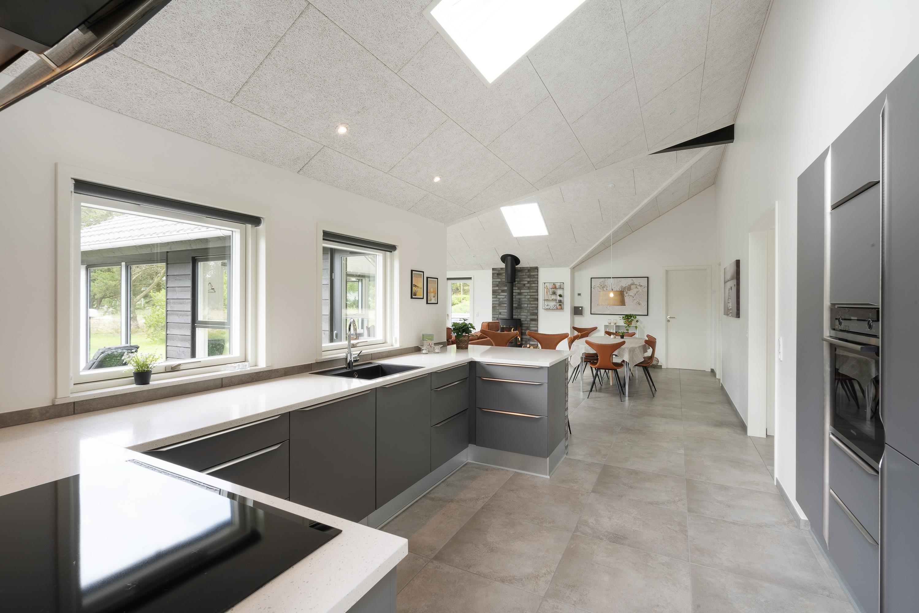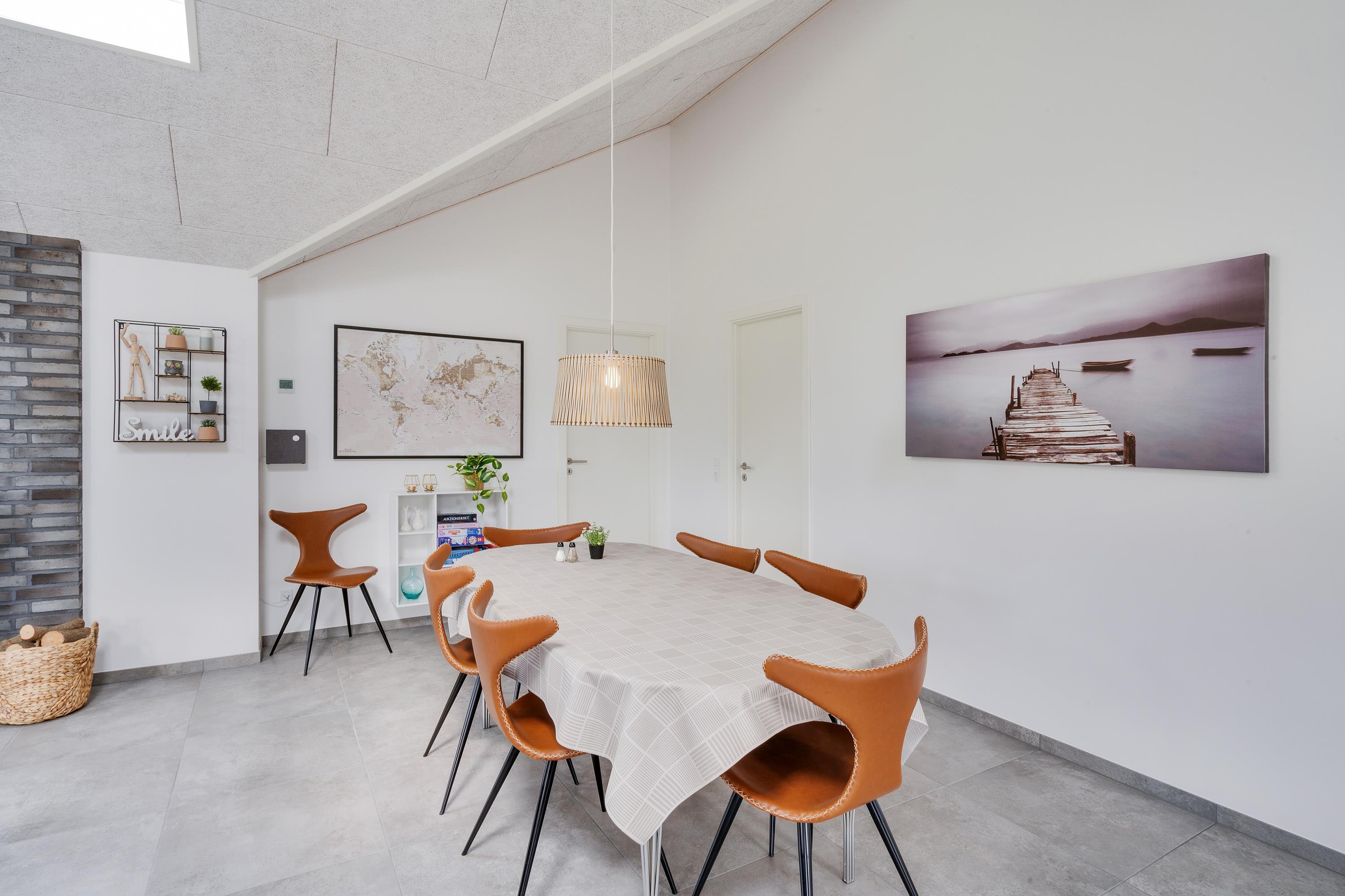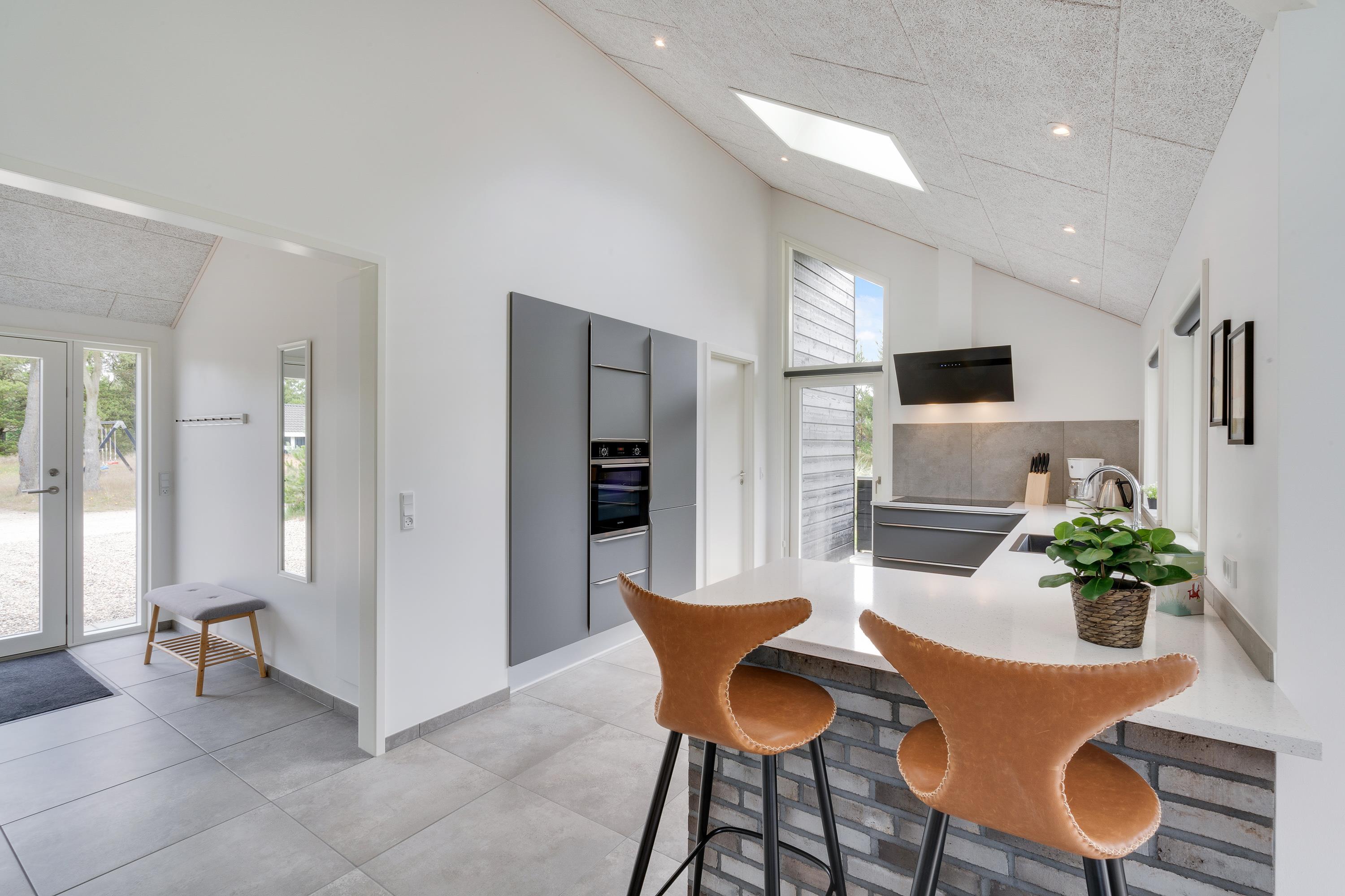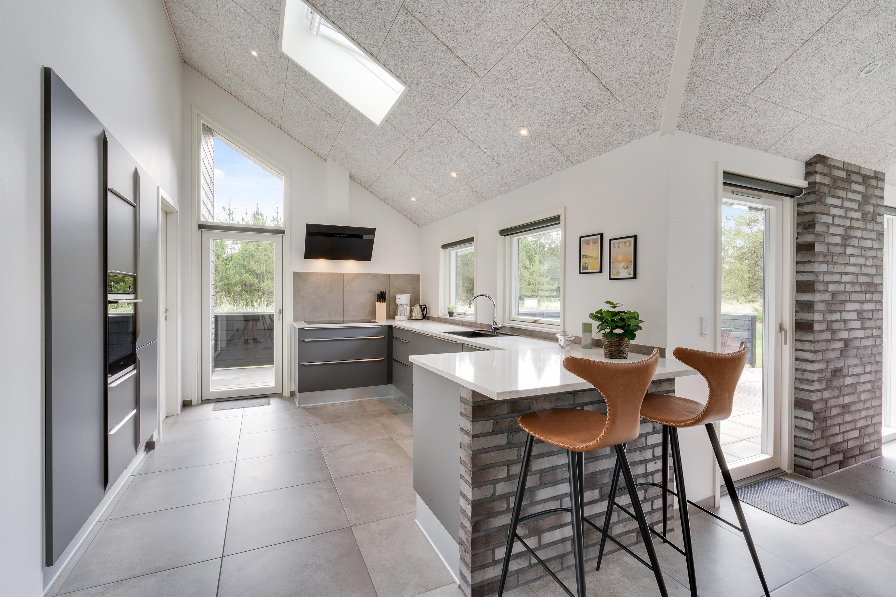 Stuen ligger i åben forbindelse med køkken- og spiseafdelingen. Det åbne rum er det oplagte sted at tilbringe mange hyggelige timer sammen på ferien. I stuen har I Smart TV, hvor I via Chromecasten kan streame jeres yndlingsfilm om aftenen.