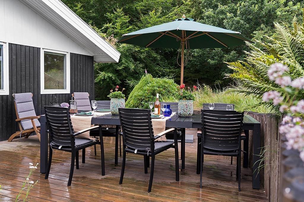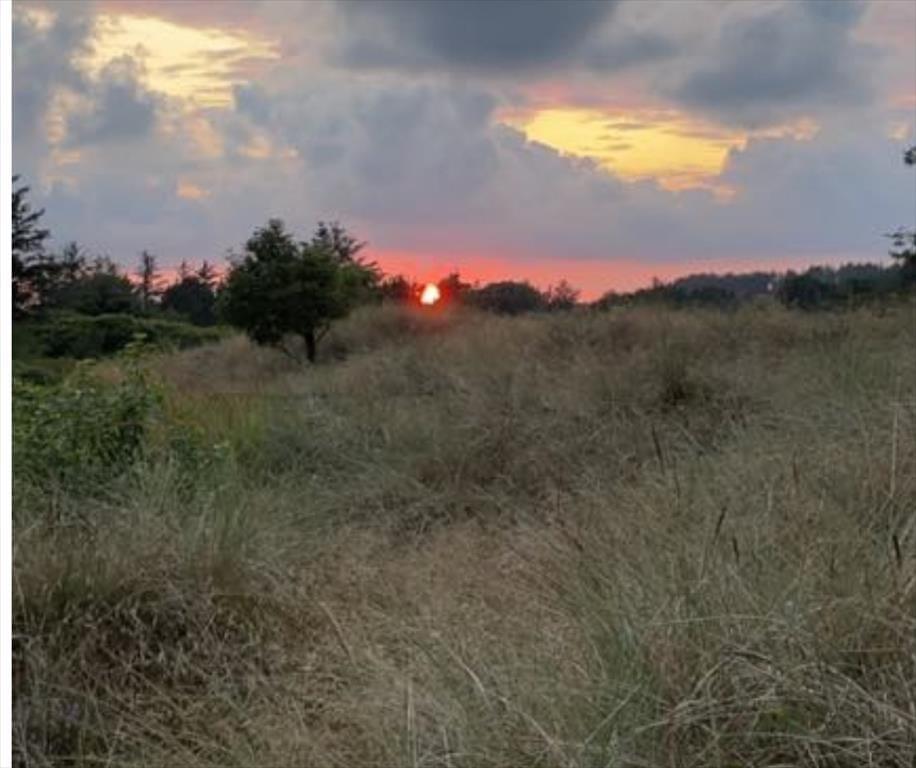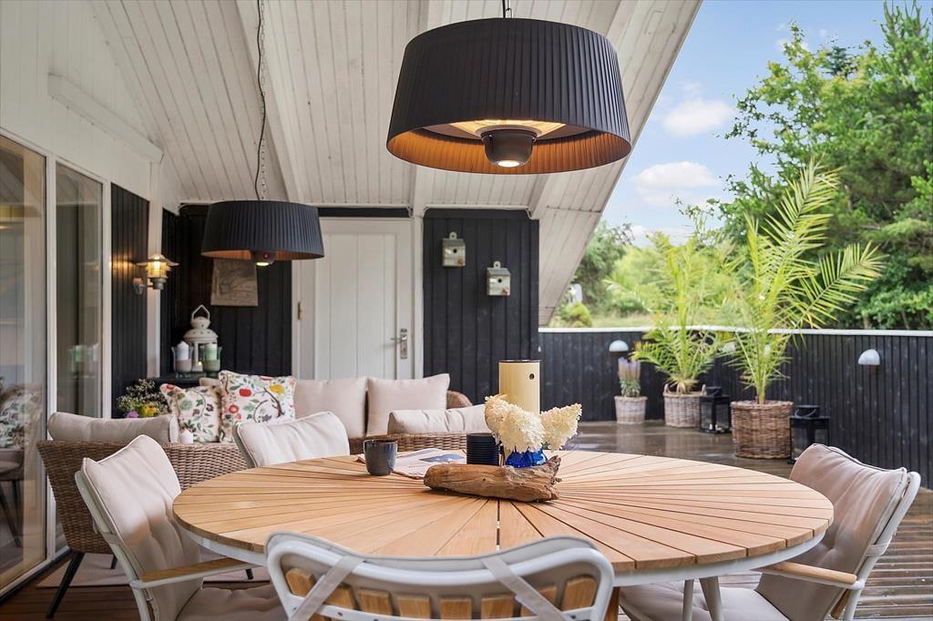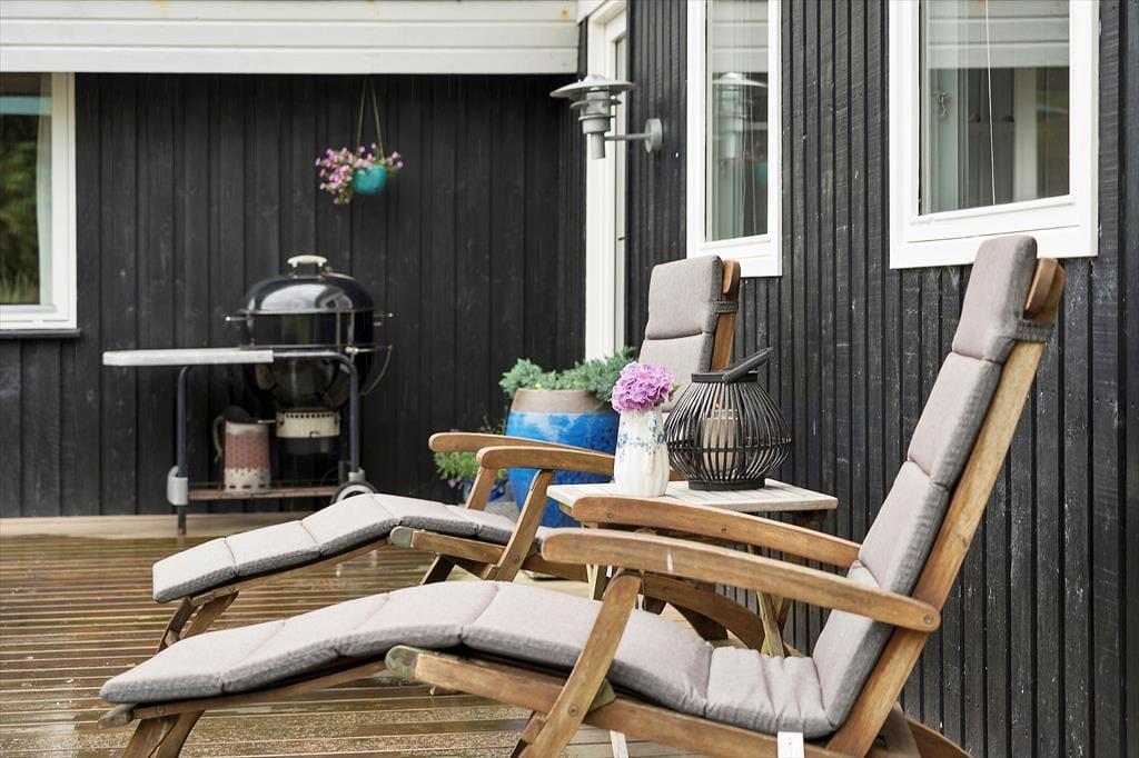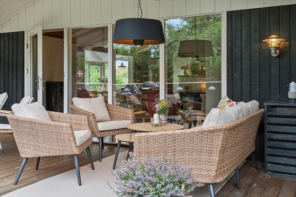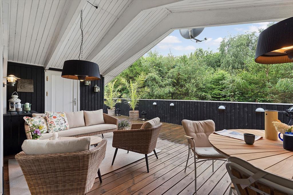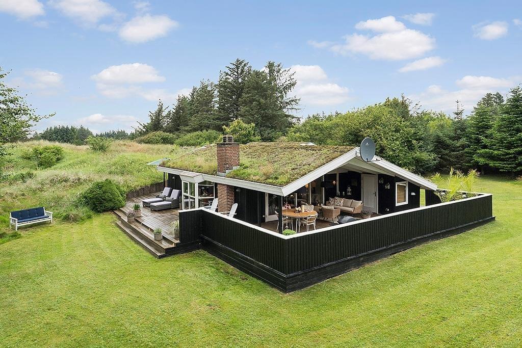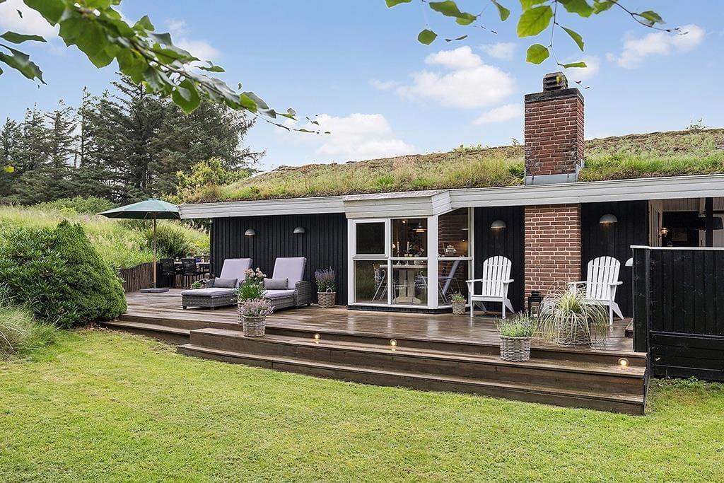 Sommerhuset ligger på en stor naturgrund med både træer og lav bevoksning. Der er en skøn udsigt over de grønne arealer og huset ligger helt ugeneret fra de omkringliggende huse. Sommerhuset er omgivet af terrasser med gode havemøbler og den overdækkede del har udgang direkte fra stuen. Selv på en vindfyldt dag er man sikker på en finde en god læ krog, hvor man kan læse et par kapitler i yndlingsbogen. En lille solterrasse på klittoppen giver jer en sjælden mulighed for at nyde aftenkaffen eller solen med 360 graders udsigt over det smukke klitlandskab.