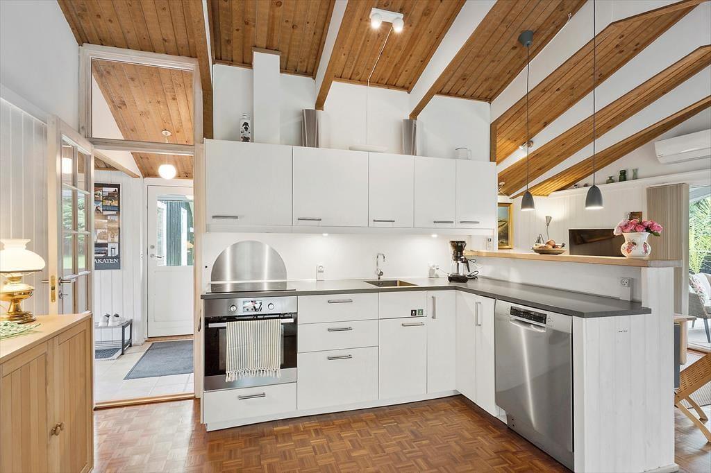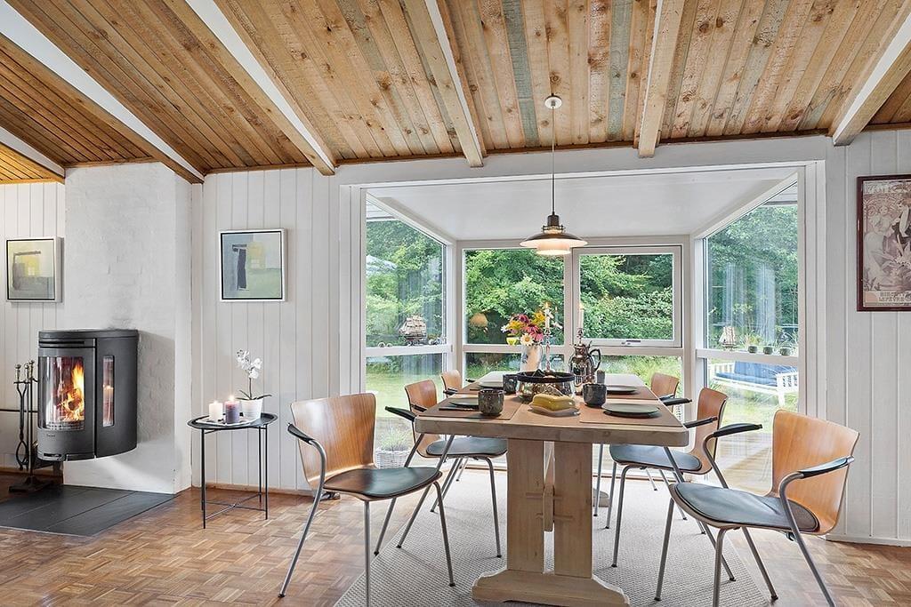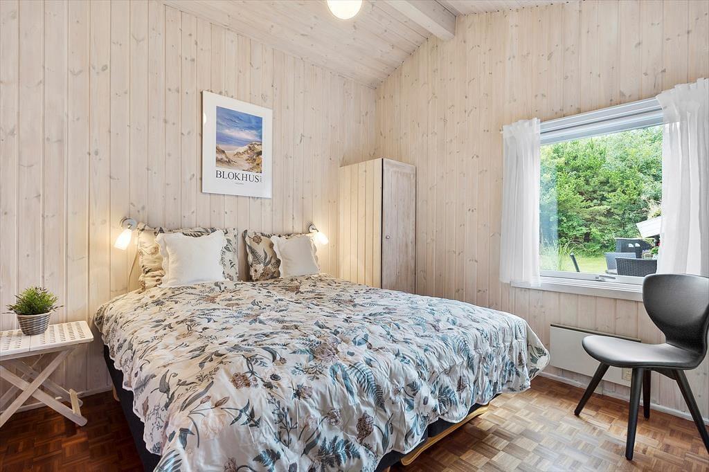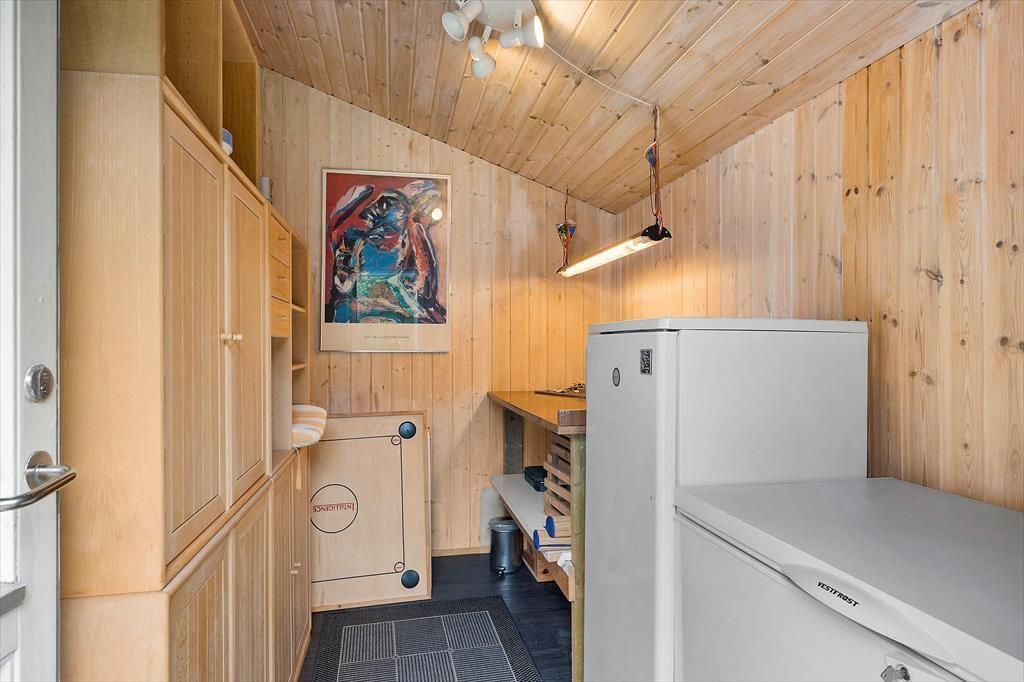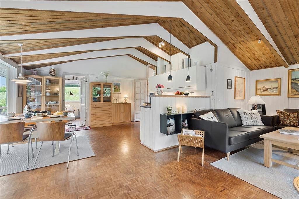 Sommerhuset er lyst og smagfuldt indrettet med moderne og komfortable møbler. De store vinduer giver et dejligt lysindfald og de hvidmalede vægge giver den helt rigtige sommerhusstemning. Køkkenet ligger i åben forbindelse til stuen og har nem adgang til bryggerset med ekstra bordplads. I stuen kan man tænde op i brændeovnen og ved måltiderne kan man fra spisepladsen nyde udsigten til naturen gennem glaskarnappen. Sommerhuset har et lyst og funktionelt badeværelse og tre soveværelser, alle med gode kvalitetssenge med forskellig hårdhed. Huset har både vaskemaskine, opvaskemaskine og trådløst internet, så alt er lagt til rette til en uforglemmelig og afslappende ferie i det nordjyske.