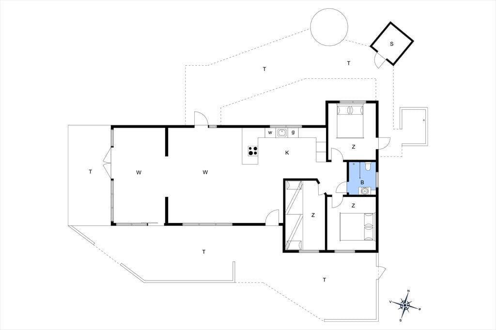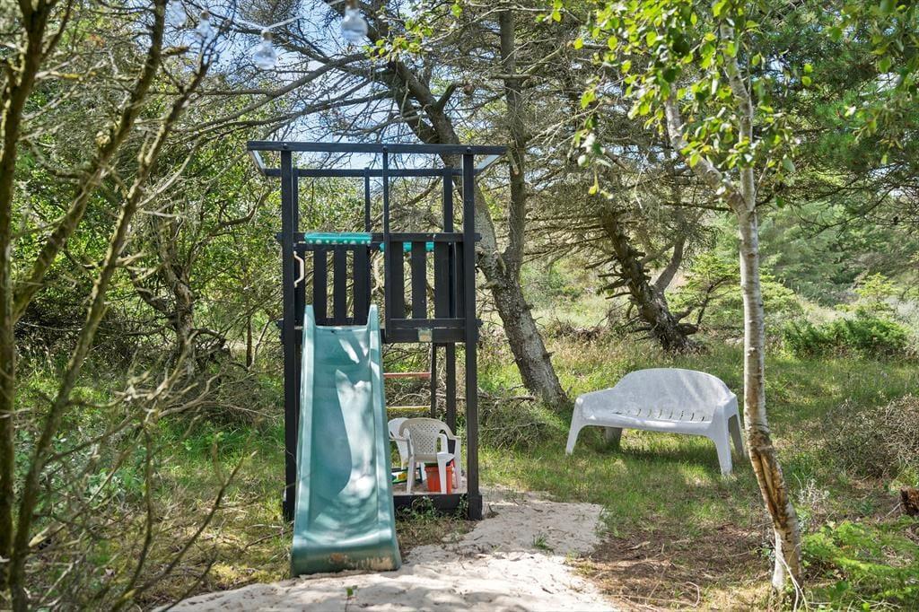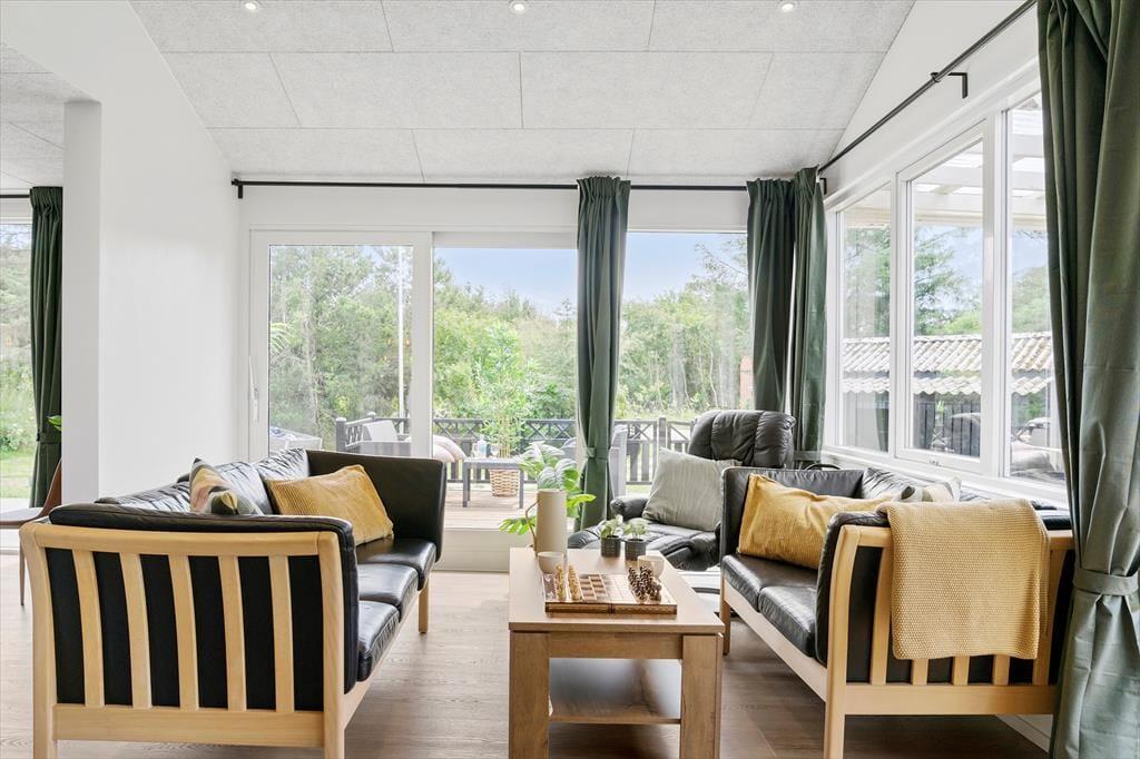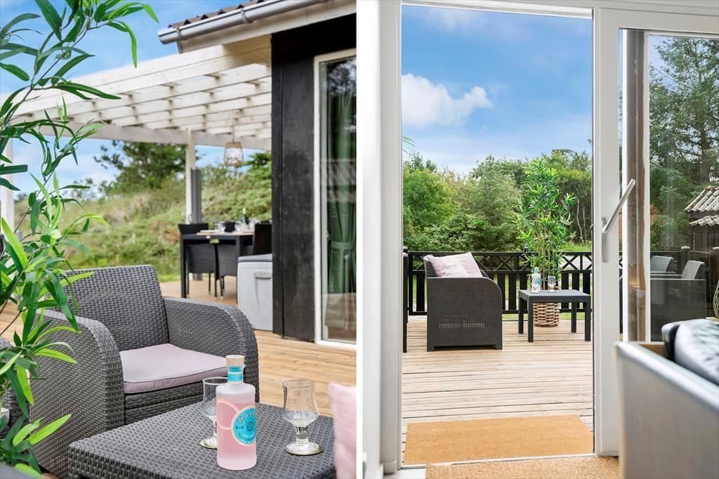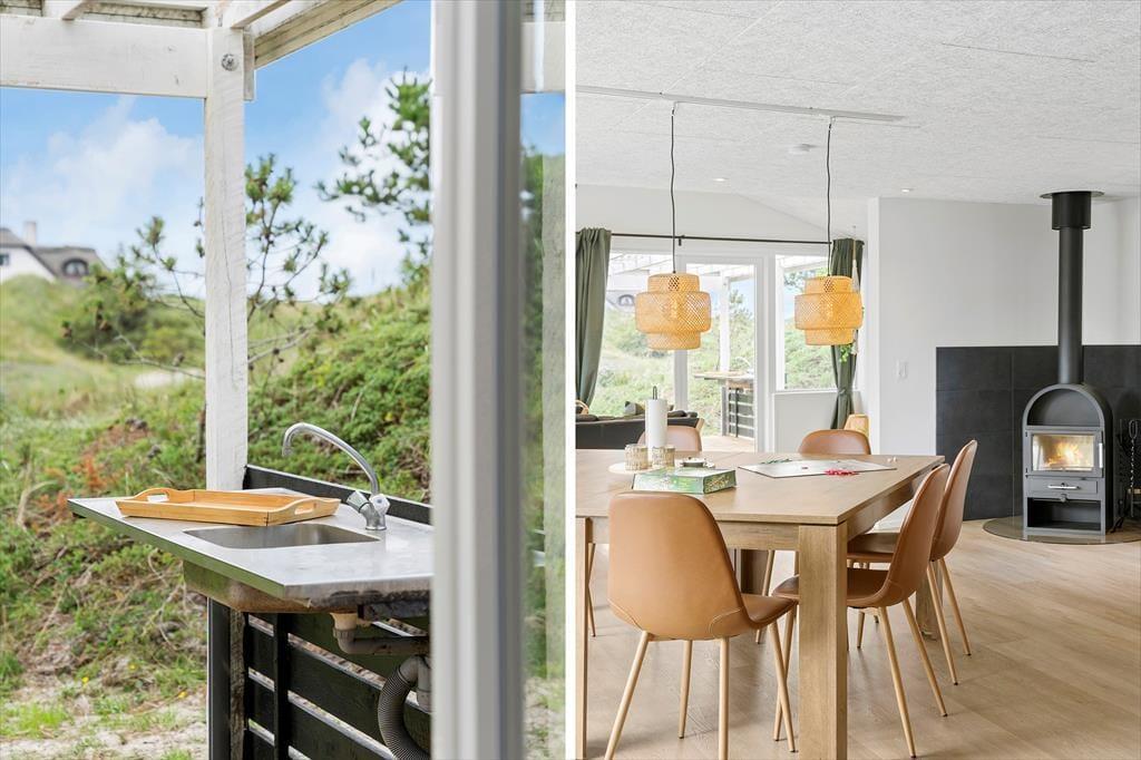Den store terrasse, der breder sig omkring huset, giver mulighed for at finde et solrigt eller skyggefuldt hjørne alt efter humør. Med både sauna, udebruser og koldtvandskar har du de bedste faciliteter til at forkæle dig selv udendørs. Efter en tur i saunaen kan du køle af i koldtvandskarret og dernæst lade dig forfriske med en bruser under åben himmel. Terrasseområdet er perfekt til at samles om grillen og nyde måltider sammen eller slappe af i en liggestol, mens du nyder solen og den friske luft. Med så mange muligheder for at tilbringe tid udenfor, bliver det nemt at få ferieoplevelsen, du har drømt om.