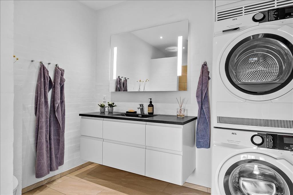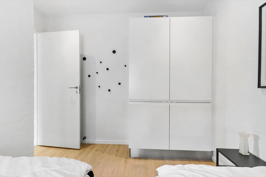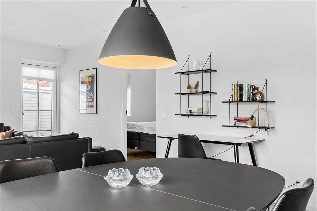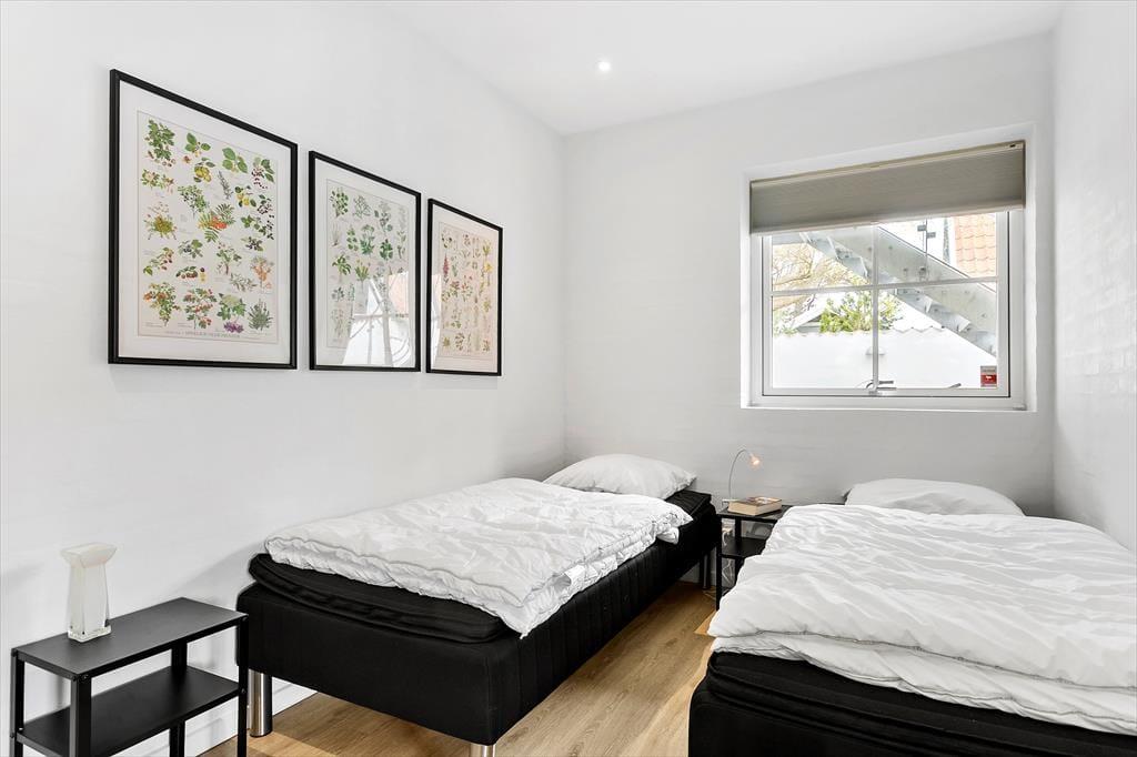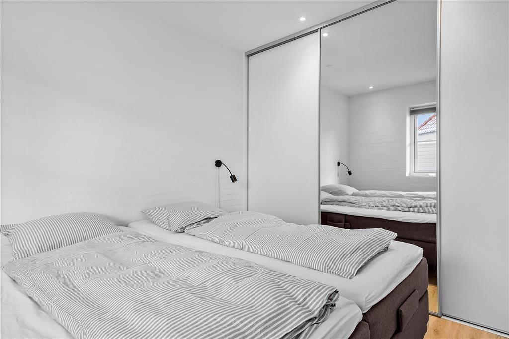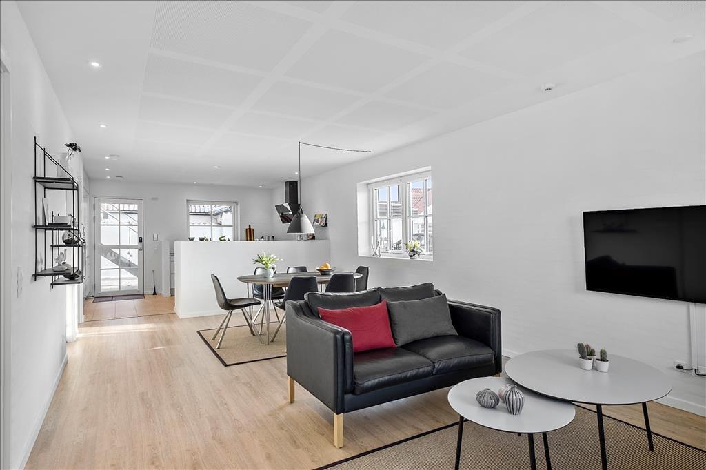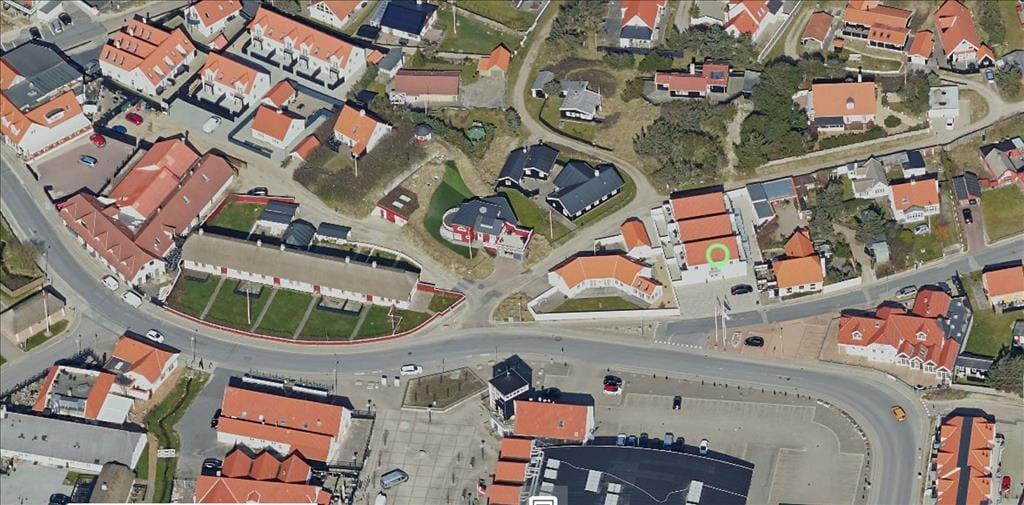 Fra opholdsrummet er der adgang til to terrasser, hvoraf den ene er delvist overdækket og vender mod en lukket gårdhave – en privat oase midt i byen. Her kan I nyde både morgen- og aftensol. Beliggenheden er ideel med kort afstand til både butikker, restauranter og den brede sandstrand ved Vesterhavet.