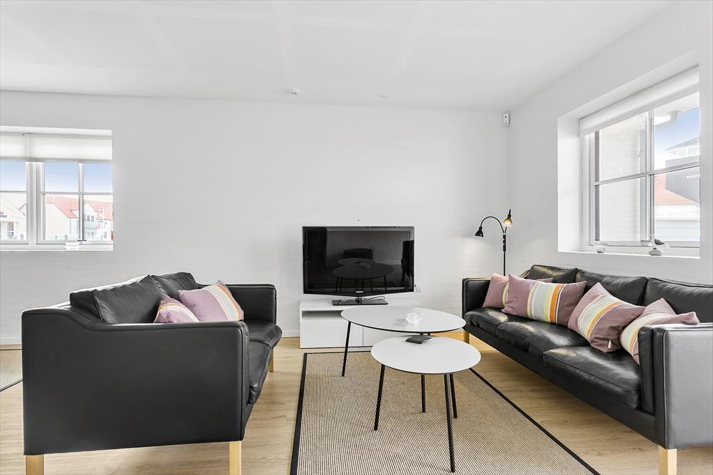 Lys og lækker ferielejlighed midt i Blokhus med egen p-plads, to terrasser og kort afstand til Vesterhavet.