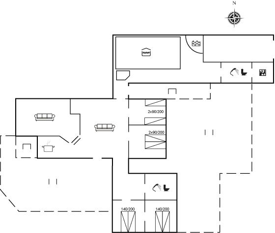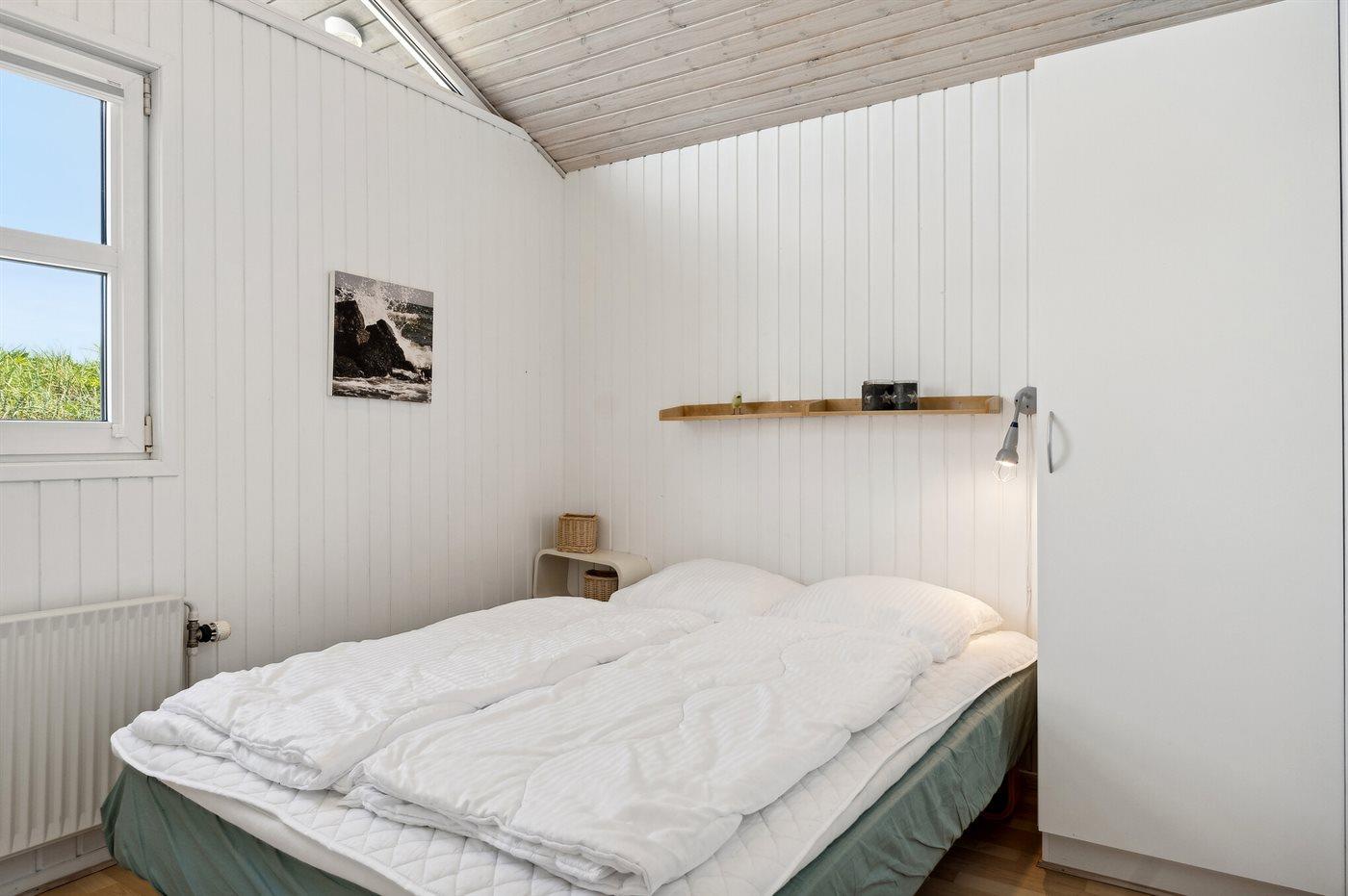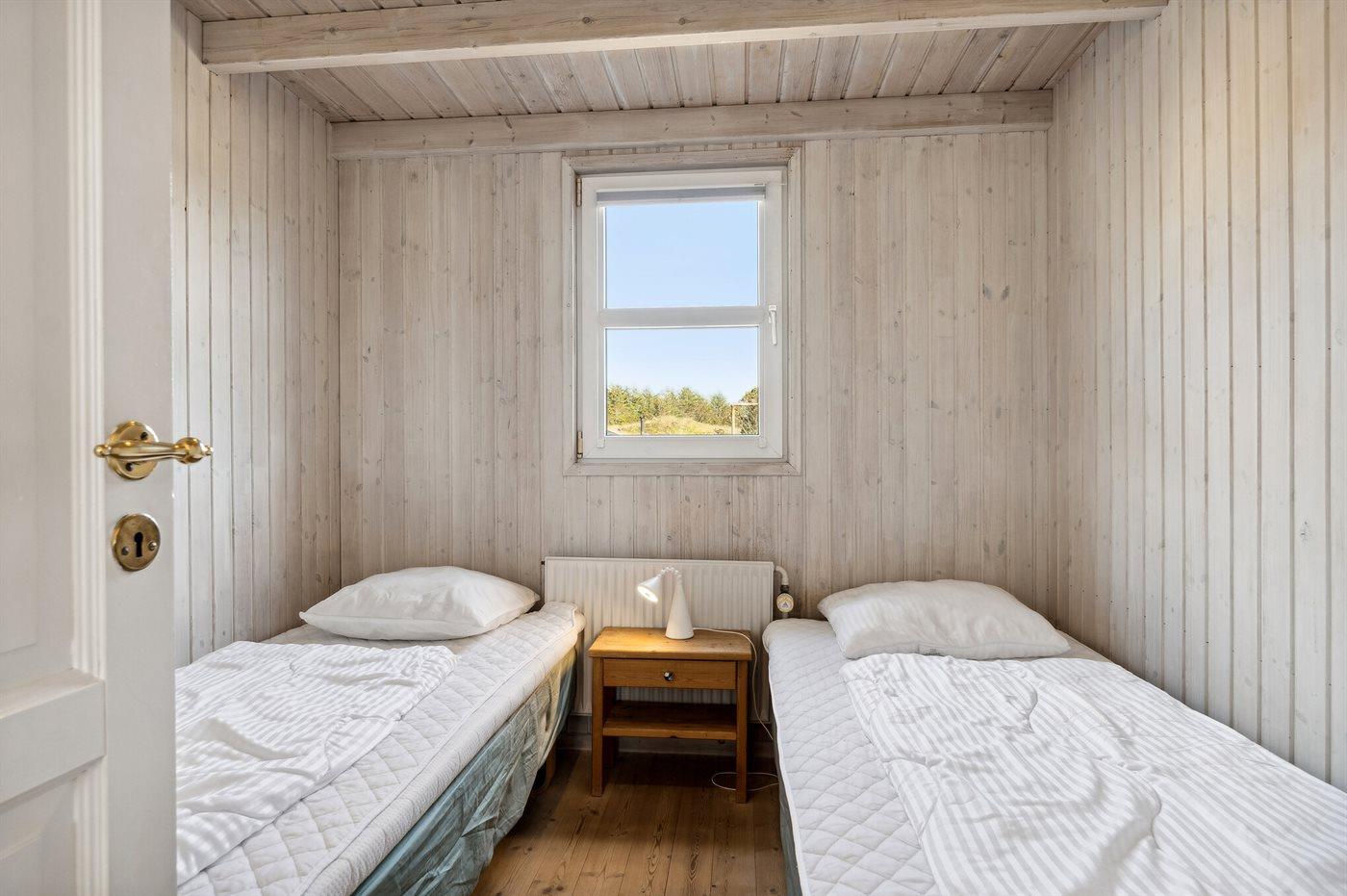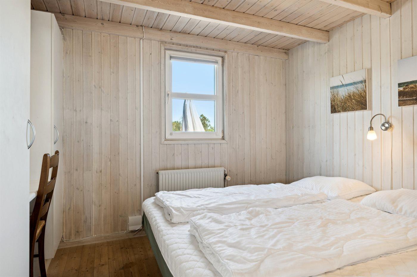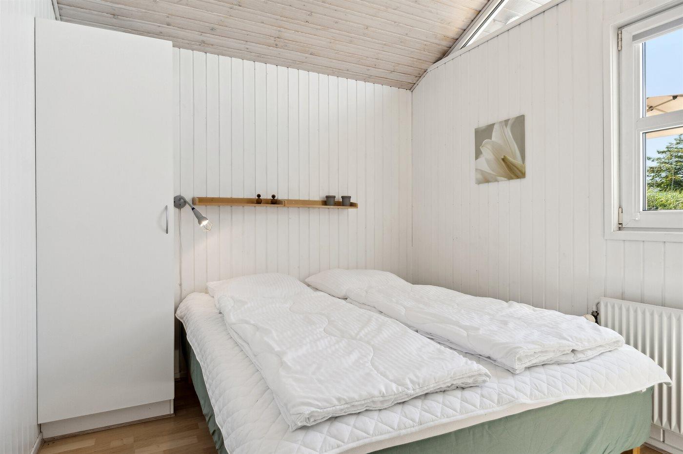 Der er i alt 4 soveværelser. Sovepladserne fordeler sig på: 6 sovepladser i dobbeltsenge. 2 sovepladser i enkeltsenge.