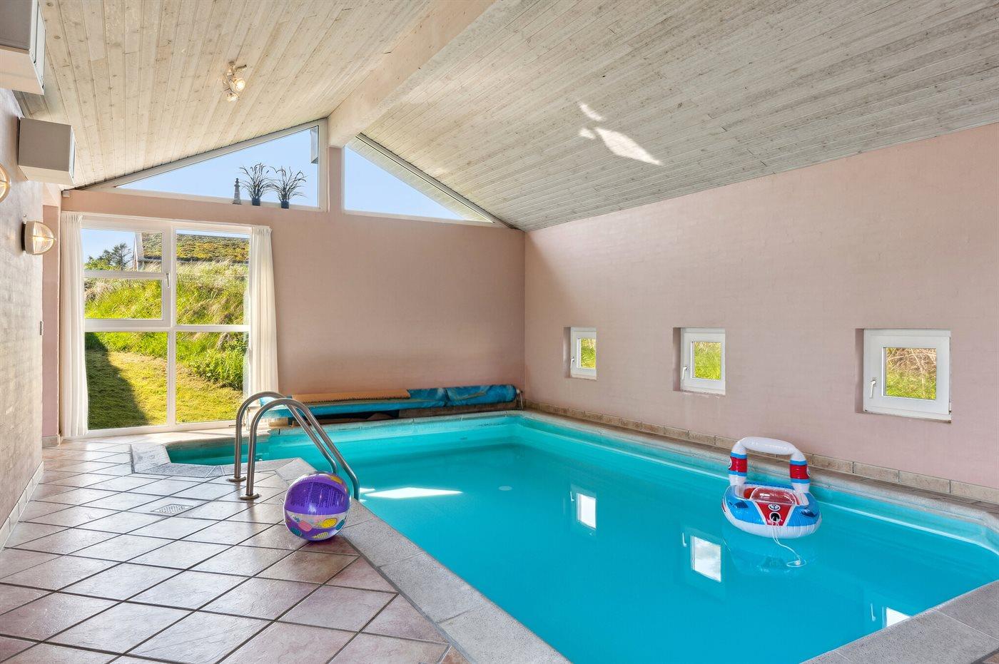 I den indendørs swimmingpool er der mulighed for leg og hyggeligt samvær. Swimmingpoolen måler op til 3,5 m i bredden, 5 m i længden og den er op til 1,25 m dyb. Vandet er mellem 24 og 28° C varmt. Swimmingpoolen har modstrømsanlæg. Til de små er der desuden børnepool.