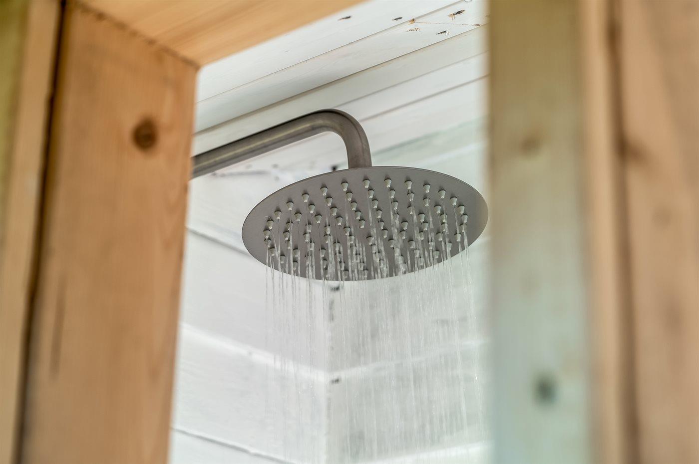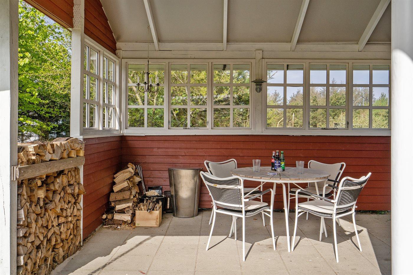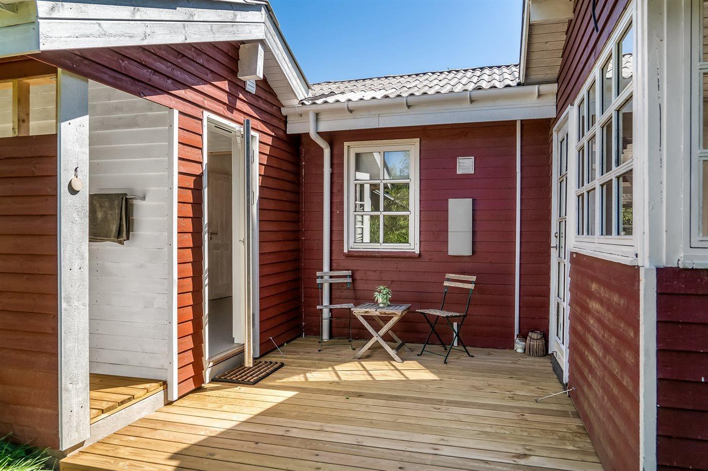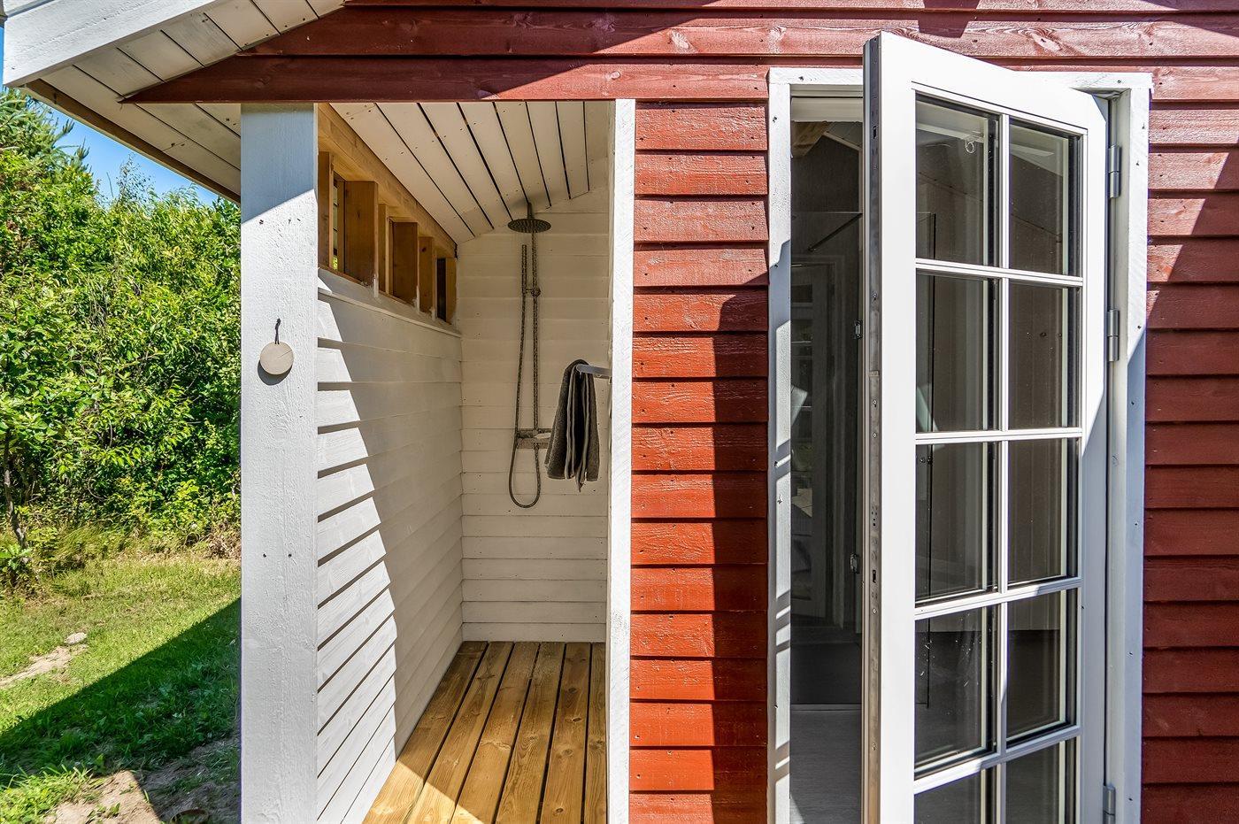 Til huset hører et dejligt og til dels overdækket terrasseareal samt udendørs bruser (ugenert placeret).