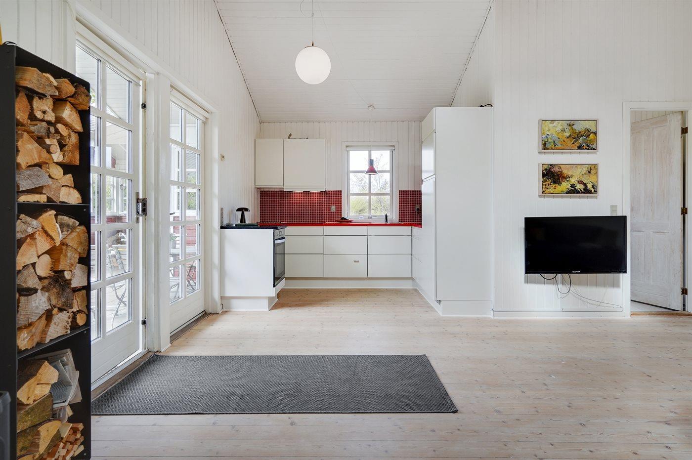 Køkkenet er udstyret med 1 køleskab. Der er 4 keramiske kogeplader, varmluftovn, mikrobølgeovn samt opvaskemaskine.
