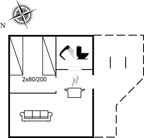 egner sig til 2 personer. Ferieboligen er på 30 m² og er bygget i 2009. Det er ikke tilladt at medbringe husdyr. Ferieboligen har vaskemaskine. Frysekapacitet på 25 liter.