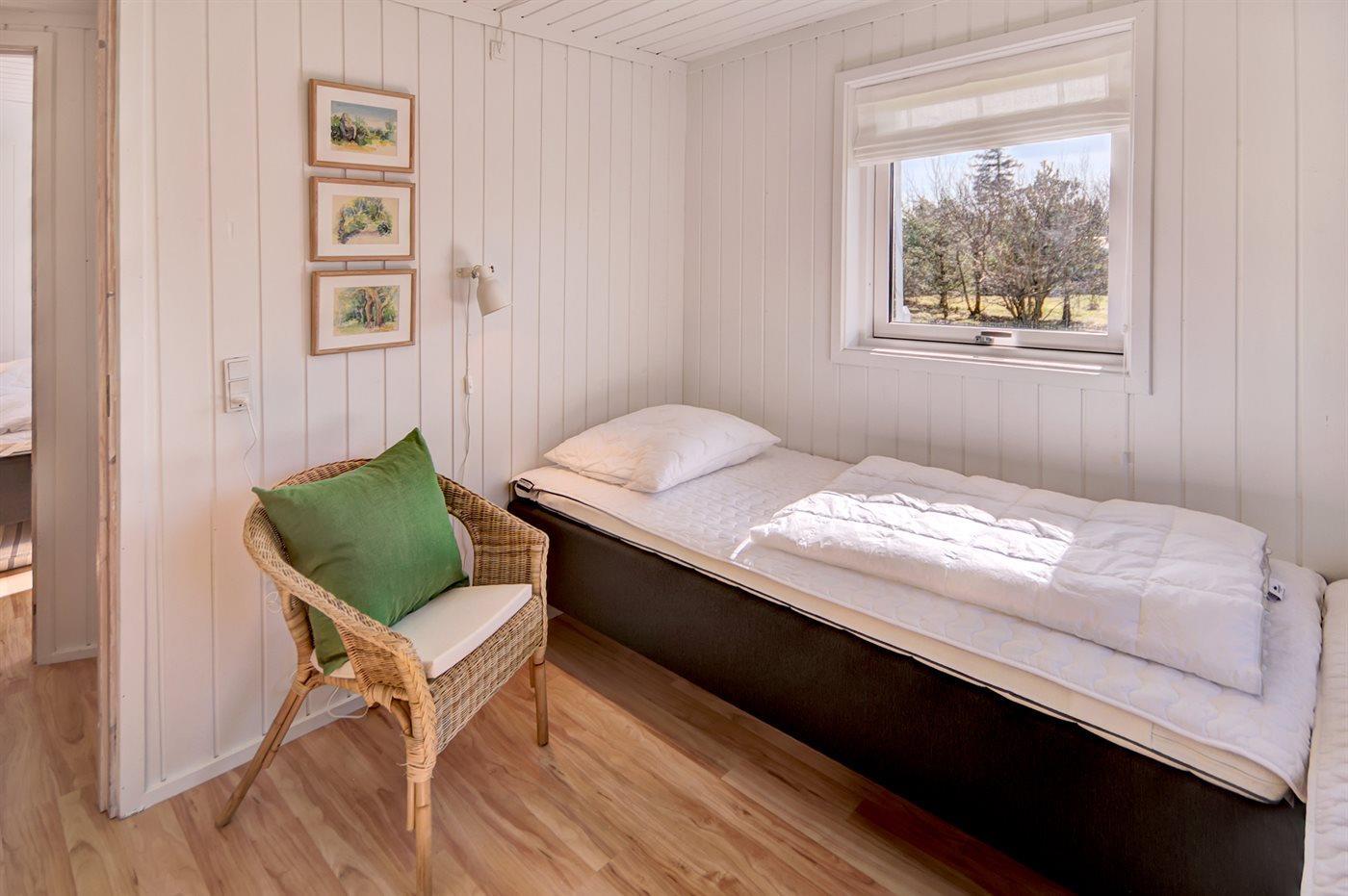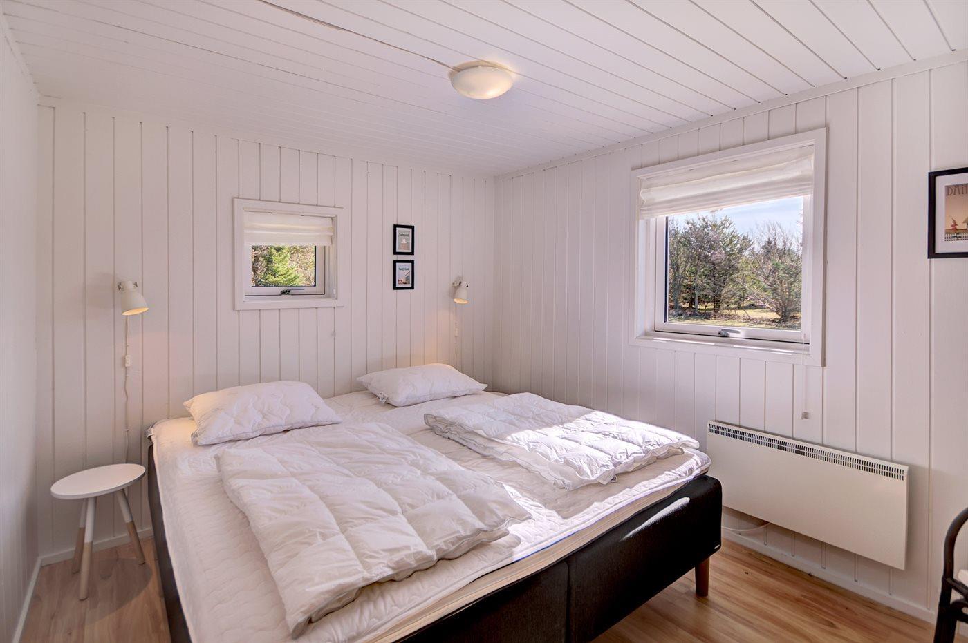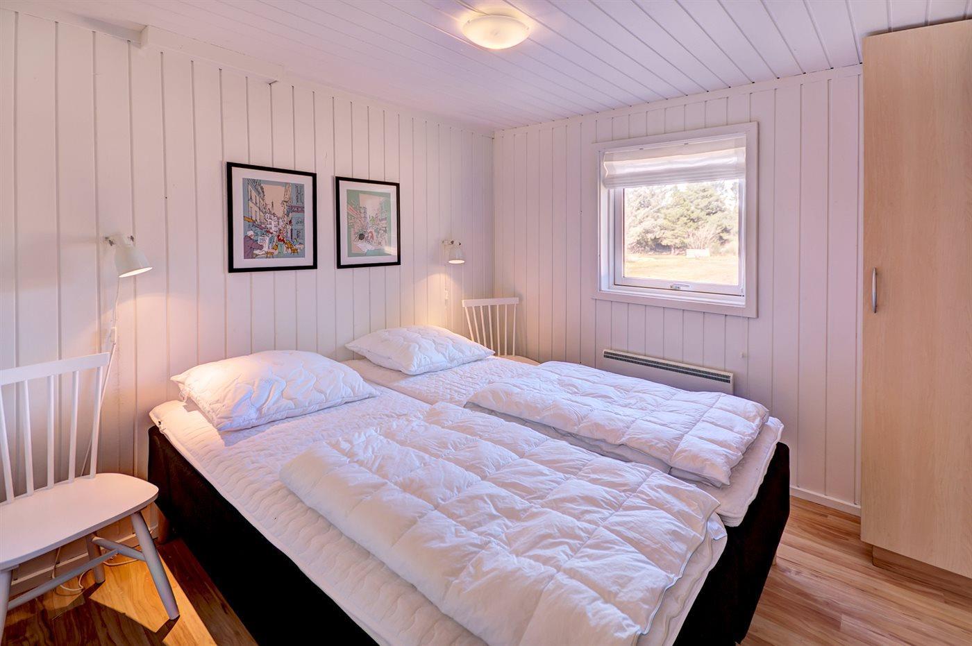 Der er i alt 4 soveværelser. Sovepladserne fordeler sig på: 6 sovepladser i dobbeltsenge. 2 sovepladser i enkeltsenge. Derudover er der 1 stk. barneseng.