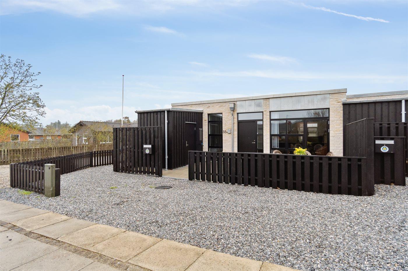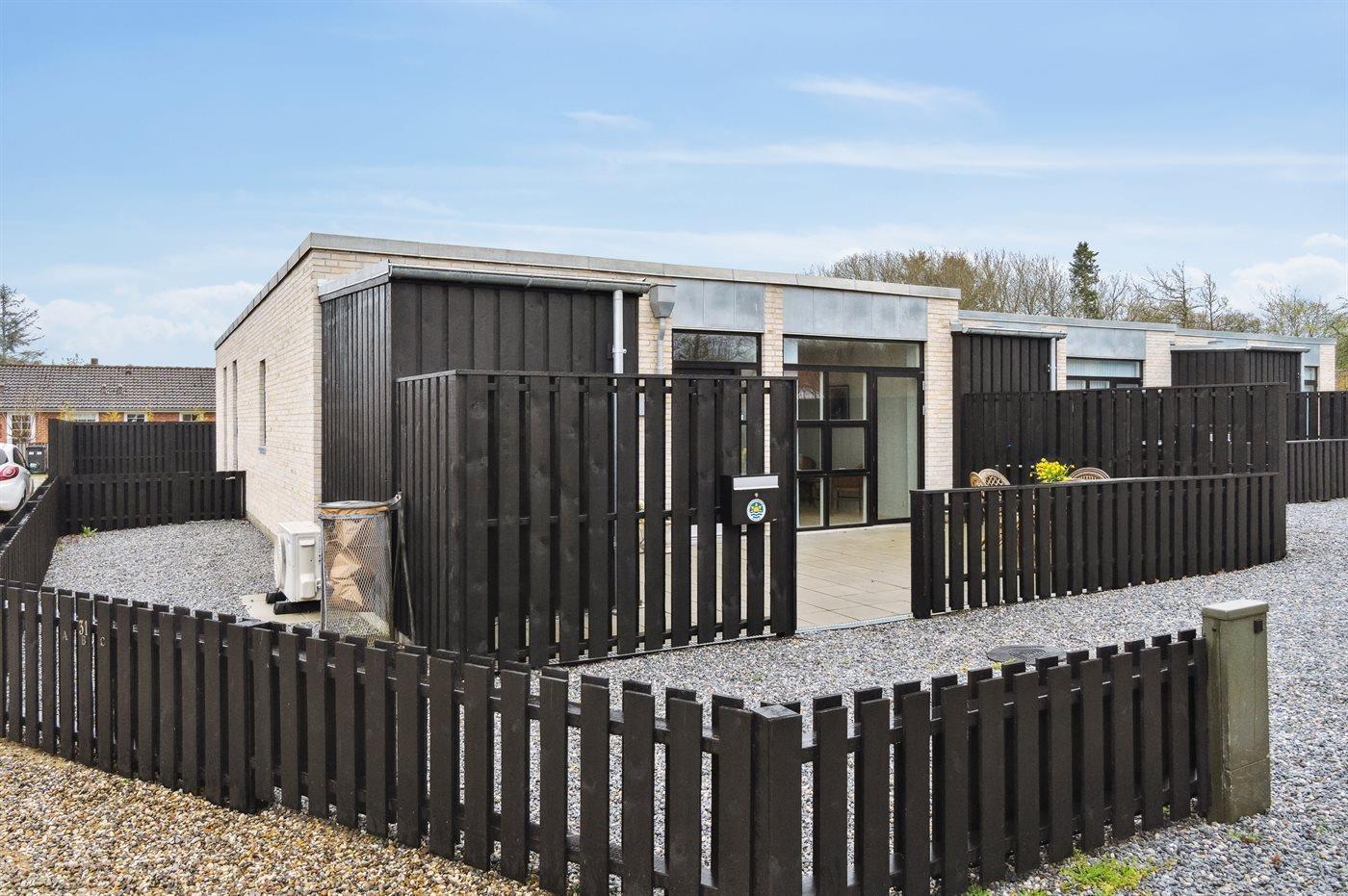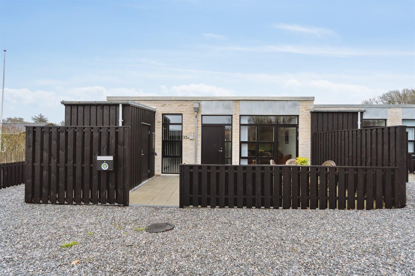 Ferieboligen er beliggende på en 300 m² stor Grunden er indhegnet. Der er 2000 m til havet. Nærmeste forretning er beliggende i en afstand af 300 m. Der er en golfbane i en afstand af 800 m. Til ferieboligen hører 85 m² terrasseareal. Der er redskabsrum. Grill til rådighed. Der er installeret stik til opladning af elbil. CEE stik. Parkering ved ferieboligen.