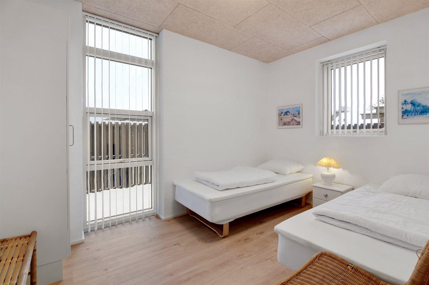 Der er i alt 3 soveværelser. Sovepladserne fordeler sig på: 4 sovepladser i dobbeltsenge. 2 sovepladser i sovesofa (dobbelt). 2 af disse sovepladser befinder sig i stuen.