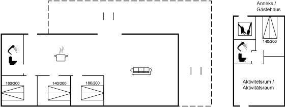 I huset er der rigelig plads til 8 personer fordelt i 4 soveværelser. Huset er 103 kvm og annekset 43 kvm. Annekset har, foruden soveværelse og badeværelse, aktivitetsrum med pool/billard/bordtennis. Både hus og anneks er udstyret med to energivenlige luft-til-luft varmepumper, elradiatorer i alle værelser og gulvvarme i klinkegulve, hvilket sikrer en behagelig temperatur året rundt. For ekstra hygge er der selvfølgelig også en brændeovn i huset.